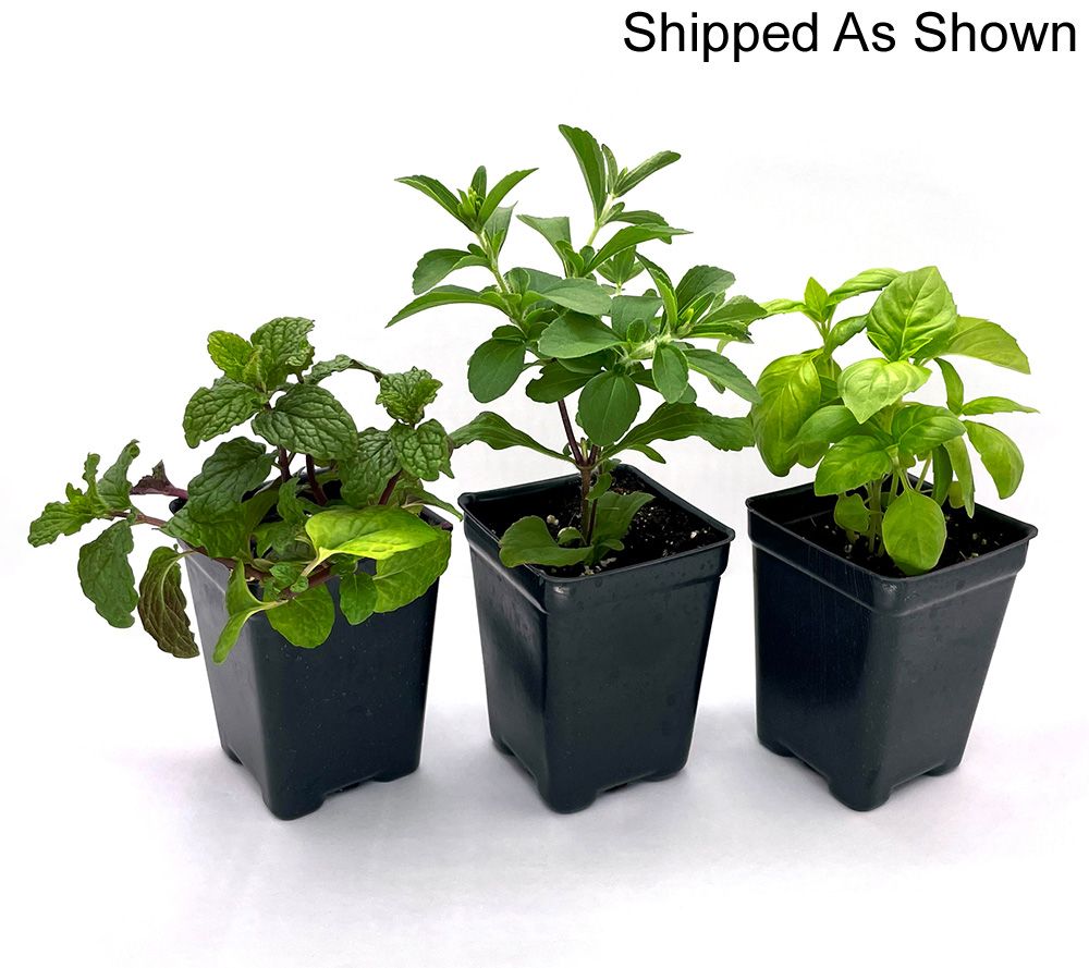 • Shipped as: three 2.5" pots; one each of mint, stevia, and basil