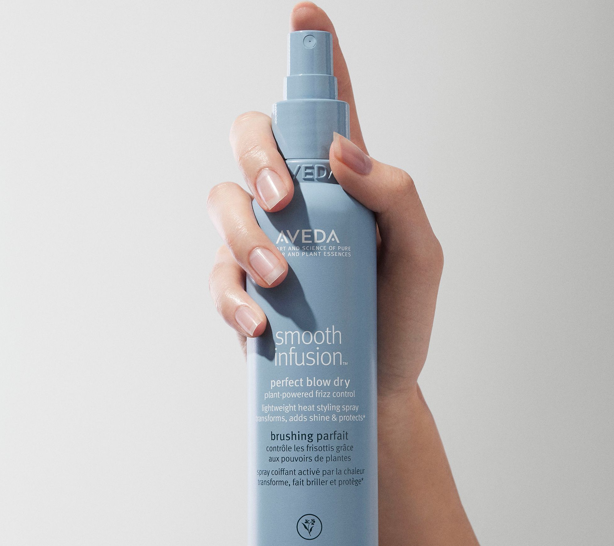 Our lightweight, heat-activated blow dry treatment provides an anti-frizz shield . Each strand of hair is wrapped in an invisible anti-humidity shield locking out humidity and keeping frizz-prone styles smoother and sleeker for longer. protecting your shiny sleek blowout from the drying effects of the sun and heat styling up to 450F. Anti-frizz, plant-powered technology: Plant polymer shield - An invisible polymer instantly cloaks hair strands and repels water, giving silicone-free protection. Botanical smoothing oil blend - Features Kalahari melon seed oil and Tamanu oil. Smooths and conditions cuticles for softness and shine. Suitable for all hair types and textures. Safe for color-treated and chemically processed hair. Aroma, Aveda's own pure-fumeTM aroma with Australian Sandalwood, Bergamot, Palmarosa and other pure flower and plant essences. Cruelty free. How to Use 1. Begin with clean, towel-dried, detangled hair. 2. Working in sections, spray generously from roots to ends. 3. Blow dry thoroughly to activate and seal in the formula. For best results, do not apply with any other pre-styling products. Pro Tip Perfect blow dry works best on damp hair and requires heat to activate. For best results, do not apply with any other pre-styling products. Your smooth infusion regimen Step 1: Cleanse daily or as needed with smooth infusion anti-frizz shampoo. Step 2: Condition daily or as needed with smooth infusion anti-frizz conditioner. For damaged or very dry hair, use a weekly treatment masque from botanical repair or nutriplenish. Step 3: Treat & style with smooth infusion perfect blow dry for straight, wavy, and curly textures. Requires blow drying to activate. For very curly and coily textures, try smooth infusion perfectly sleek heat styling cream for a smooth, sleek finish.;One Aveda Smooth Infusion Perfect Blow Dry 6.7 fl oz
