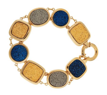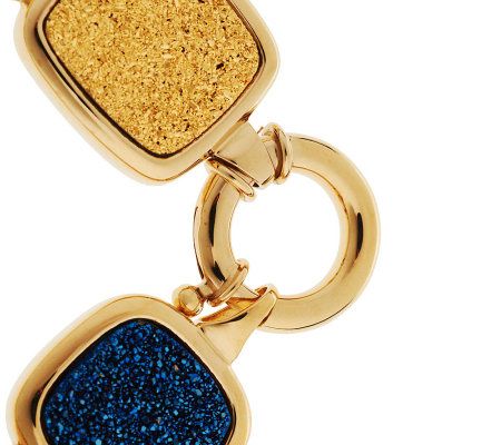 Brilliant! This high-shine, high-style bracelet is crafted of 14K yellow gold with alternating round and rectangular drusy quartz gemstones. Take a shine to this sophisticated look.