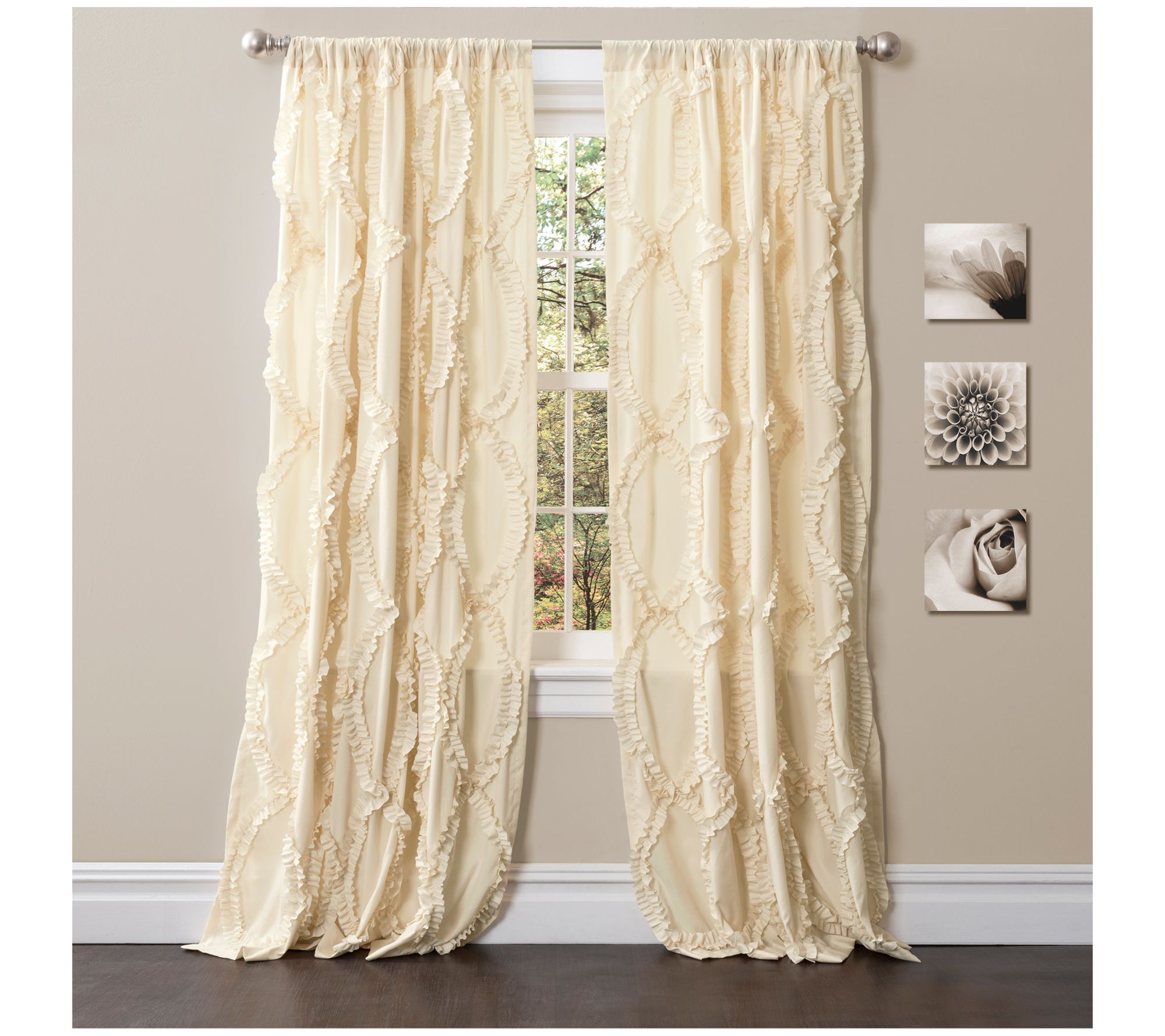 An allover ruffle embroidery pattern lends an intriguing three-dimensional texture to this Avon window curtain. From Lush Decor.