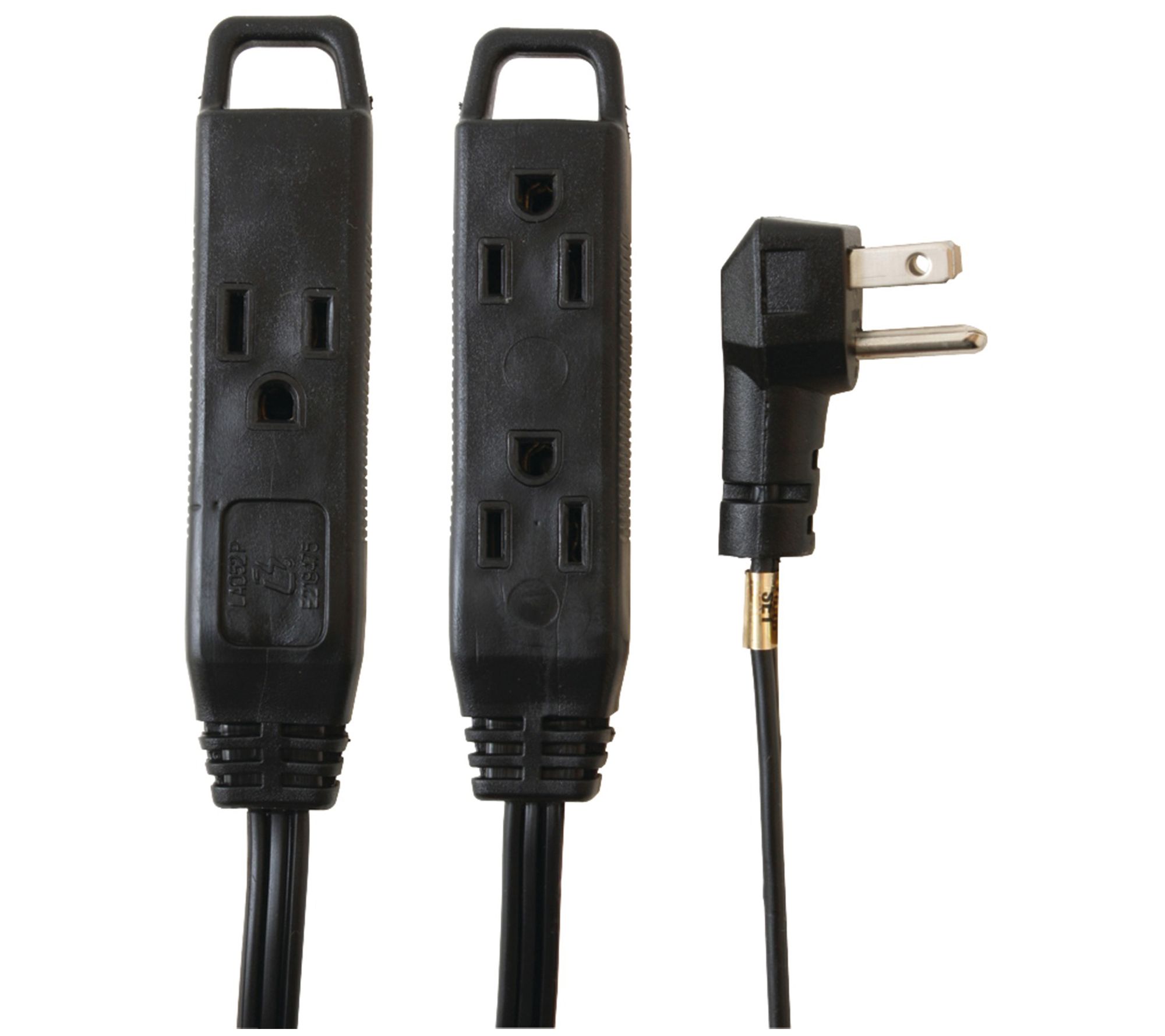 Too many electronic devices and not enough outlets? Change that with this grounded adapter and extension cord bundle. The safety-orange, heavy-duty adapter converts a single, 3-prong grounded outlet into three individual outlets, one outlet on each of three sides. The three 8ft wall-hugger indoor grounded extension cords feature three outlets each. From Axis.