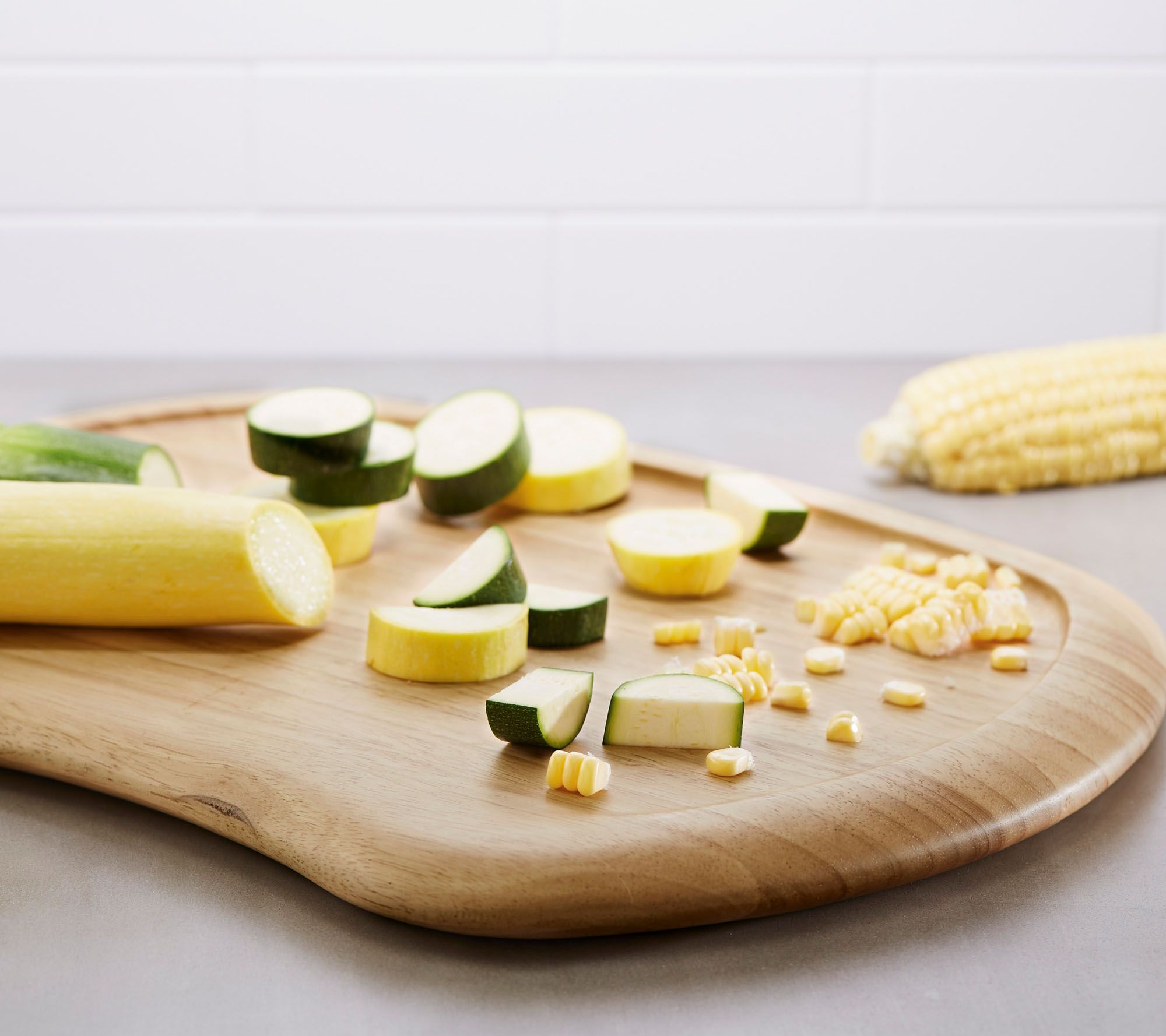 A beautiful wood grain in a matte finish means this cutting board is not only durable, it's refined enough for serving. From Ayesha Curry.