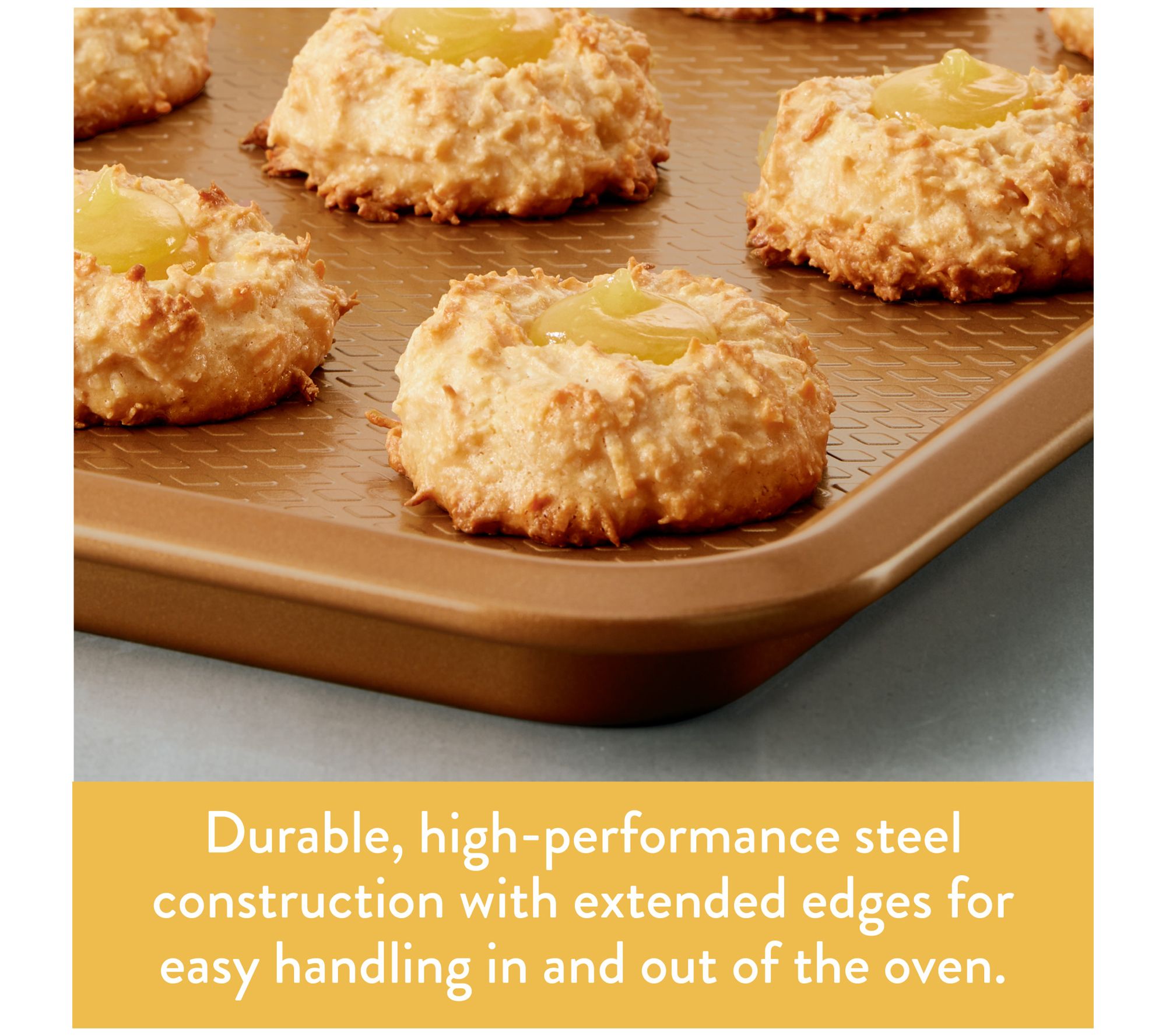 Indulge in your favorite sweet and savory kitchen recipes with these versatile bakeware pans. Extended edges make handling a breeze while the nonstick interior ensures easy clean-up. From Ayesha.