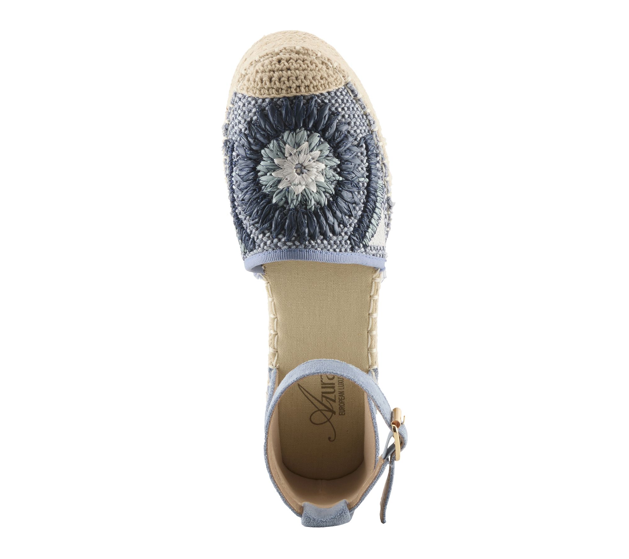 • Buckle closure, rounded toe, floral-inspired textured jute upper