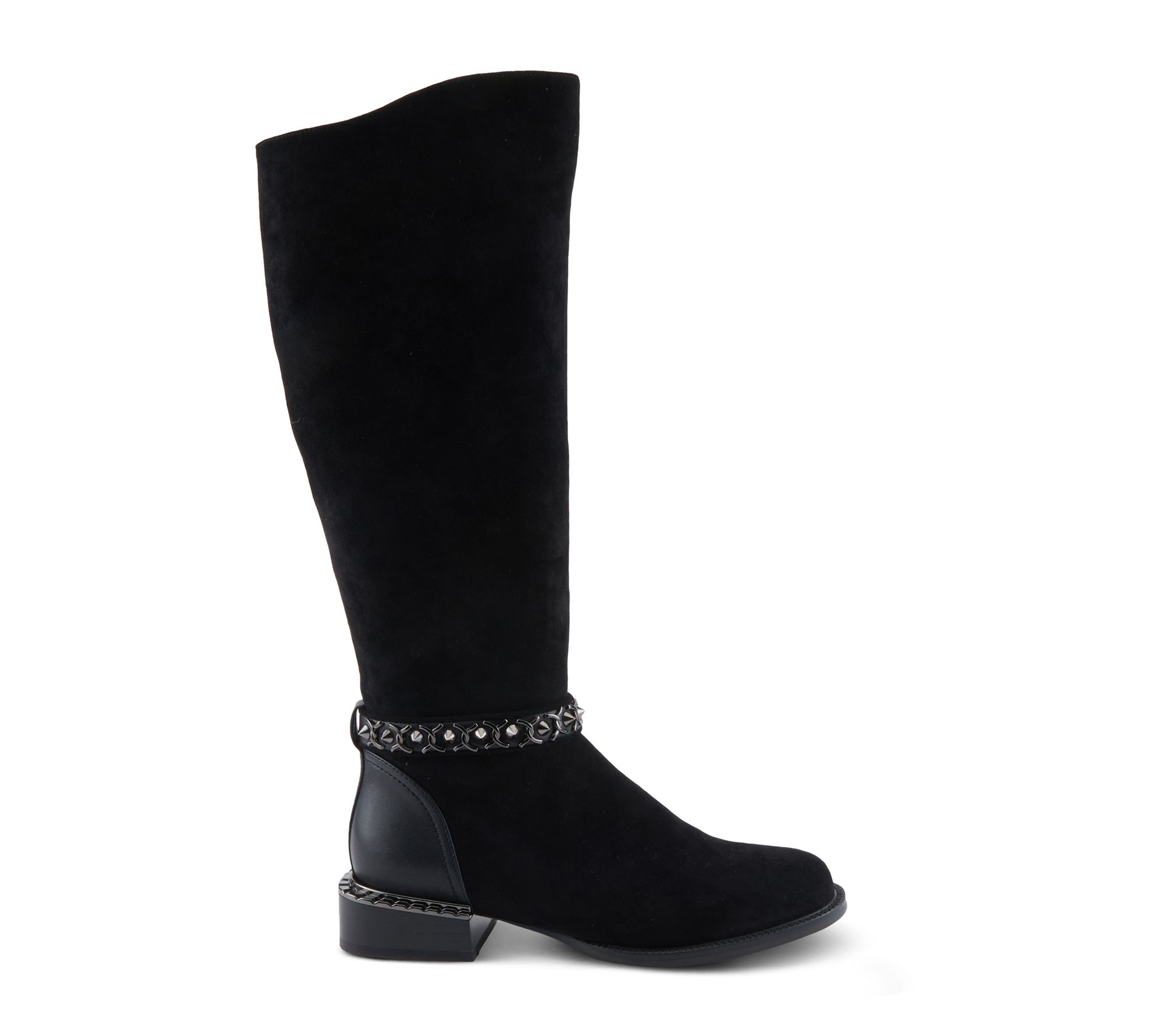 Permission to get a little rebellious. These standout boots feature a soft microsuede upper that hugs your calves comfortably, while studded hardware and mirrored accents deliver just the right amount of edge. From Azura by Spring Step.