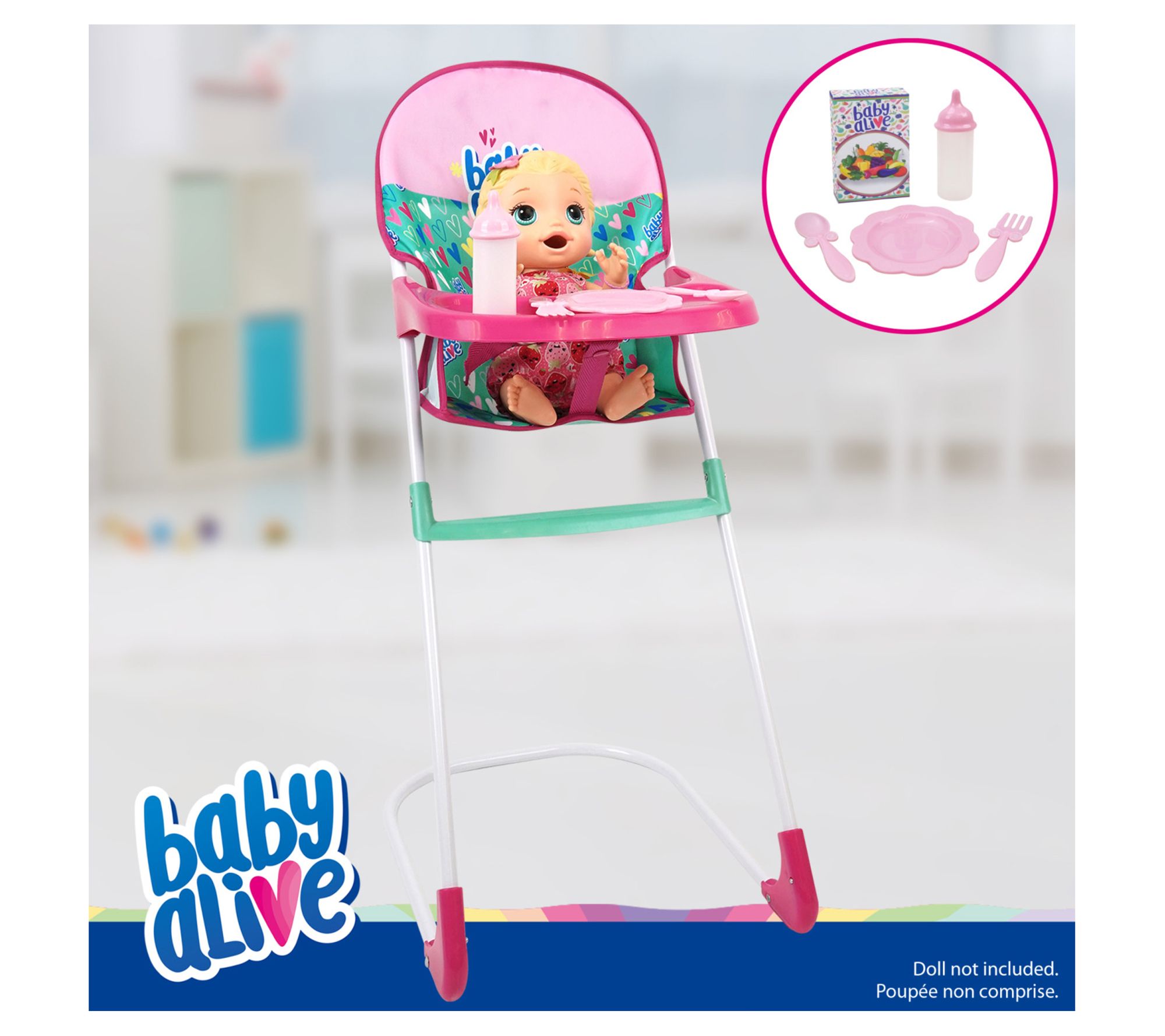 • Includes doll pram, highchair, and feeding accessories