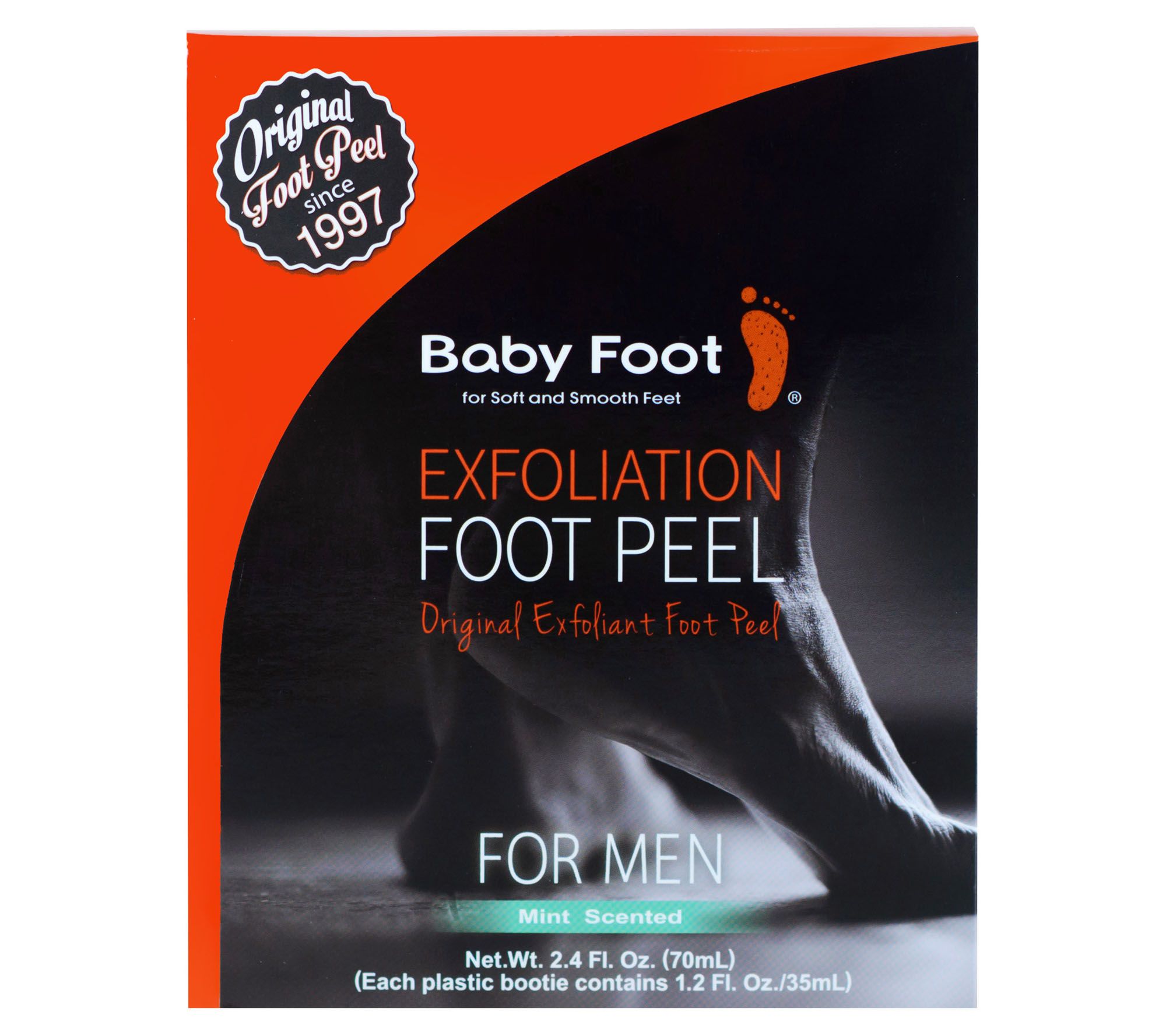 Baby Foot Exfoliation Foot Peel For Men is formulated and designed especially for men, featuring a bootie that fits up to men's shoe size 14. This innovative treatment includes a variety of extracts, along with glycolic and lactic acids, that help remove unwanted dry skin from your feet.