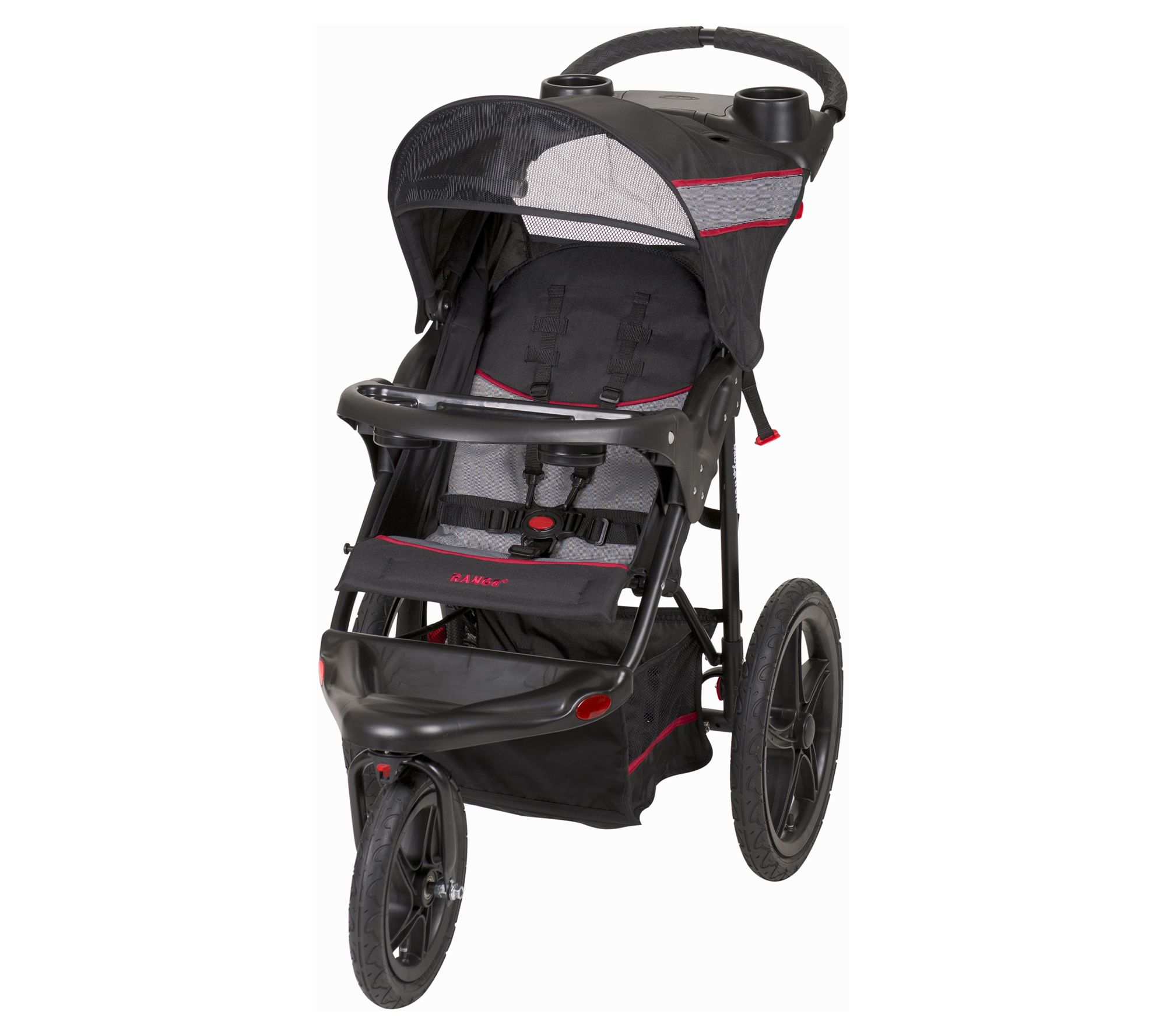 Take your outdoor adventures to the next level with the Range jogging stroller, designed for both durability and comfort on various terrains. Its lockable front swivel wheel and all-terrain composite tires ensure smooth maneuverability, while the convenient parent and child trays with cup holders add to its practicality. The stroller's adjustable canopy and multi-position reclining seat provide a comfortable ride for your little one, making every journey enjoyable. From Baby Trend.