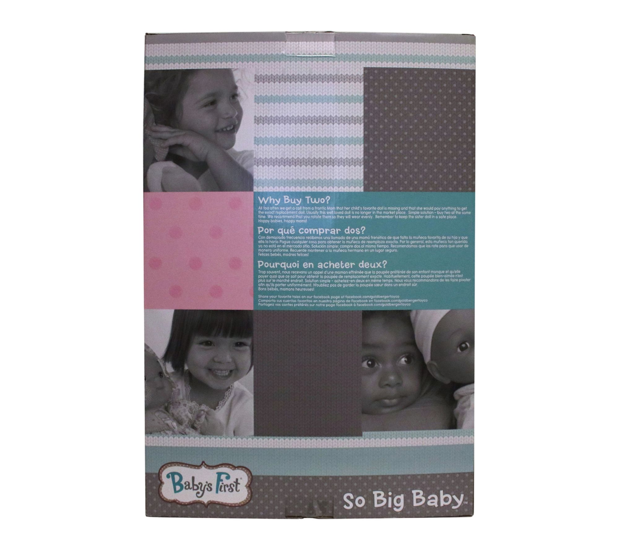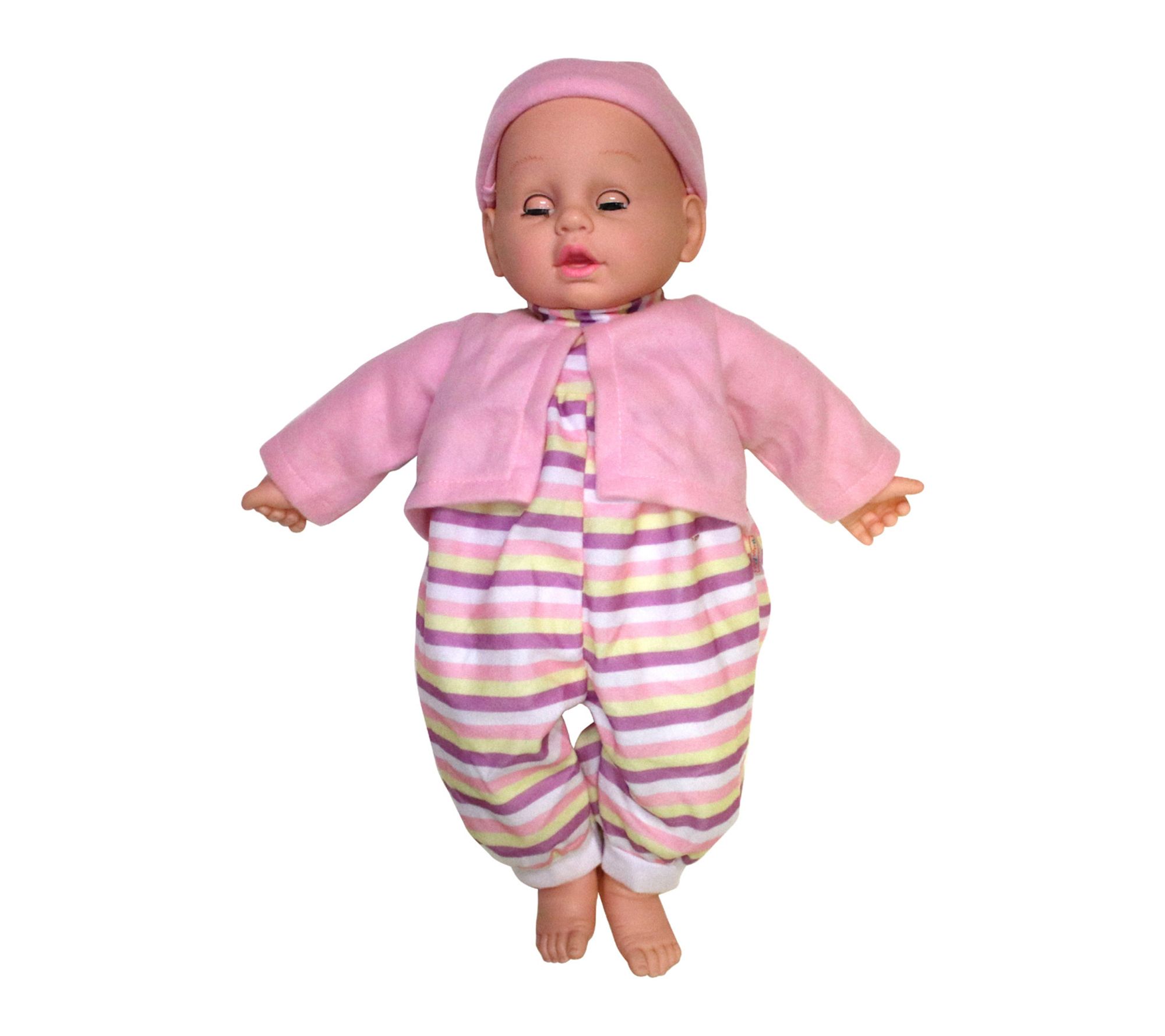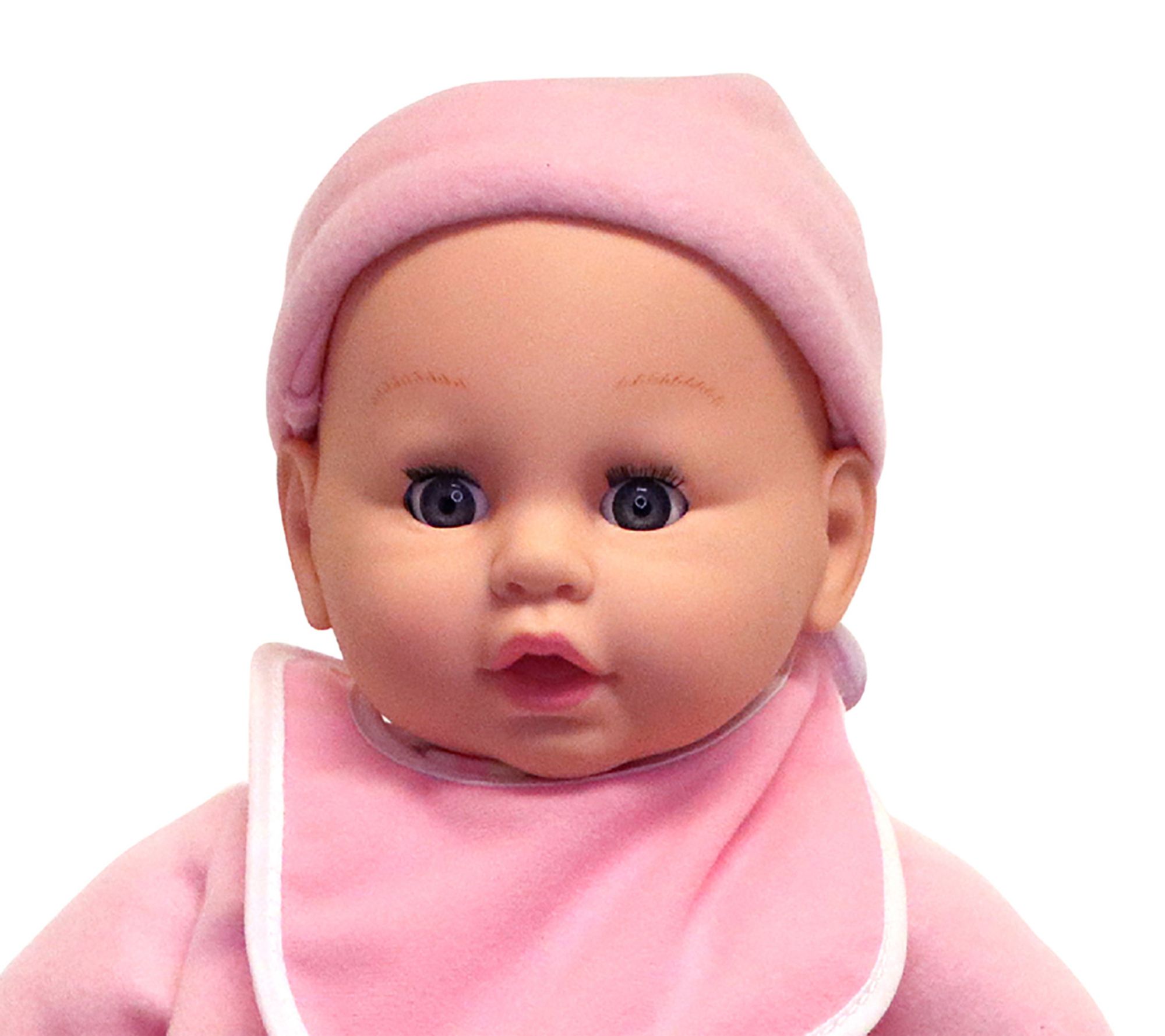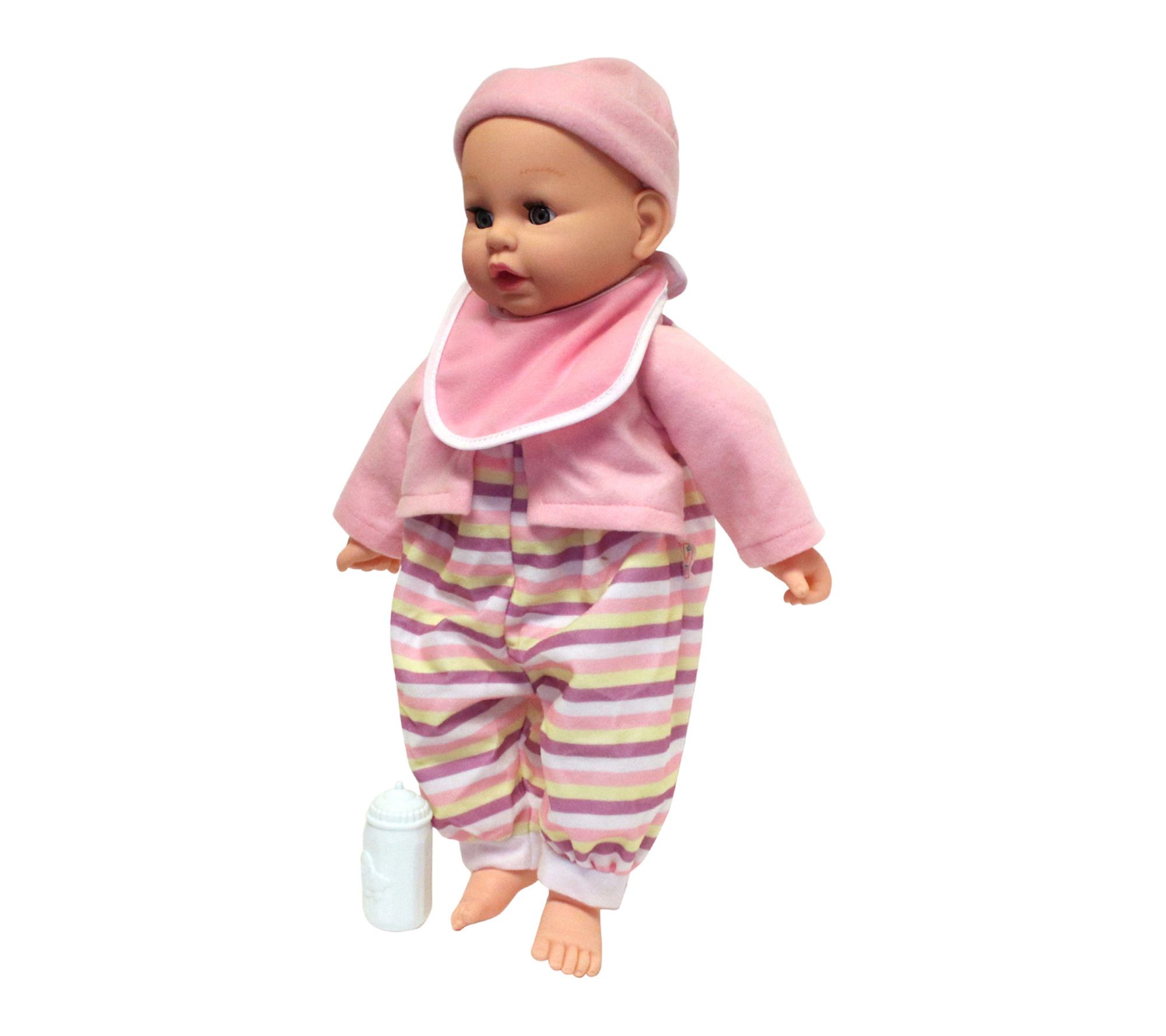 • Includes 19" soft body doll, baby bottle, baby bib, matching headband, and matching jacket