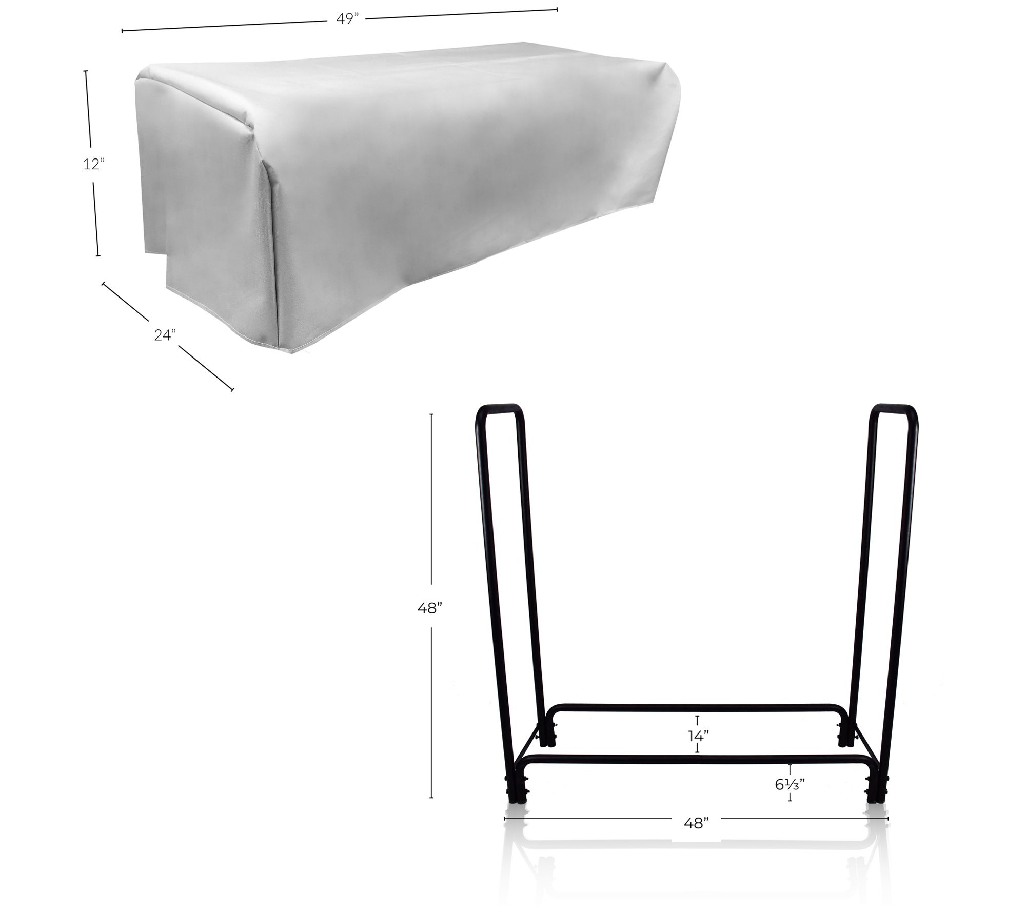 • Measurements: Rack 48"L x 14.2"W x 48"H; Cover 48.8"L x 24.2"W x 11.8"H Supports up to 220 lbs