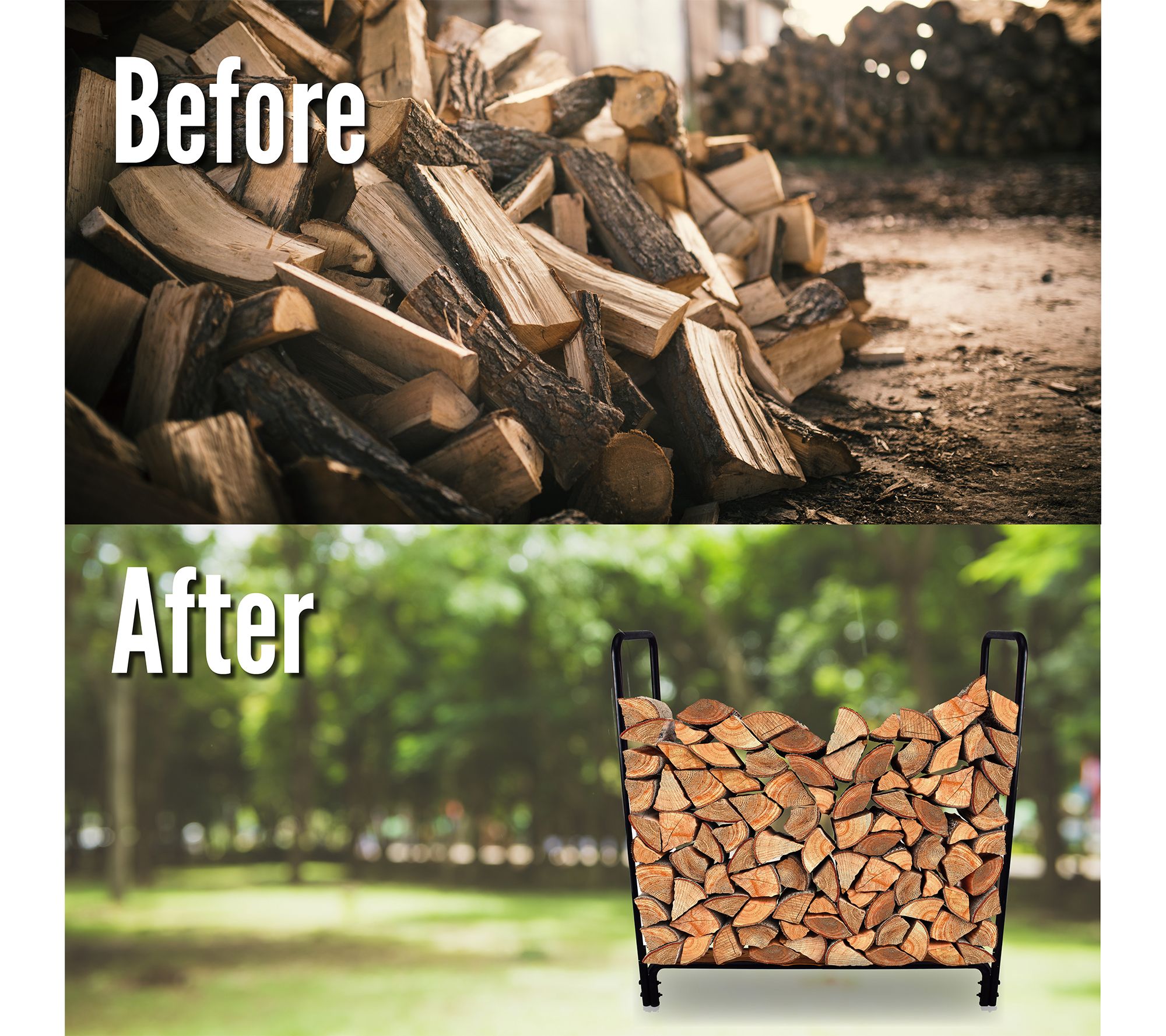 Backyard Expressions 4' Log Rack Firewood Stora ge with Cover
