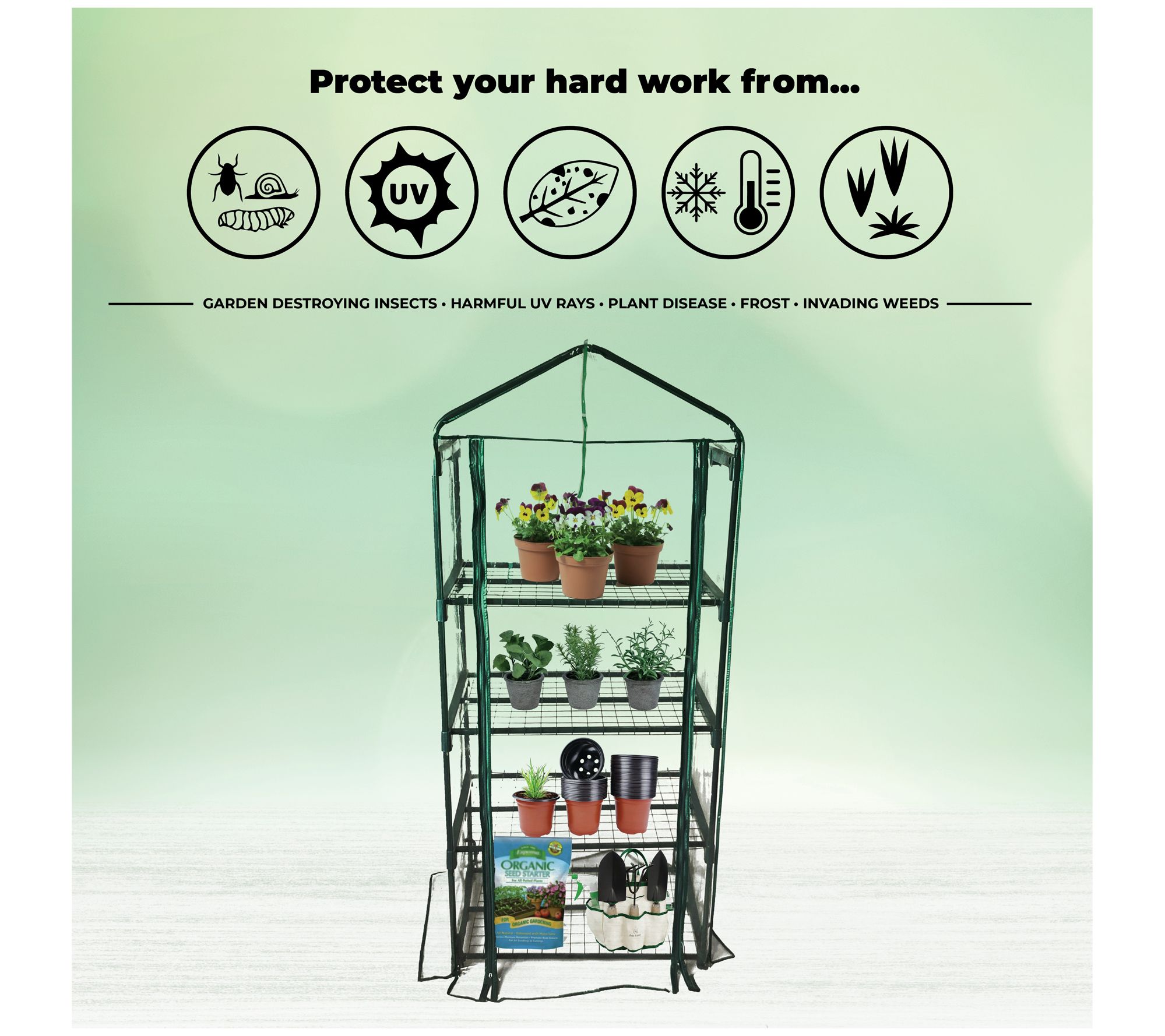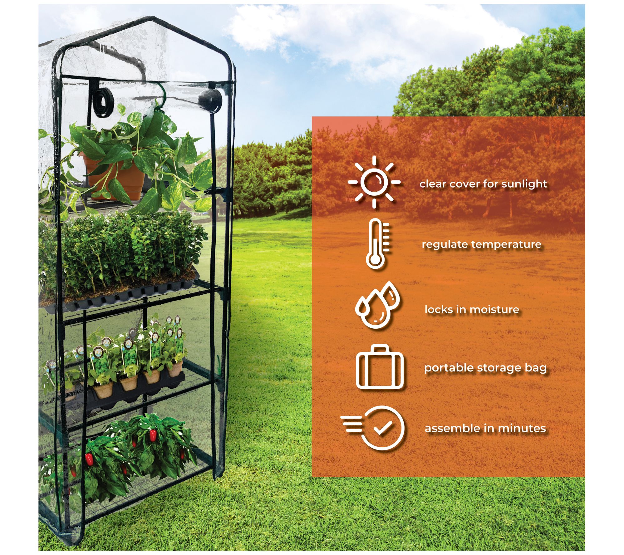 • Includes greenhouse, clear cover, and carrying/storage bag