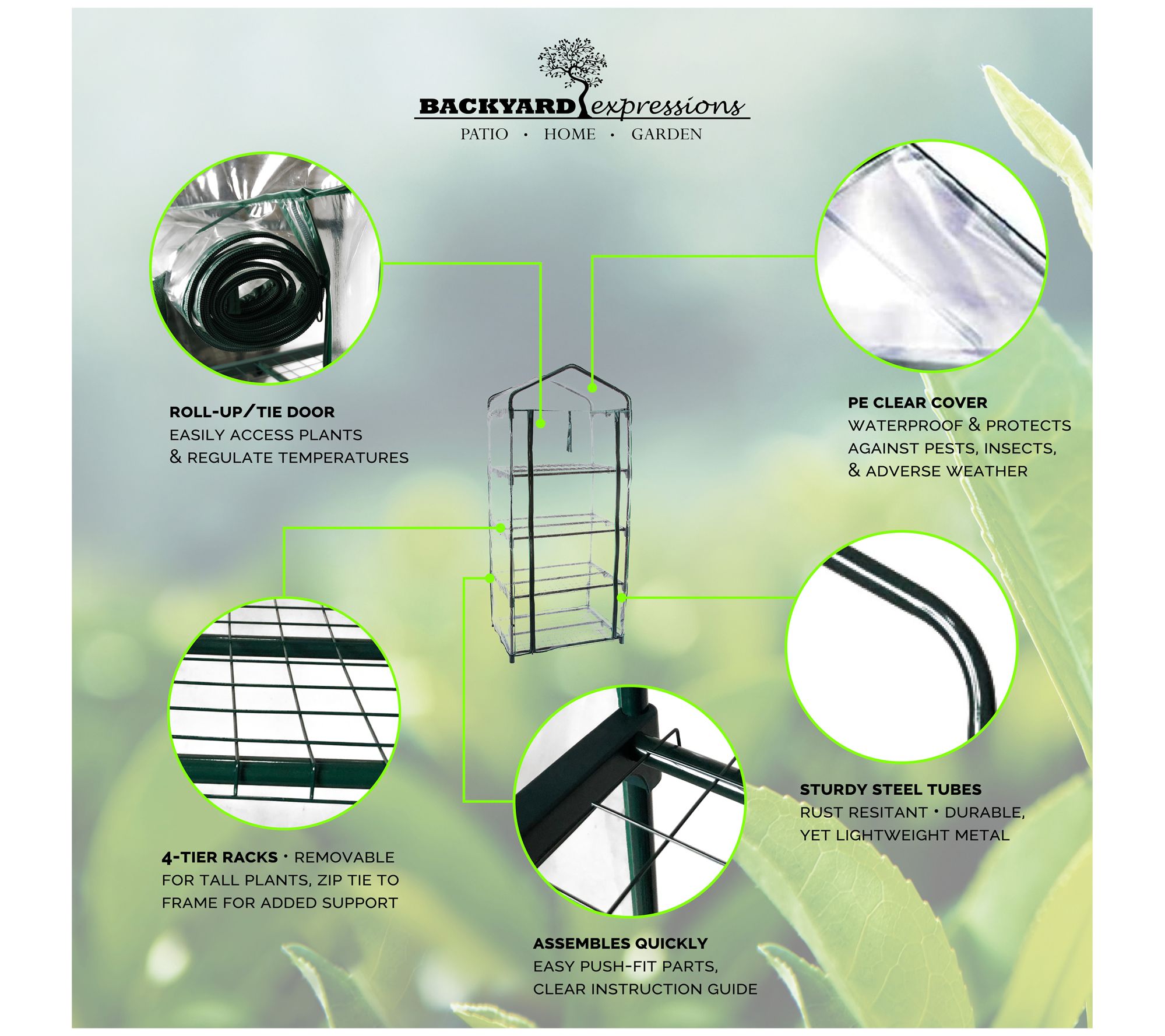 Backyard Expressions 62" x 27" Portable 4-TierGreenhouse