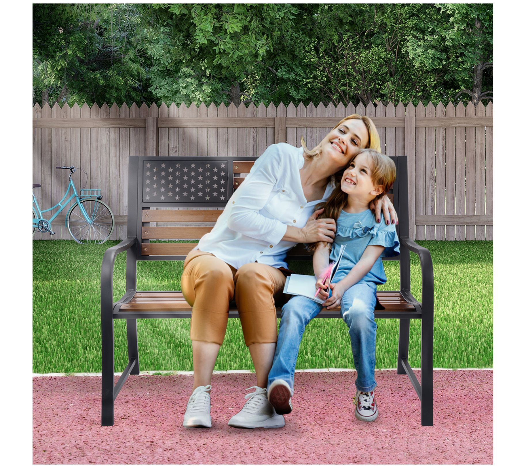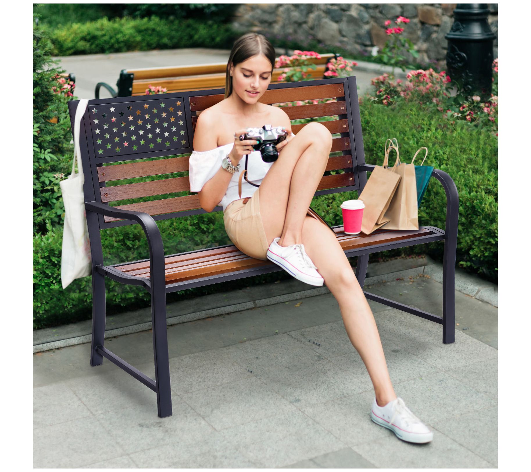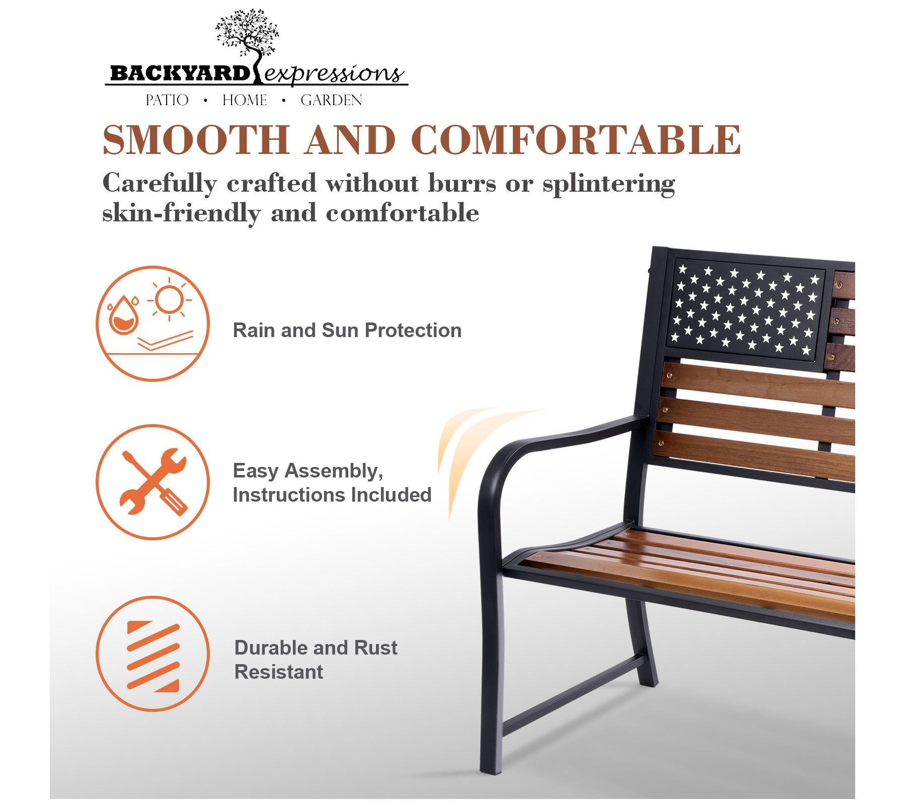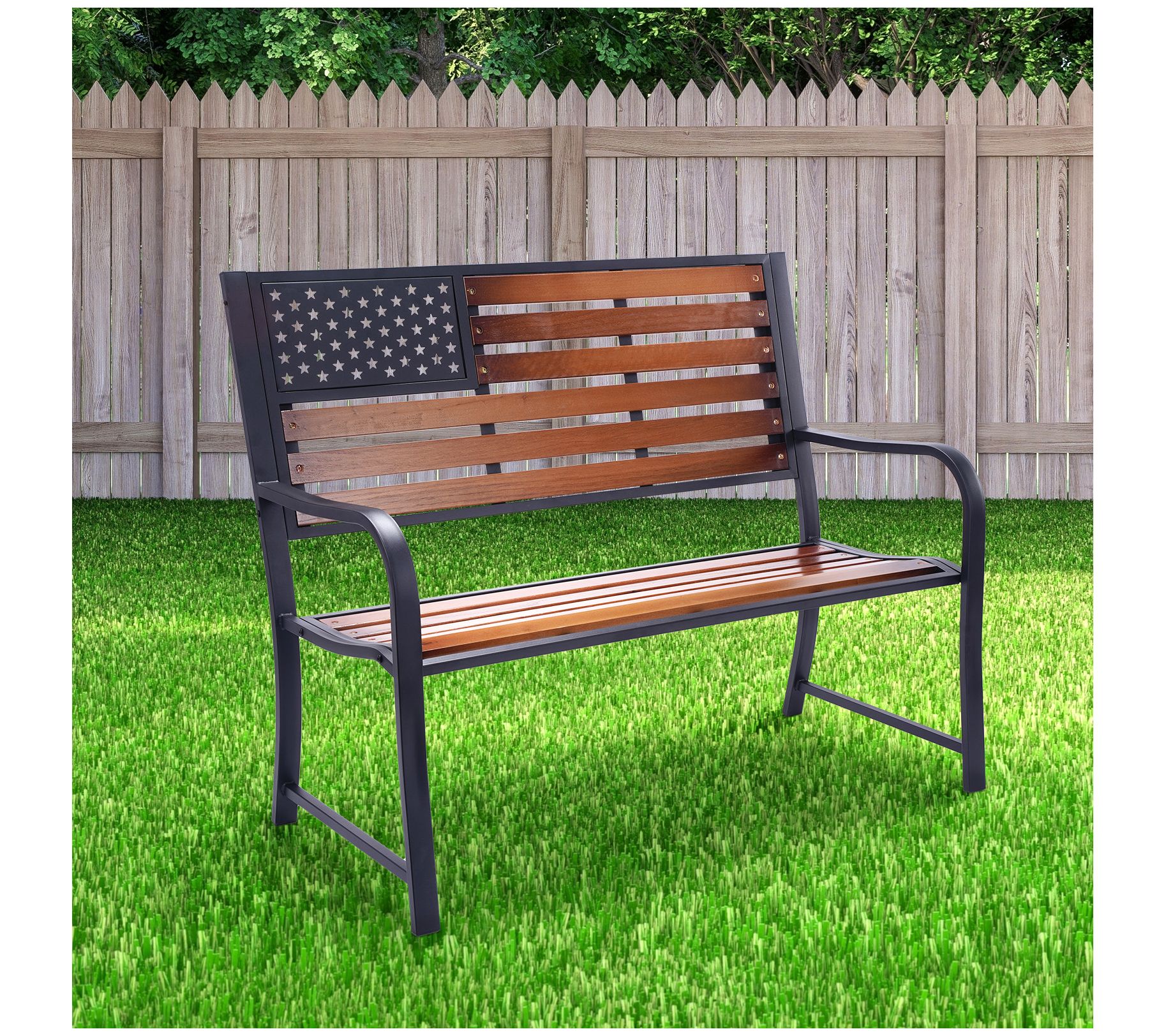 Backyard Expressions American Flag Patio Bench/ Wooden Slats