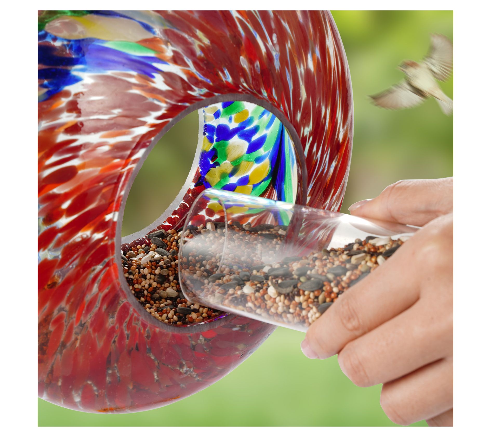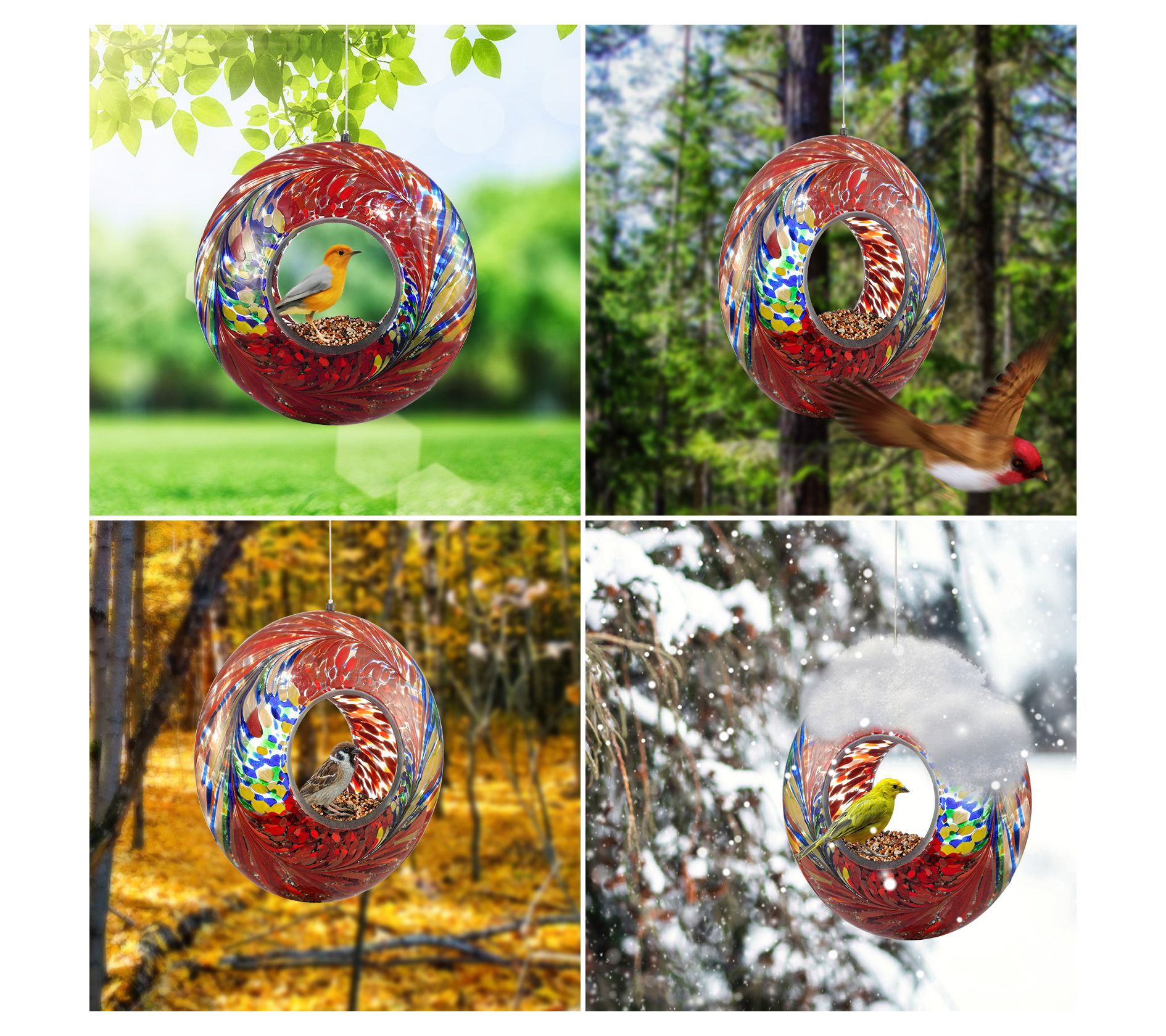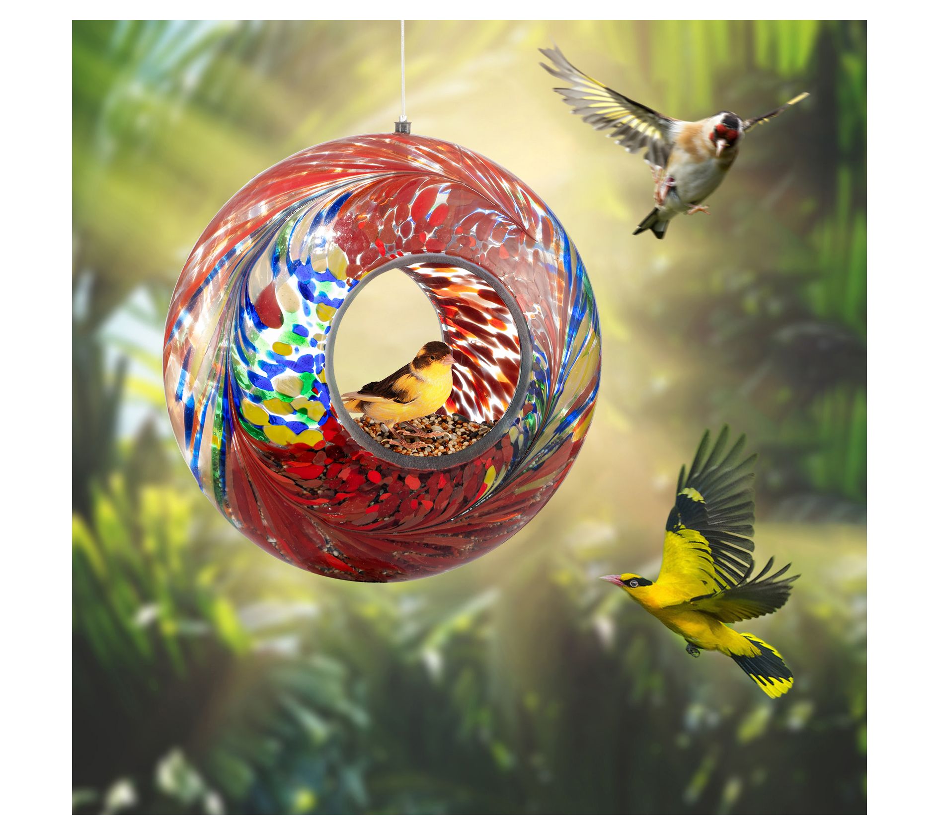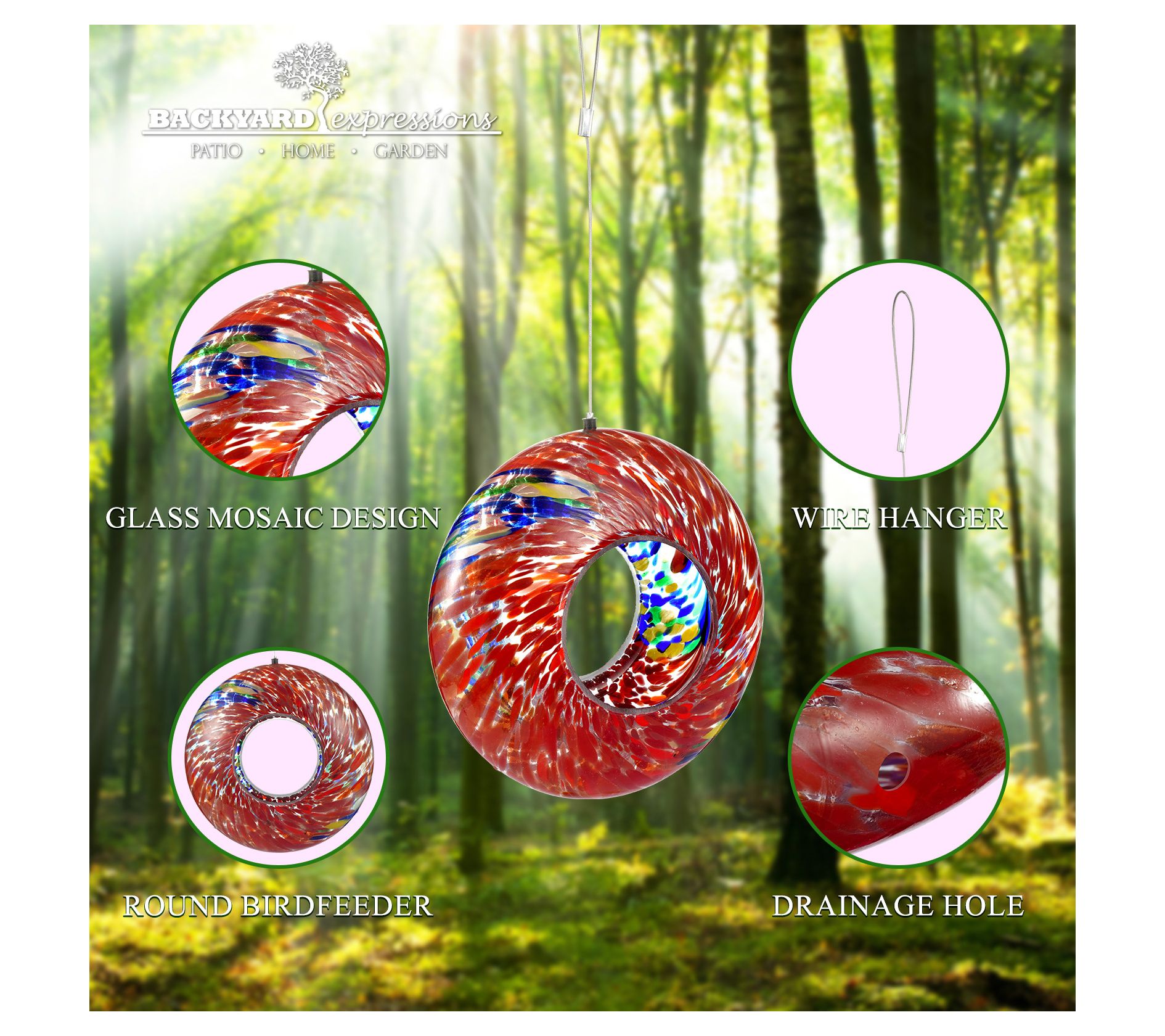 Backyard Expressions Hanging Glass Bird FeederRed
