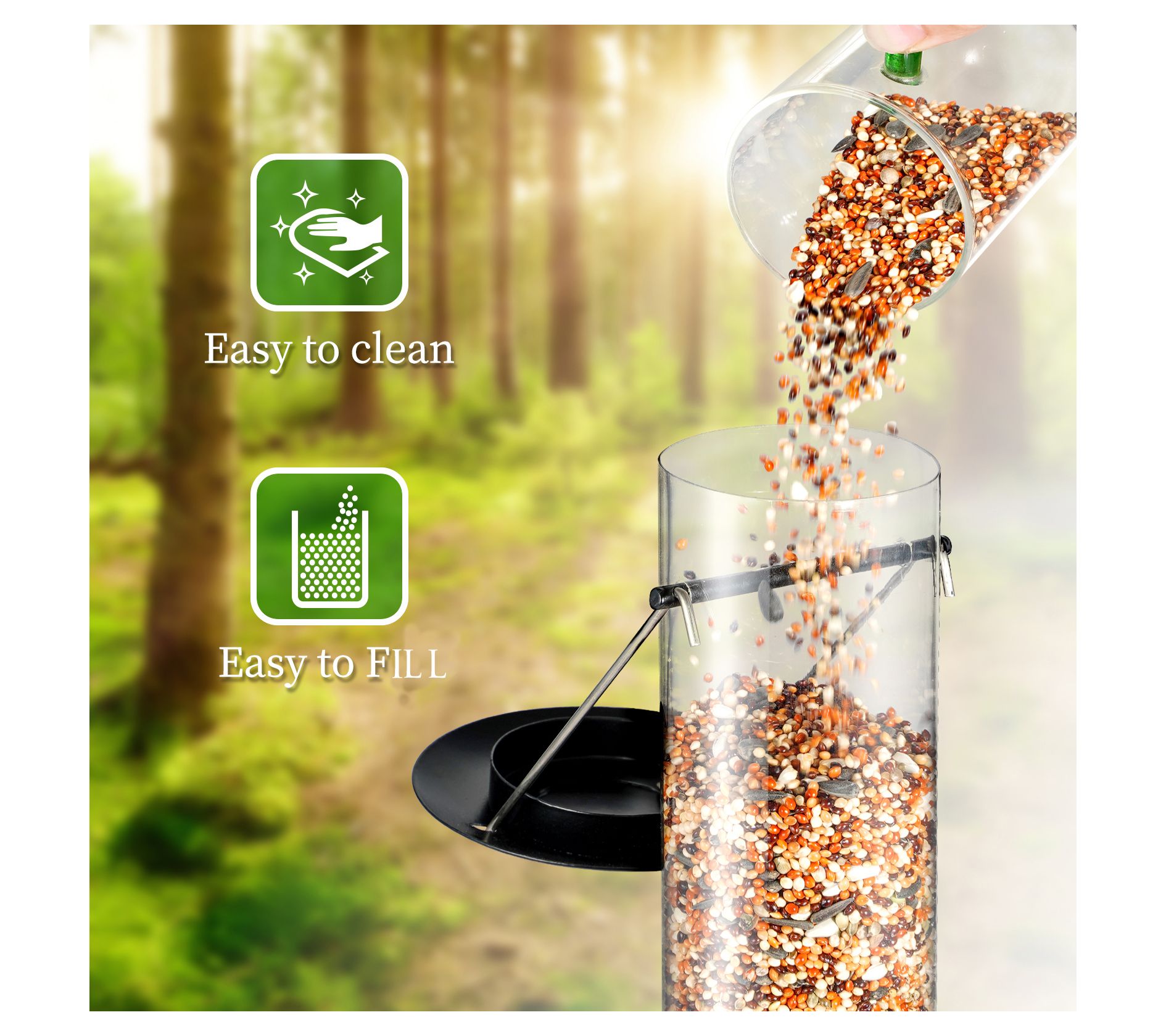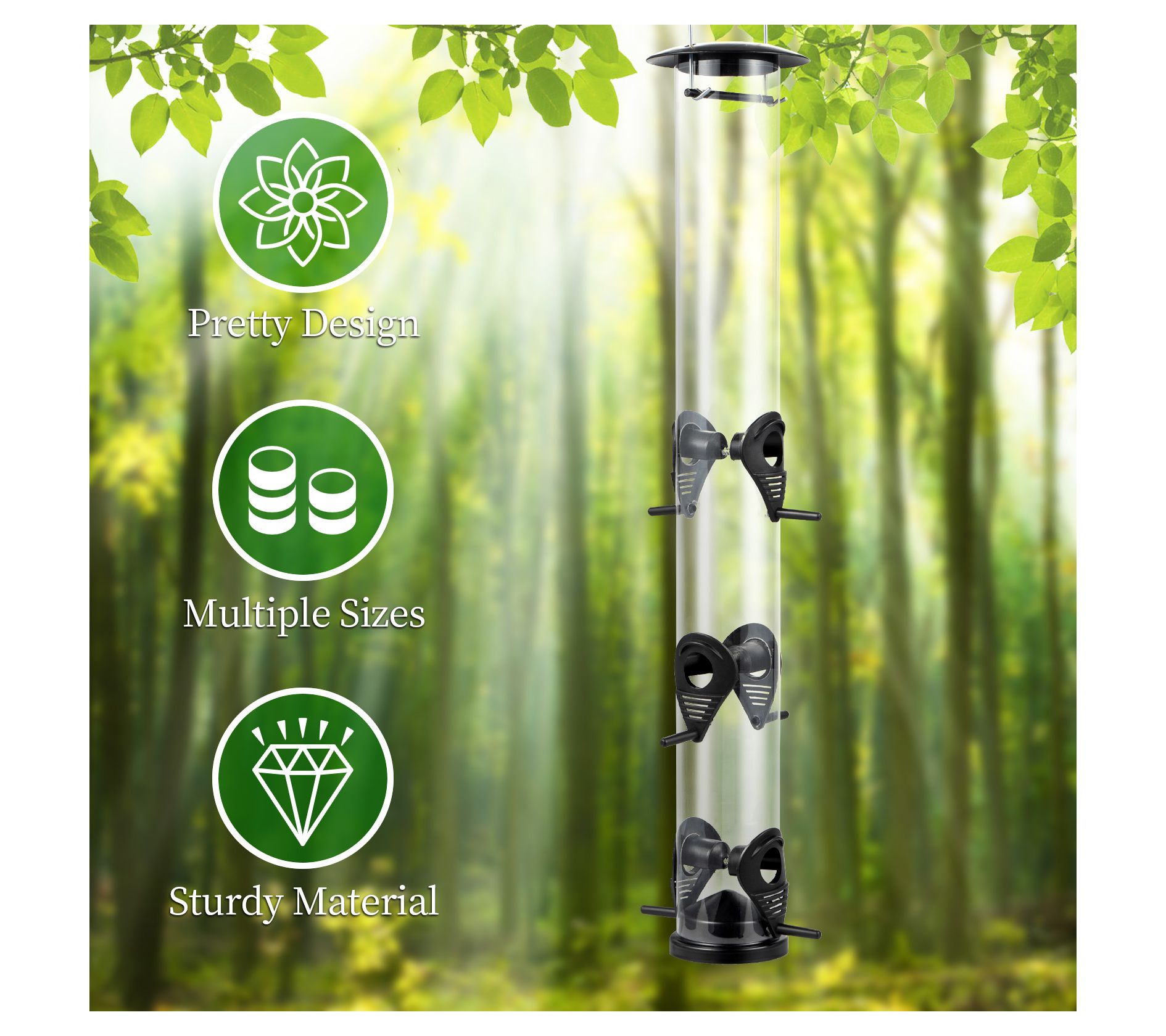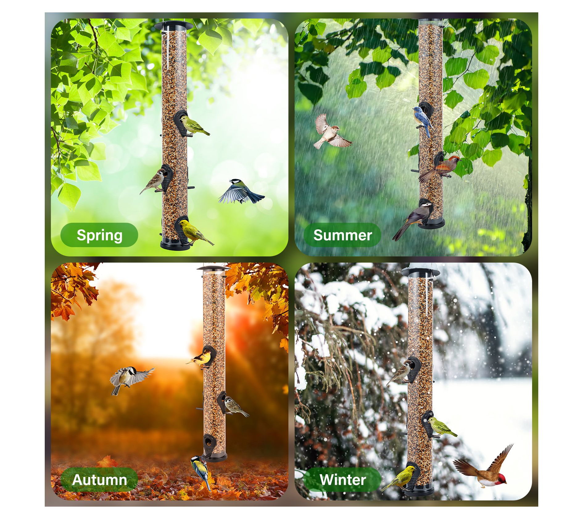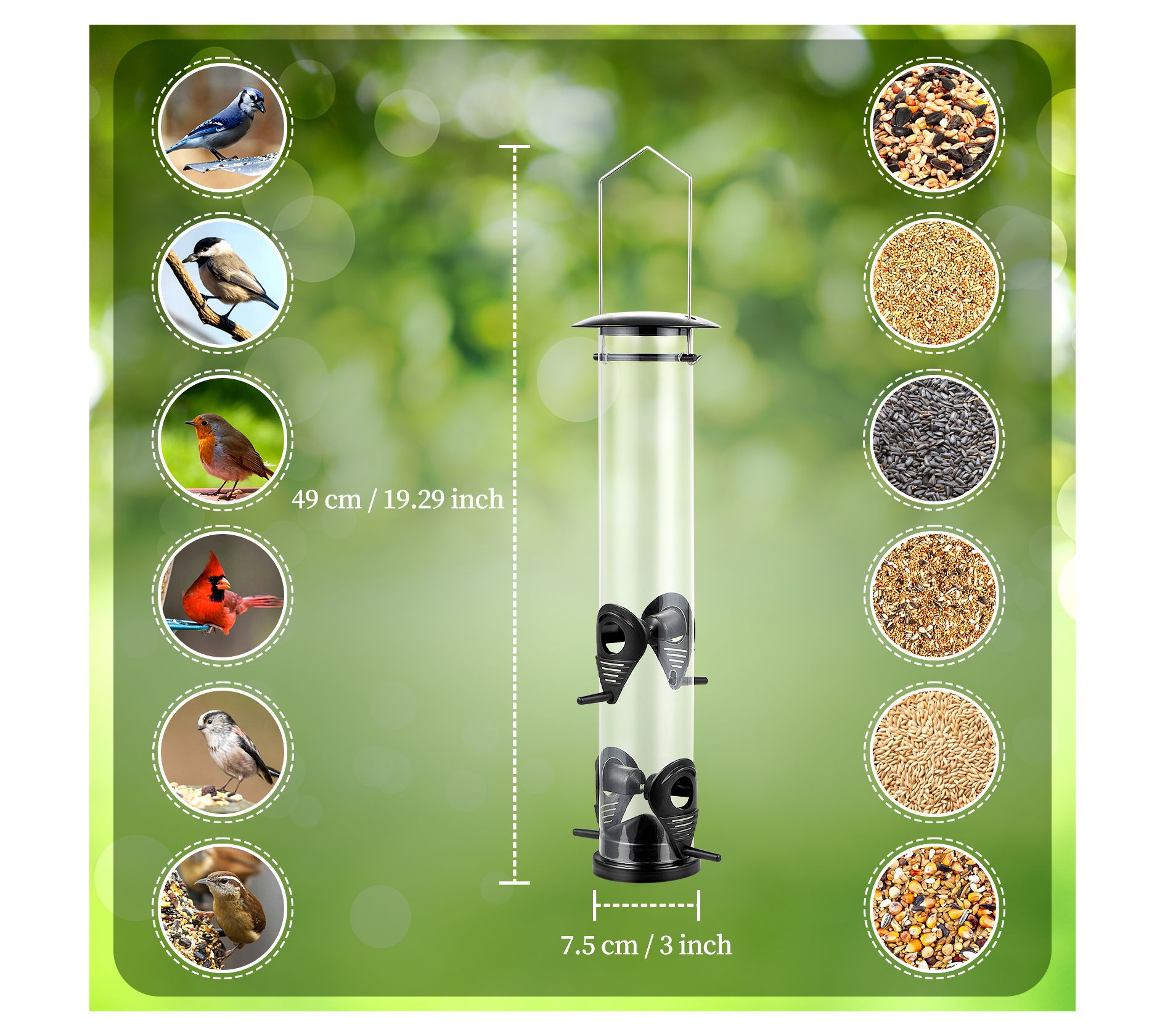 • Includes 4-cup tube bird feeder