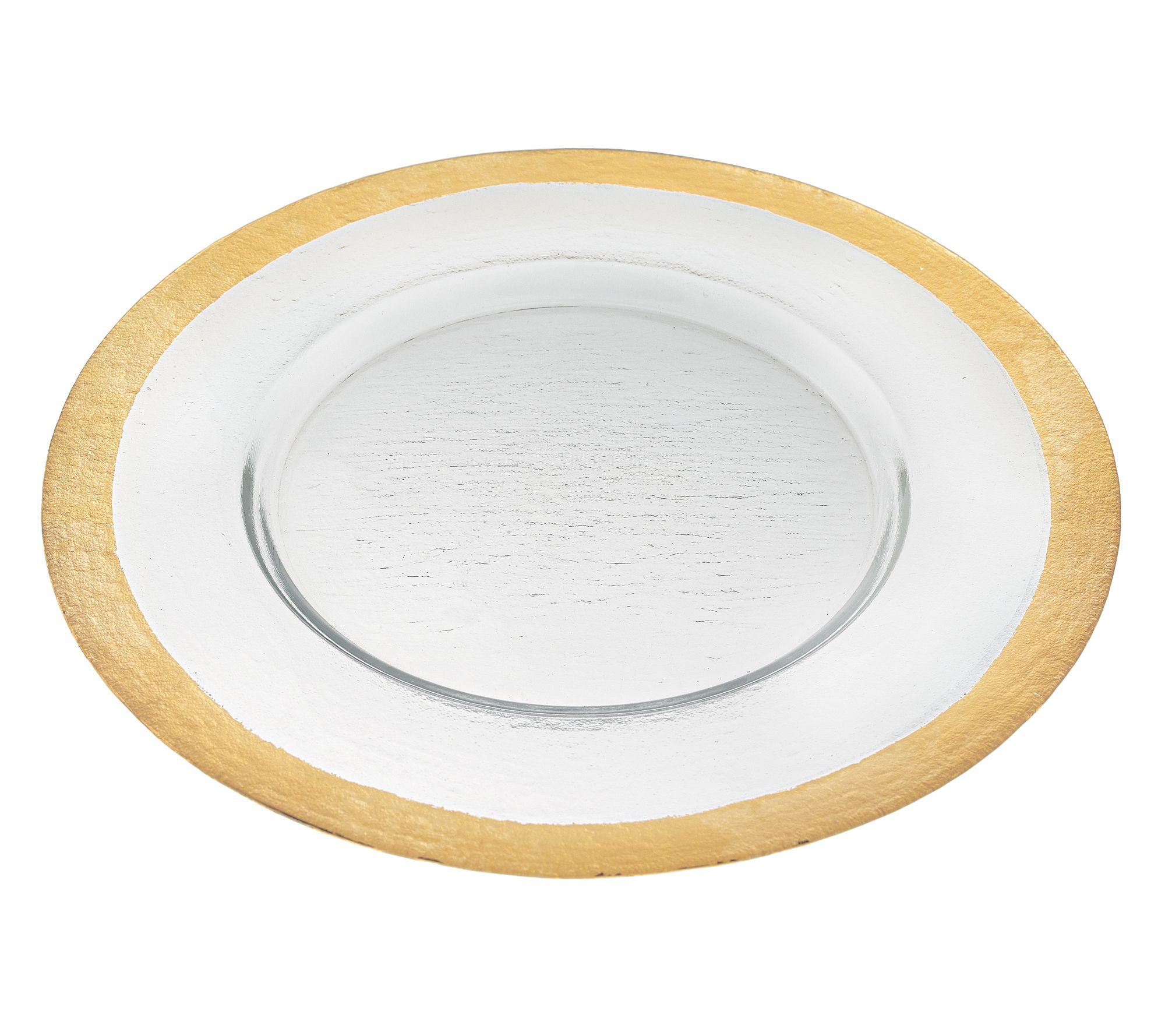 Dress up your table setting with this elegant handcrafted charger featuring a shining gold leaf accent around the edge. From Badash Crystal.