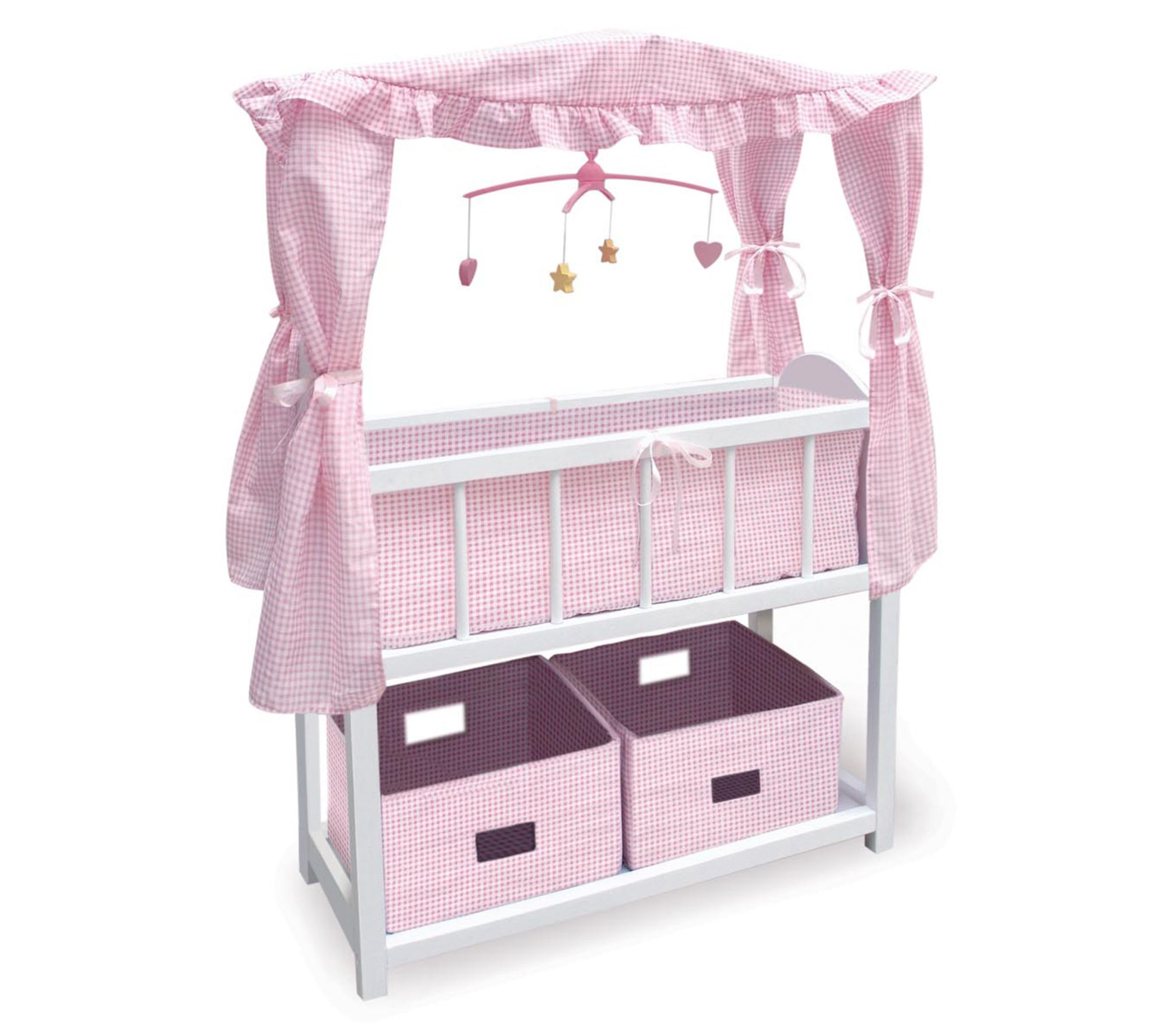 Badger Basket Canopy Doll Crib with Baskets, Bedding, Mobile