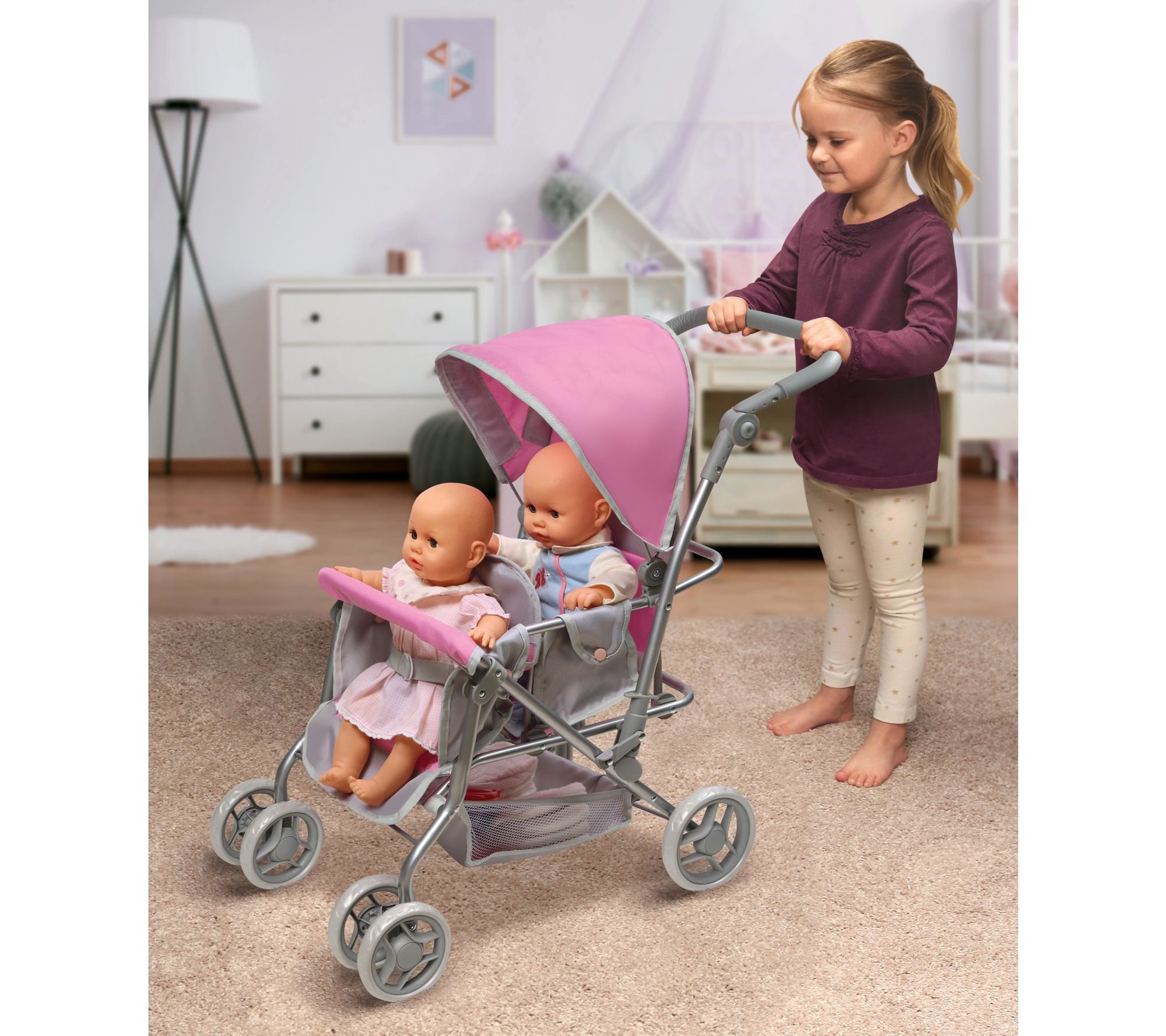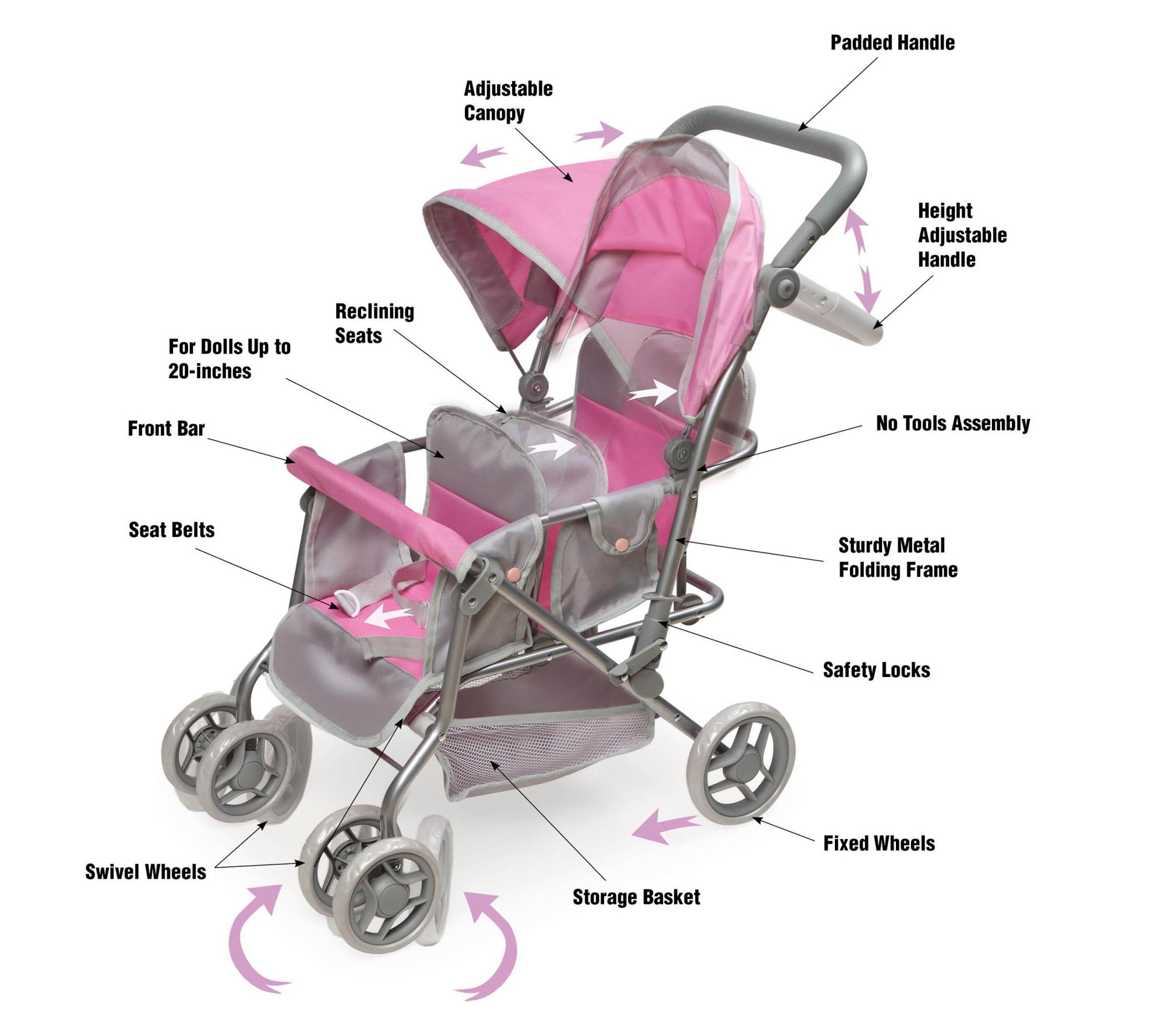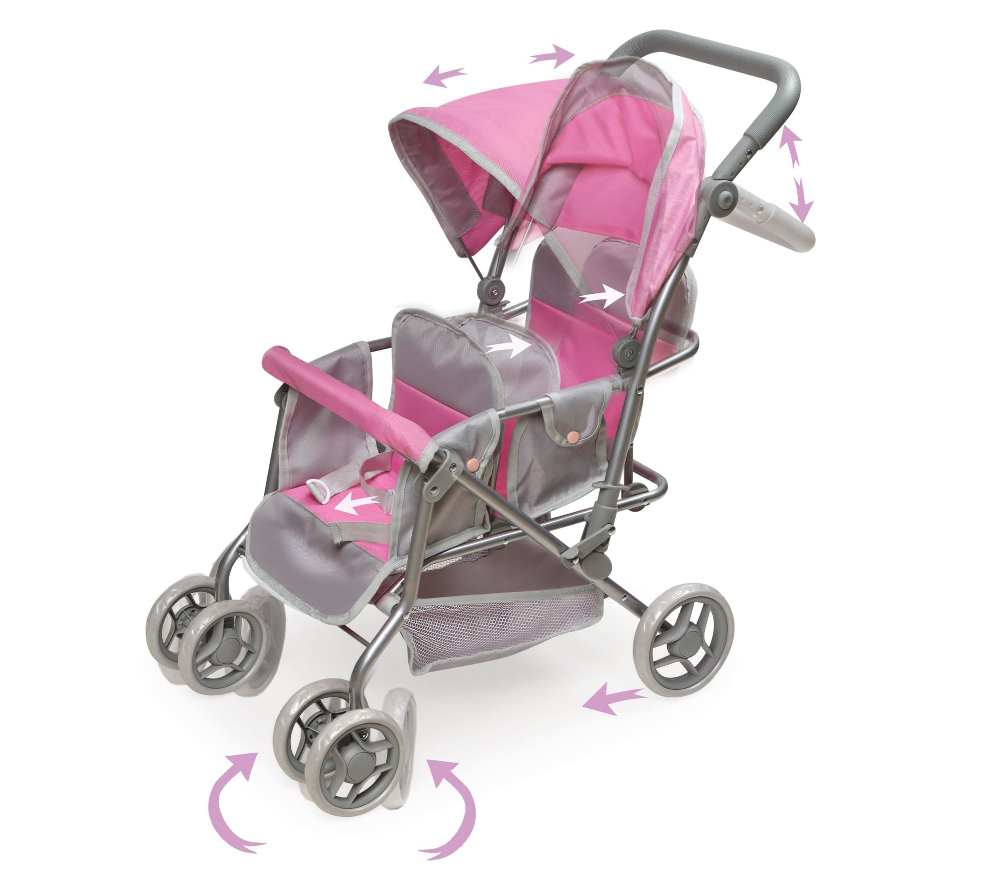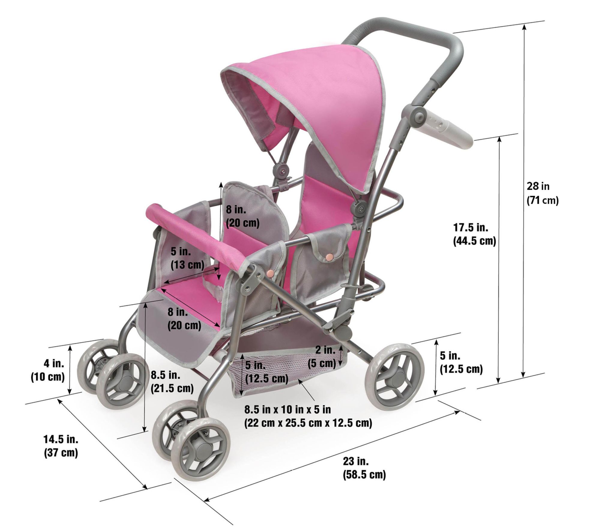 • Includes double doll stroller with basket