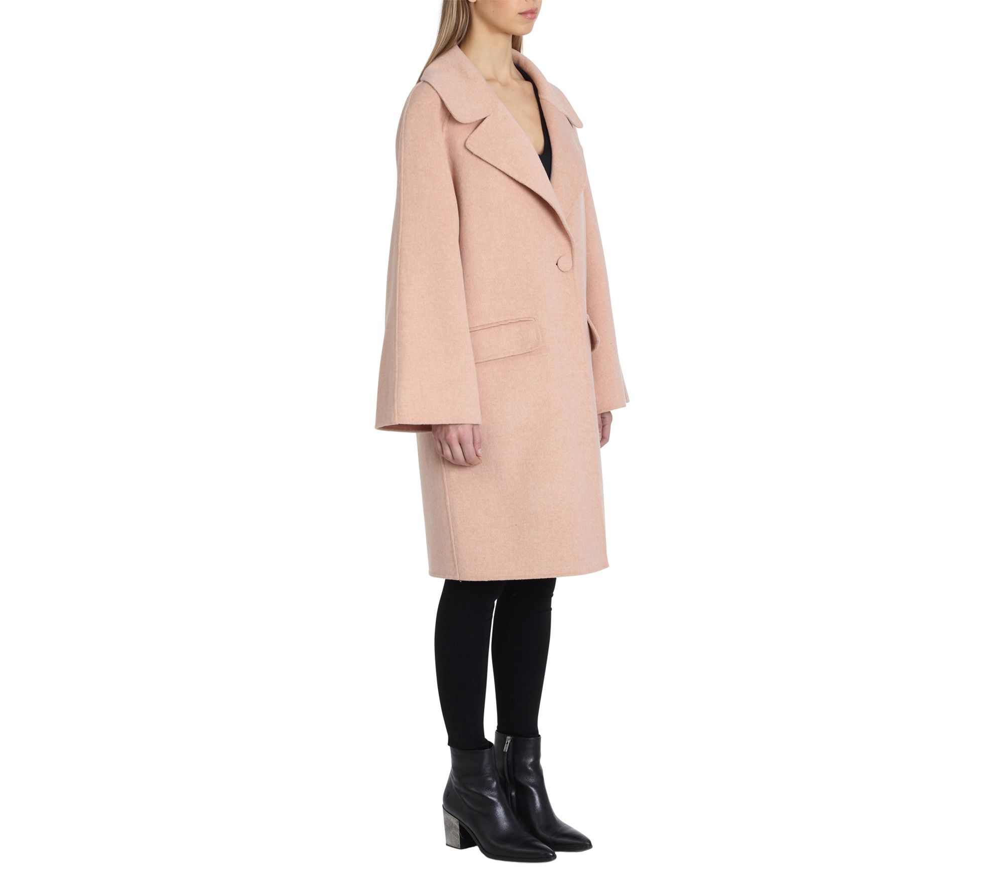 This single-breasted, oversized coat offers versatility with its dramatic shape. It's finished with sweater-accommodating bell sleeves for an of-the-moment look. From Badgley Mischka.
