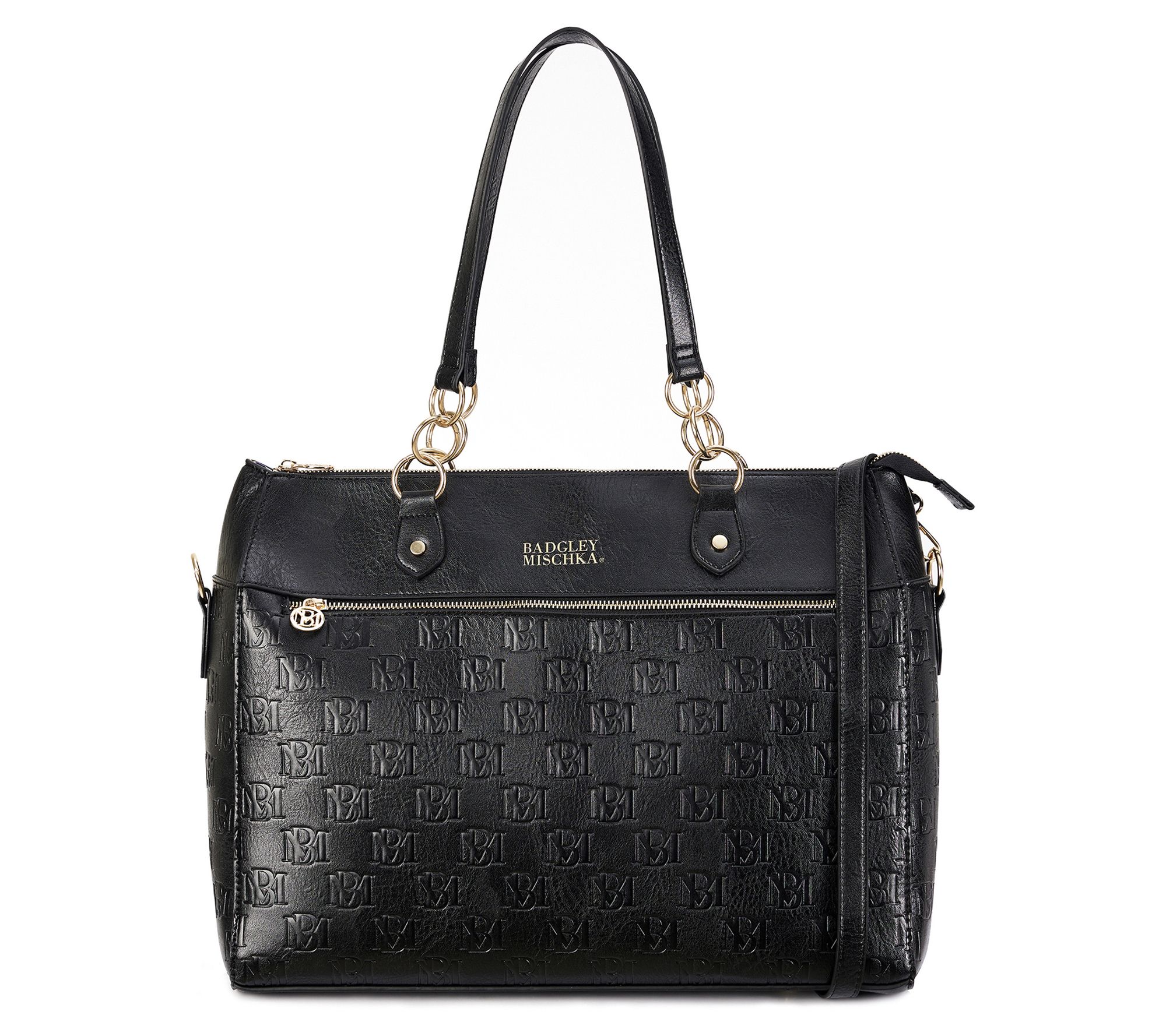 Timeless design that keeps you looking stylish on your overnight trips, this beautiful Madalyn weekender tote offers plenty of space and pockets to keep you organized on the go. From Badgley Mischka.