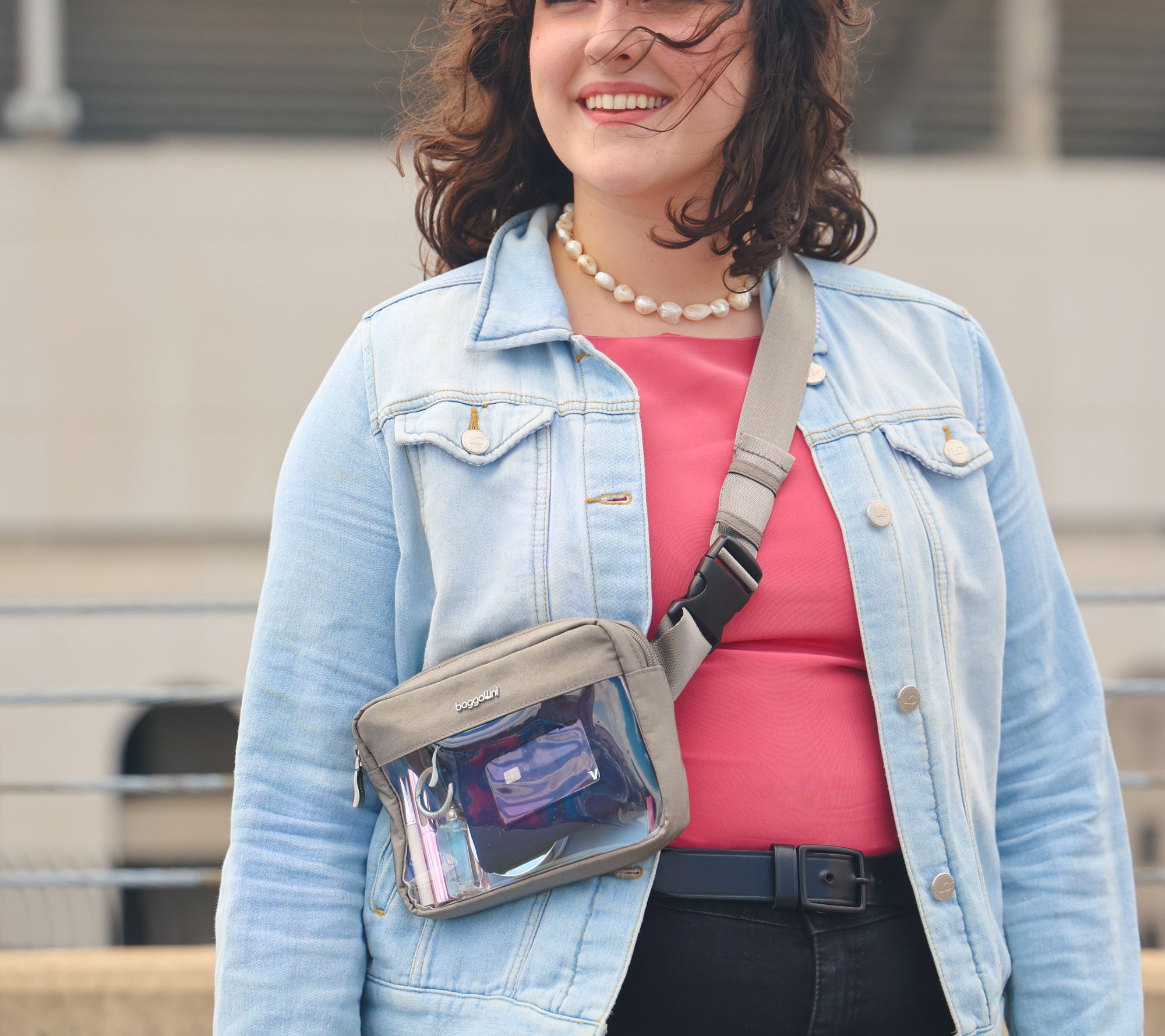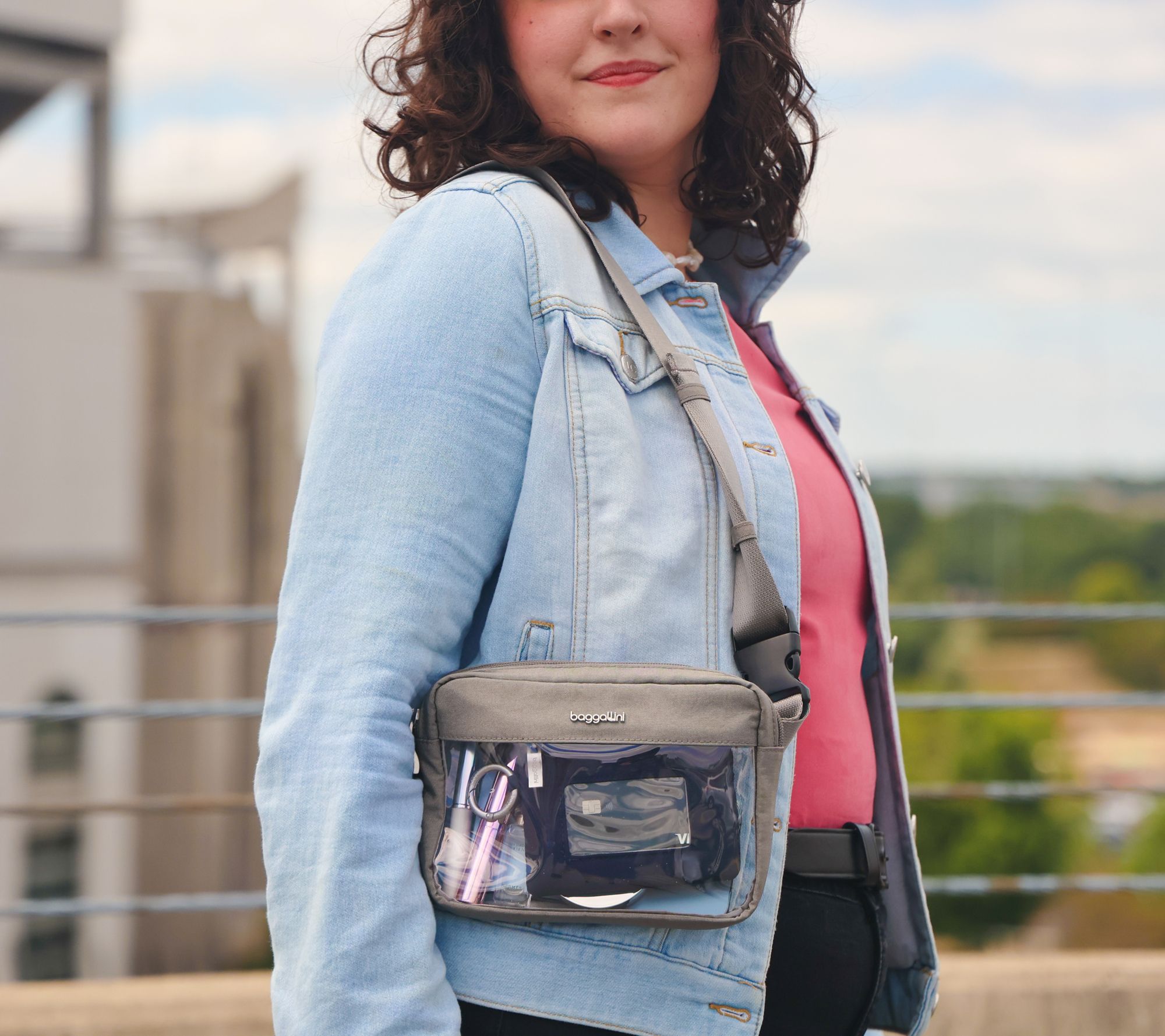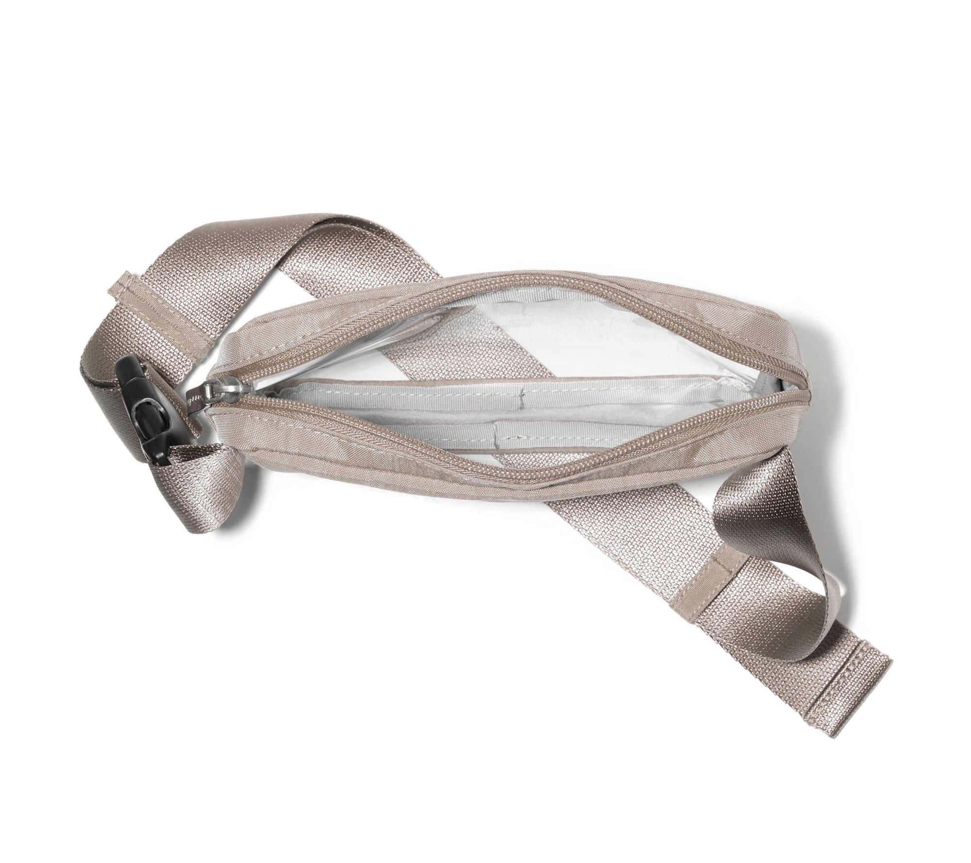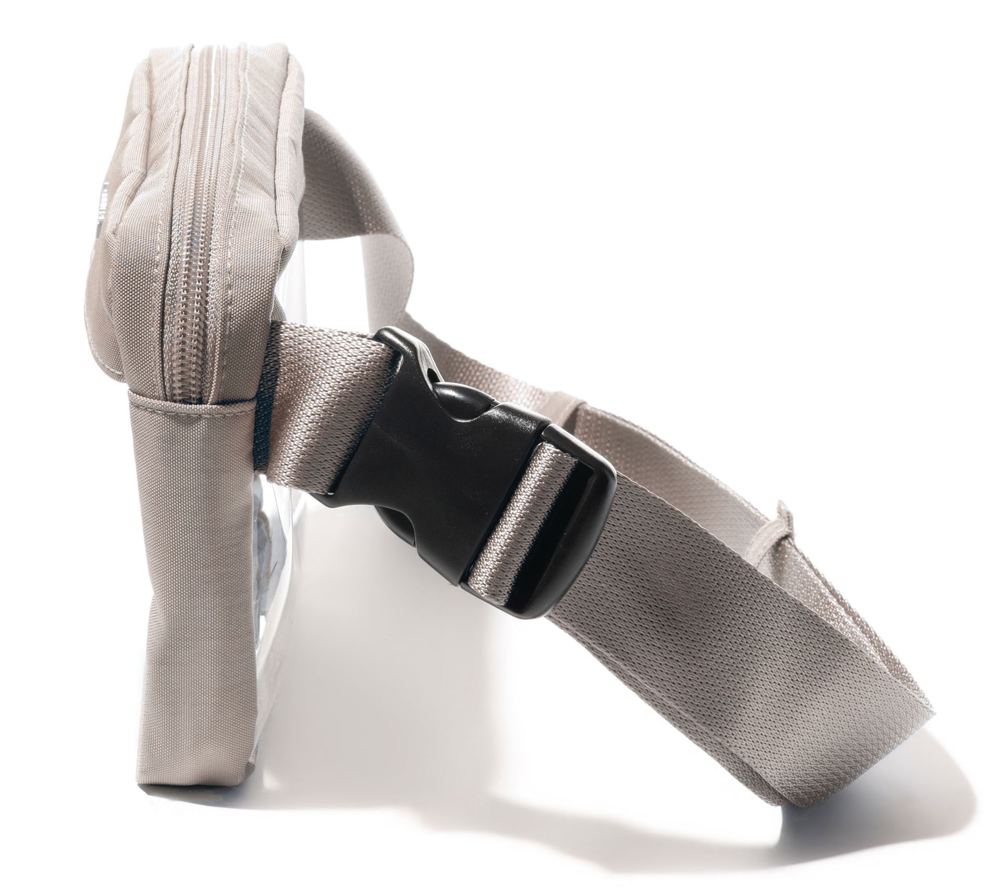 Organize small personal items with the convenient functionality of this stadium-approved belt bag boasting a clear design for quick identification of contents. From Baggallini.