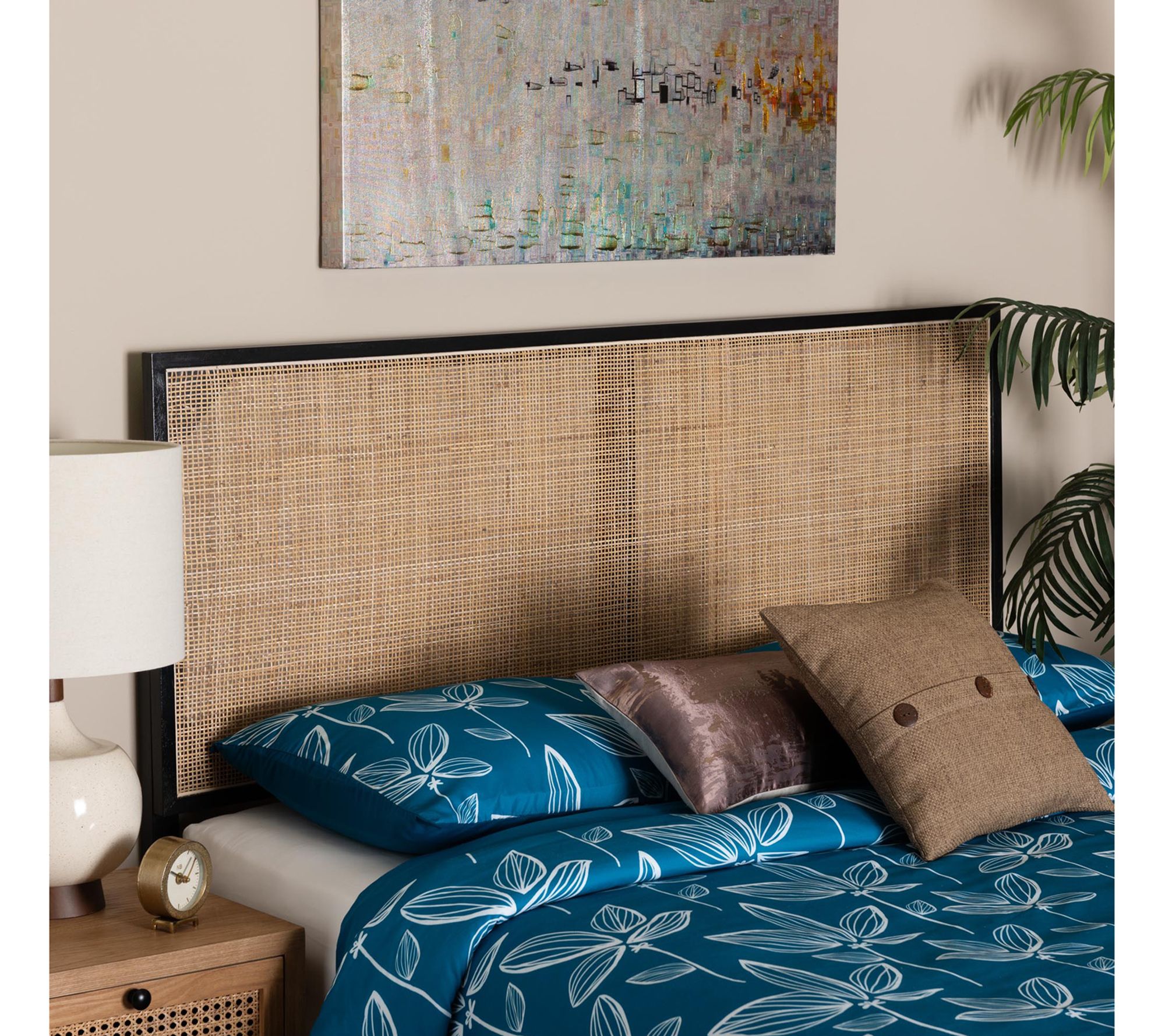bali & pari Aurelia Bayur Wood and Rattan QueenHeadboard