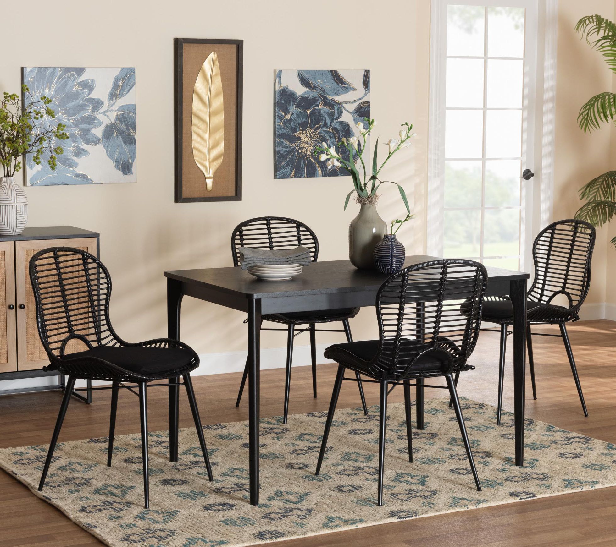 bali & pari Brenna Wood and Rattan 5-Piece Dining Set