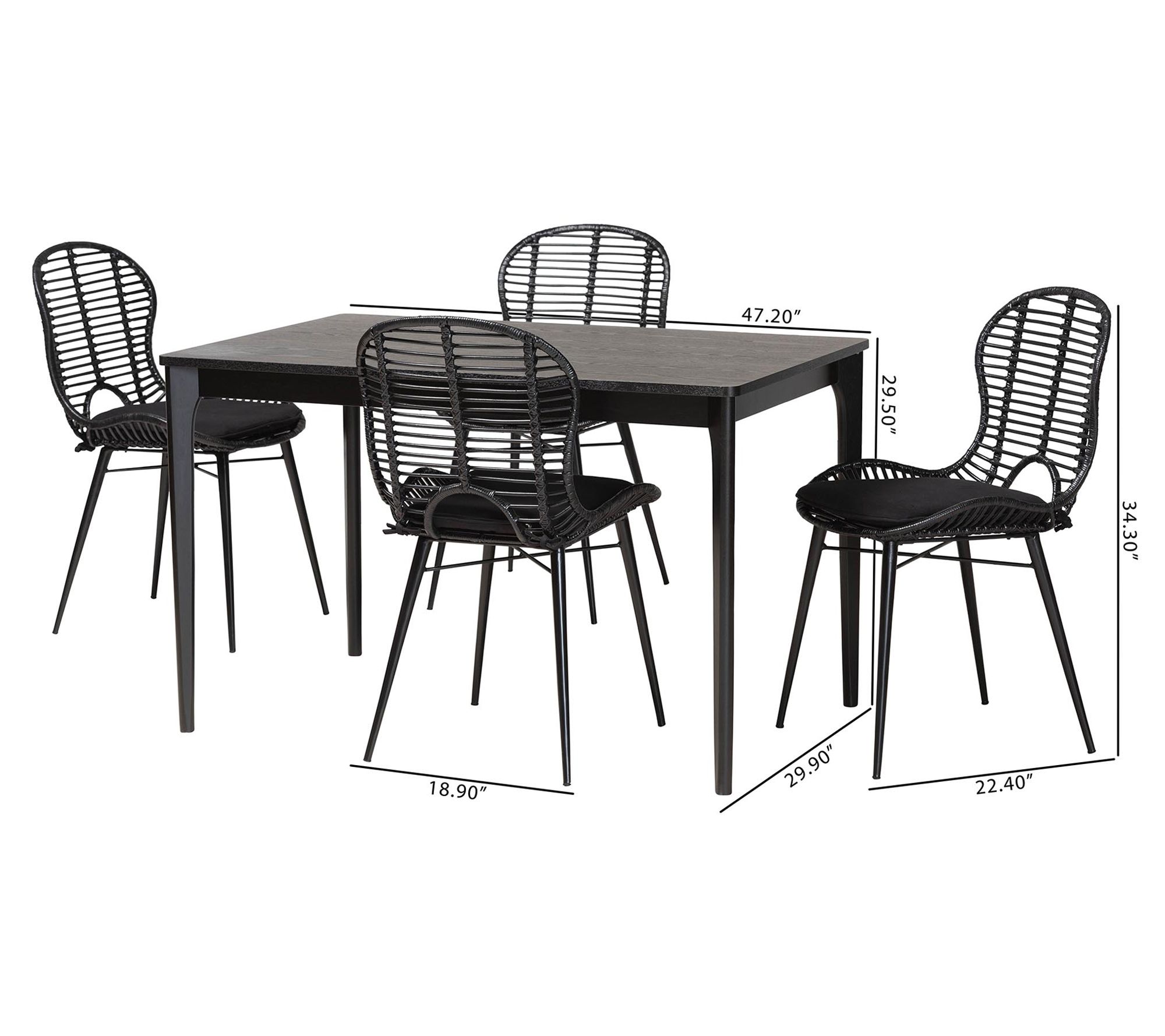 • Measures 47.2"W x 29.9"D x 29.5"H (table); 18.9"W x 22.4"D x 34.3"H (chairs)