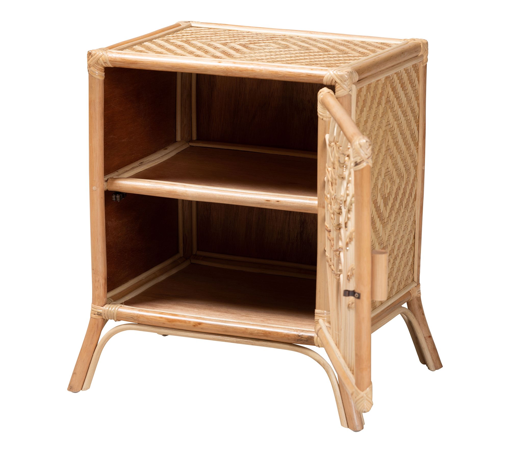 Accent your bedroom with serene grace with the lovely Danna nightstand. The door is interlaid with rattan rods for a stunning display that showcases the exotic craftsmanship of the piece. From bali & pari.