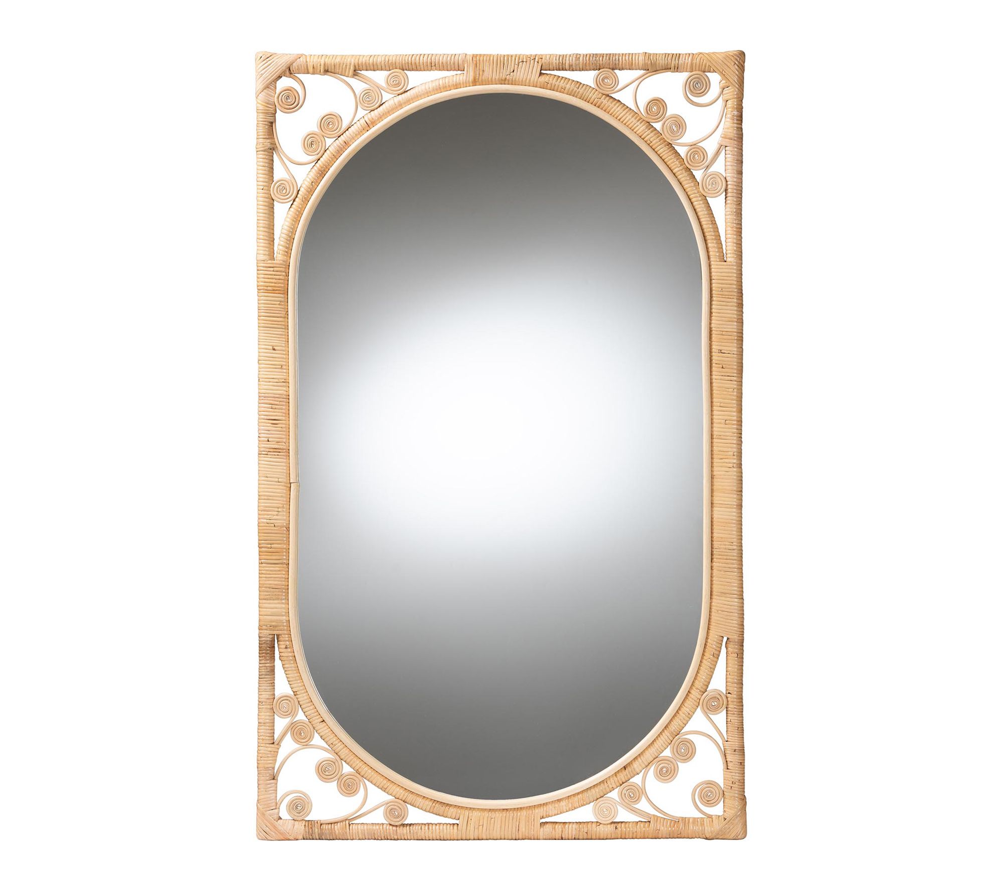 Carry a sense of harmony into your home with the Isley accent wall mirror, where a beautifully curved oval frame in natural rattan brings breezy bohemian style to your space. This decorative accent instantly brightens your entryway, living room, or bedroom with its large mirrored center and eye-catching texture. From Baxton Studio.