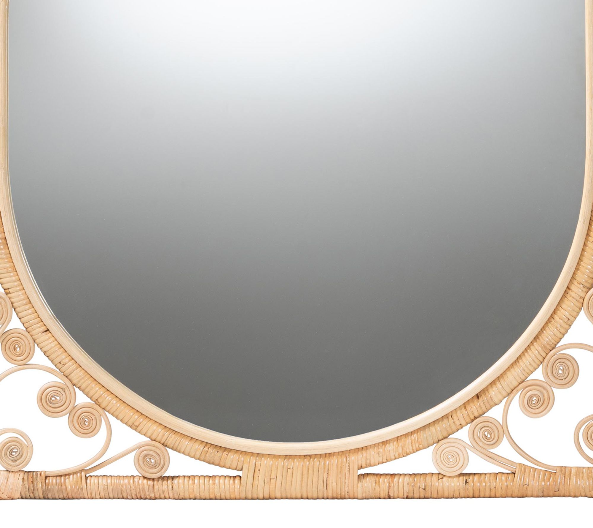 • Natural rattan frame with curled embellishments for visual texture