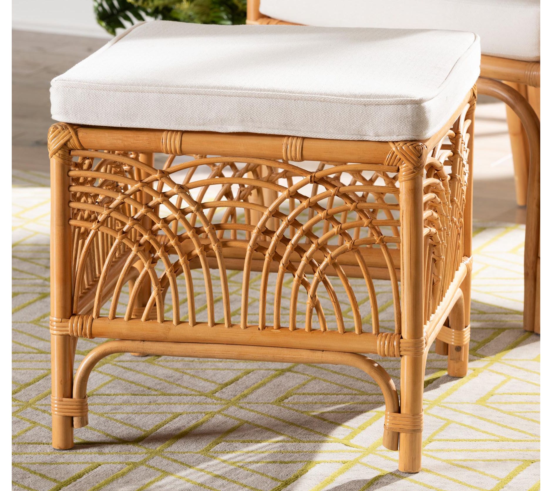 Whether you're unwinding after a long day or gathering with friends, this Materra natural rattan footstool invites effortless comfort and boho-inspired style. The plush, foam-padded cushion creates just the right spot to kick up your feet or add casual seating for guests. From bali pari.