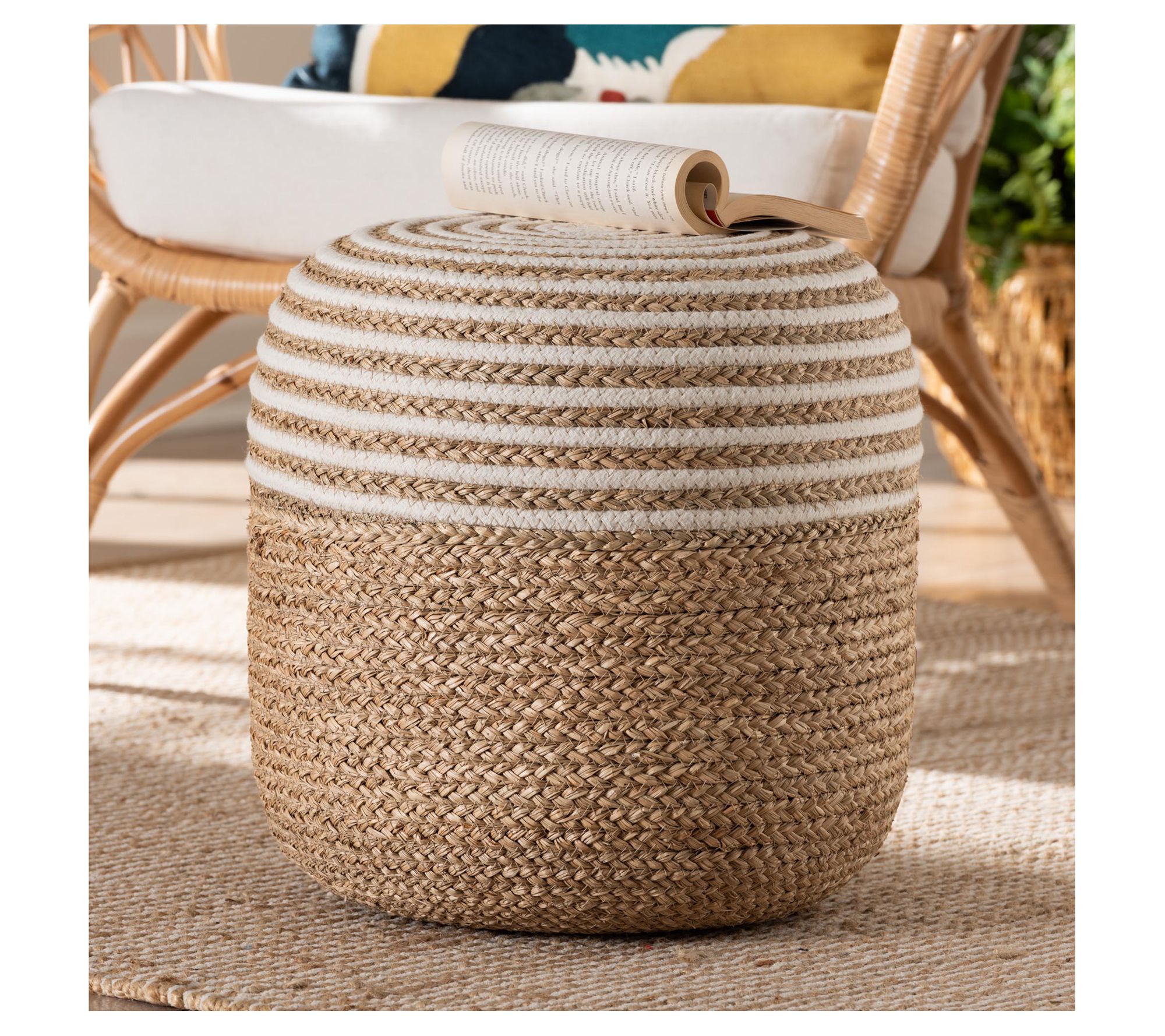 bali & pari Nequiel Seagrass and Woven Rope Ottoman Footstool