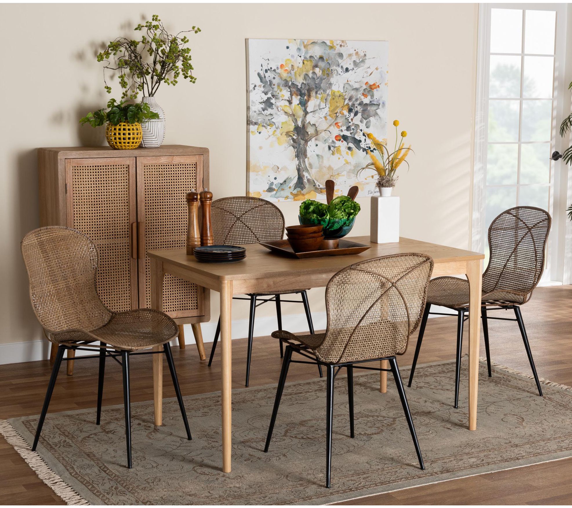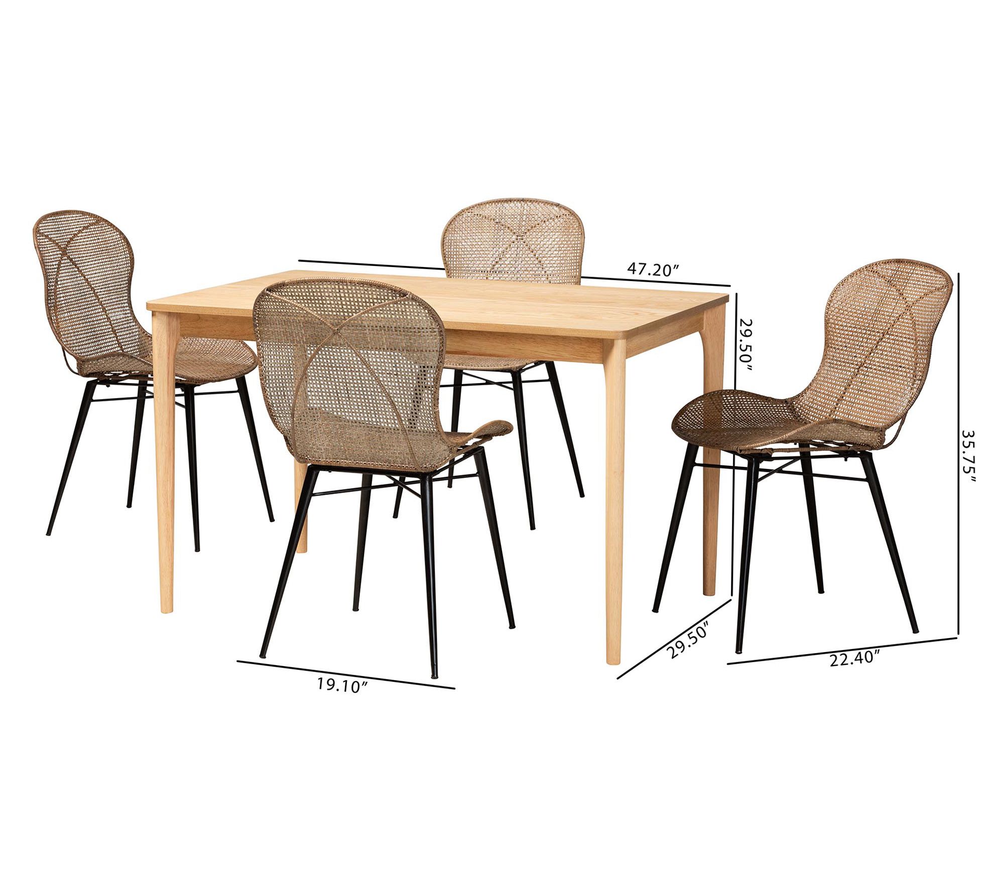 bali & pari Sabelle Brown Wood and Rattan 5-Piece Dining Set