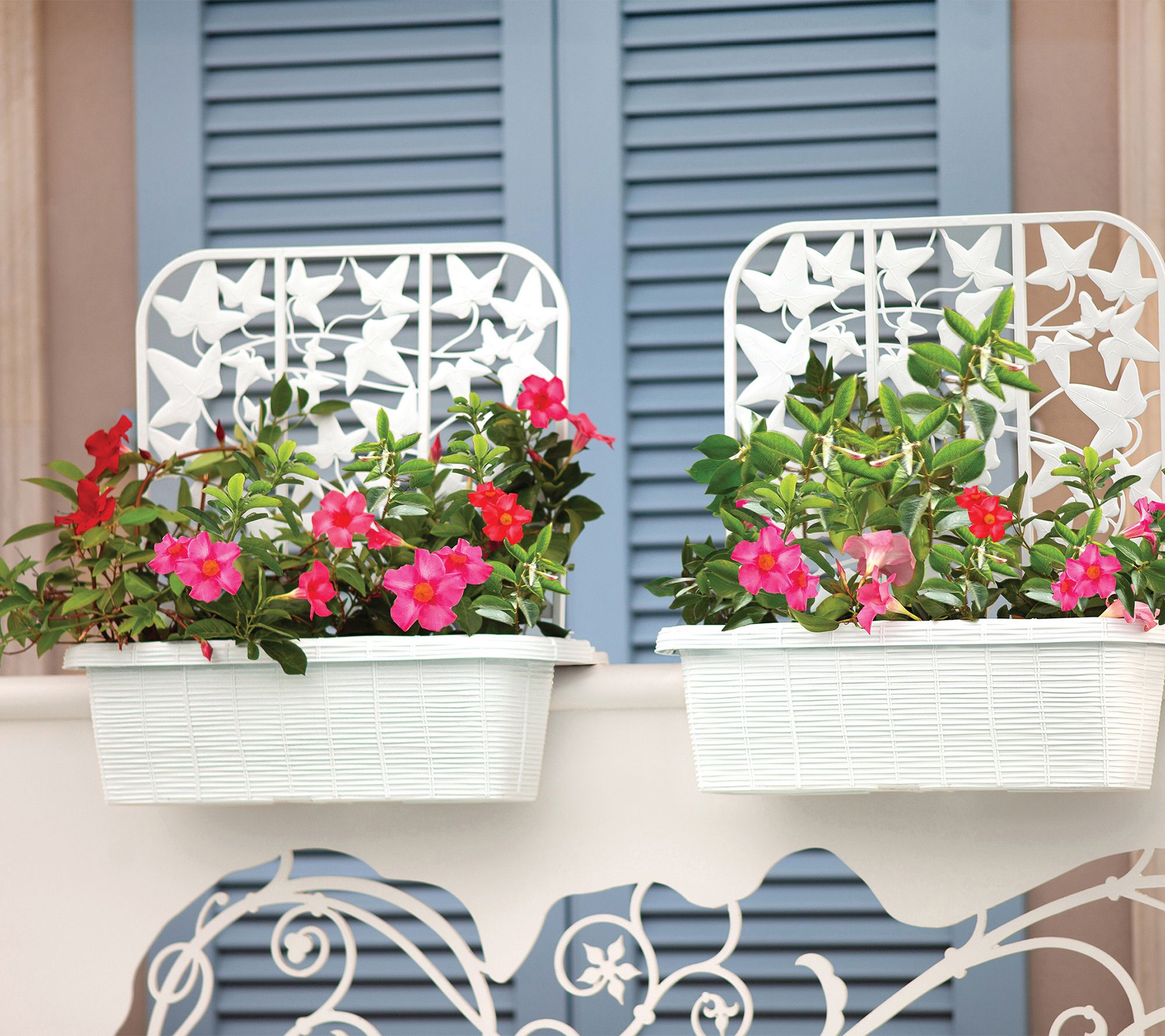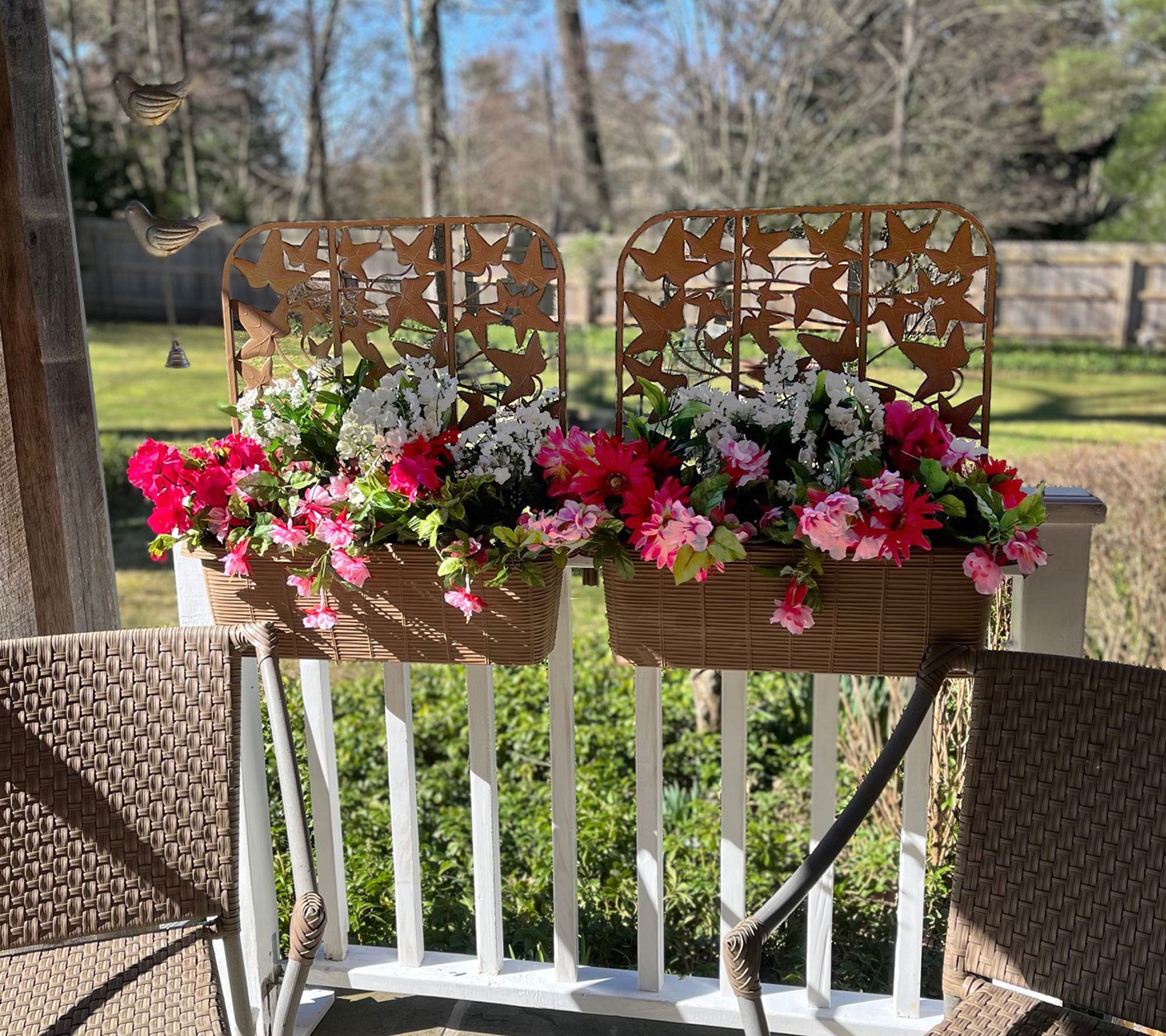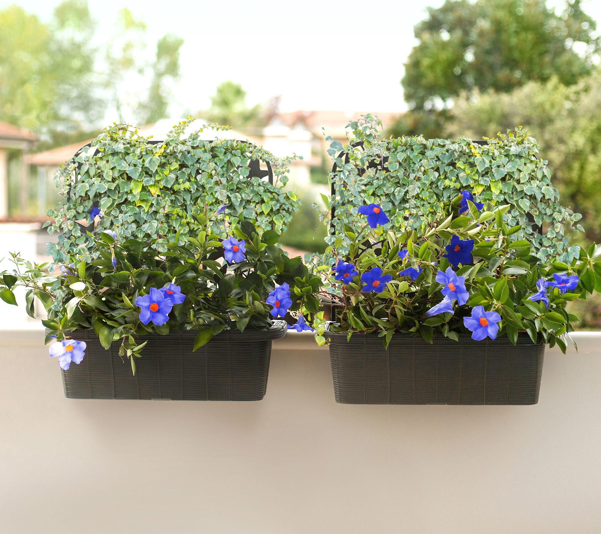 • Includes two deck rail planters, each with three trellis sections