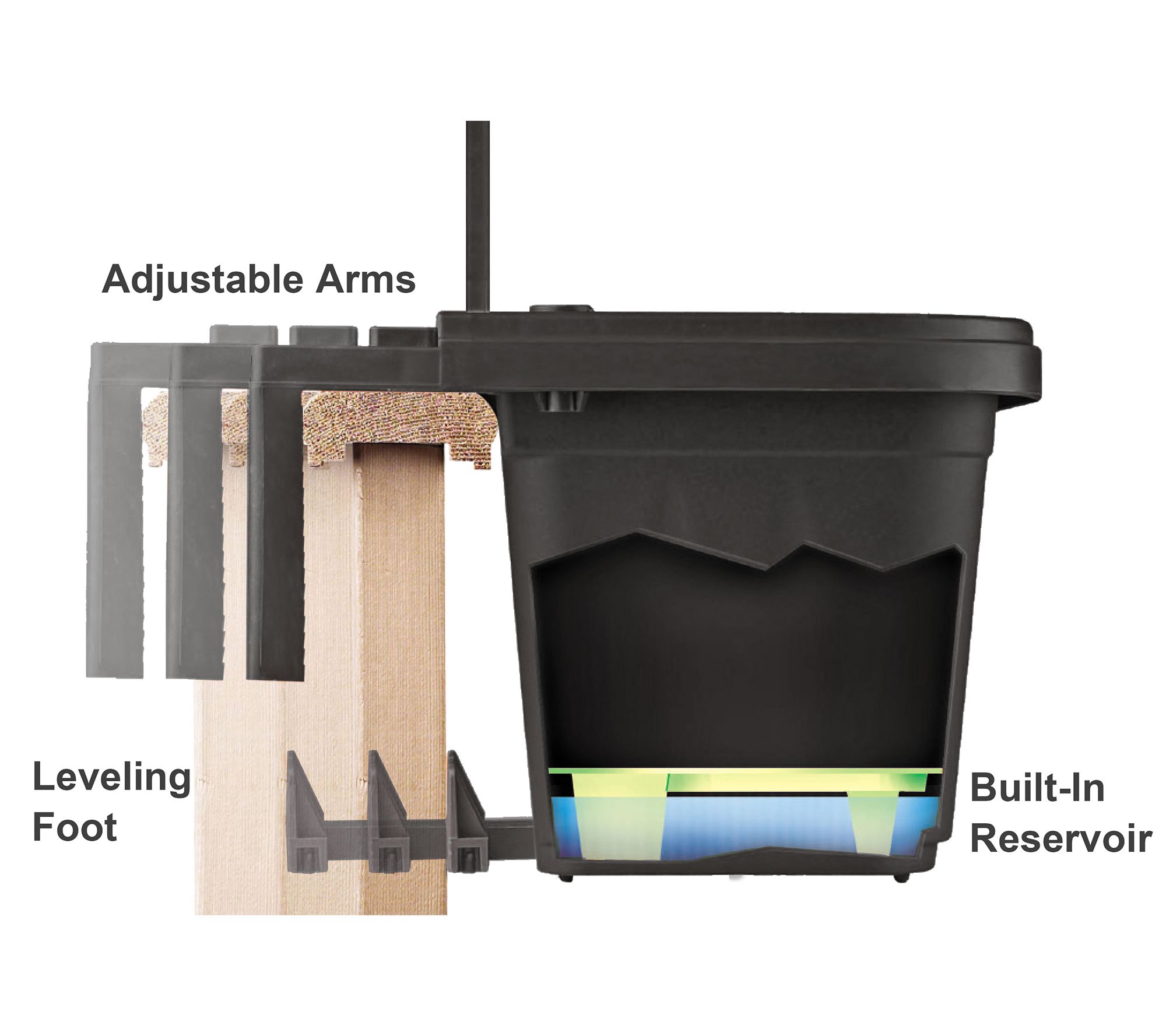 • Built-in water reservoir with 1" overflow