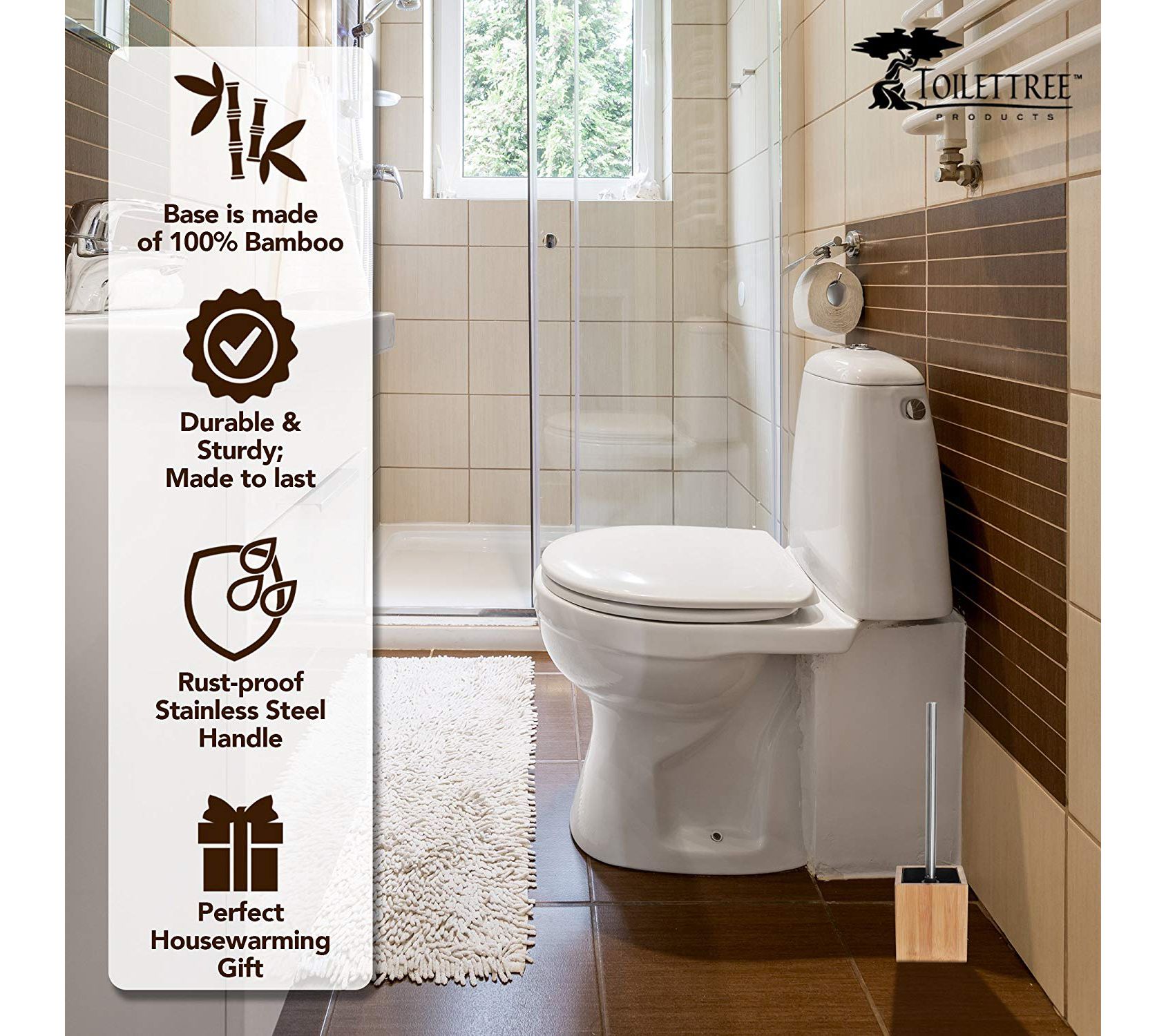 Say goodbye to plastic bowl/brush combos and "hello" to this sturdy, stylish wooden toilet brush and holder that stays put and elevates your decor. From ToiletTree Products.