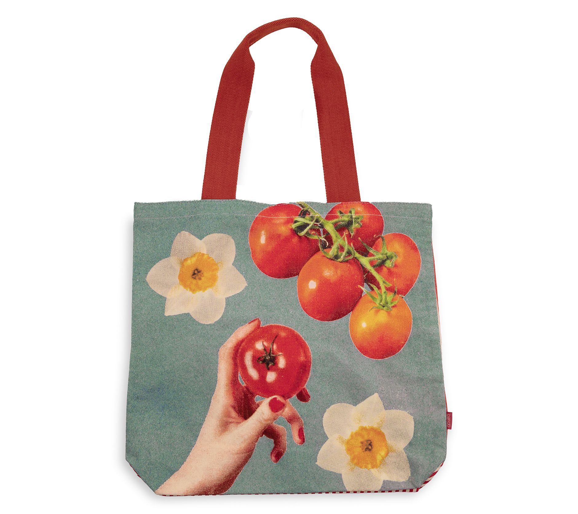 Transport yourself to the vibrant world of fresh farmers' markets and fun outings with the ban.do canvas tote. This sturdy, spacious tote celebrates your love for all things tomato with its playful double-sided design. Handy for daily essentials, it includes a practical interior patch pocket to keep your smaller items organized. From ban.do.