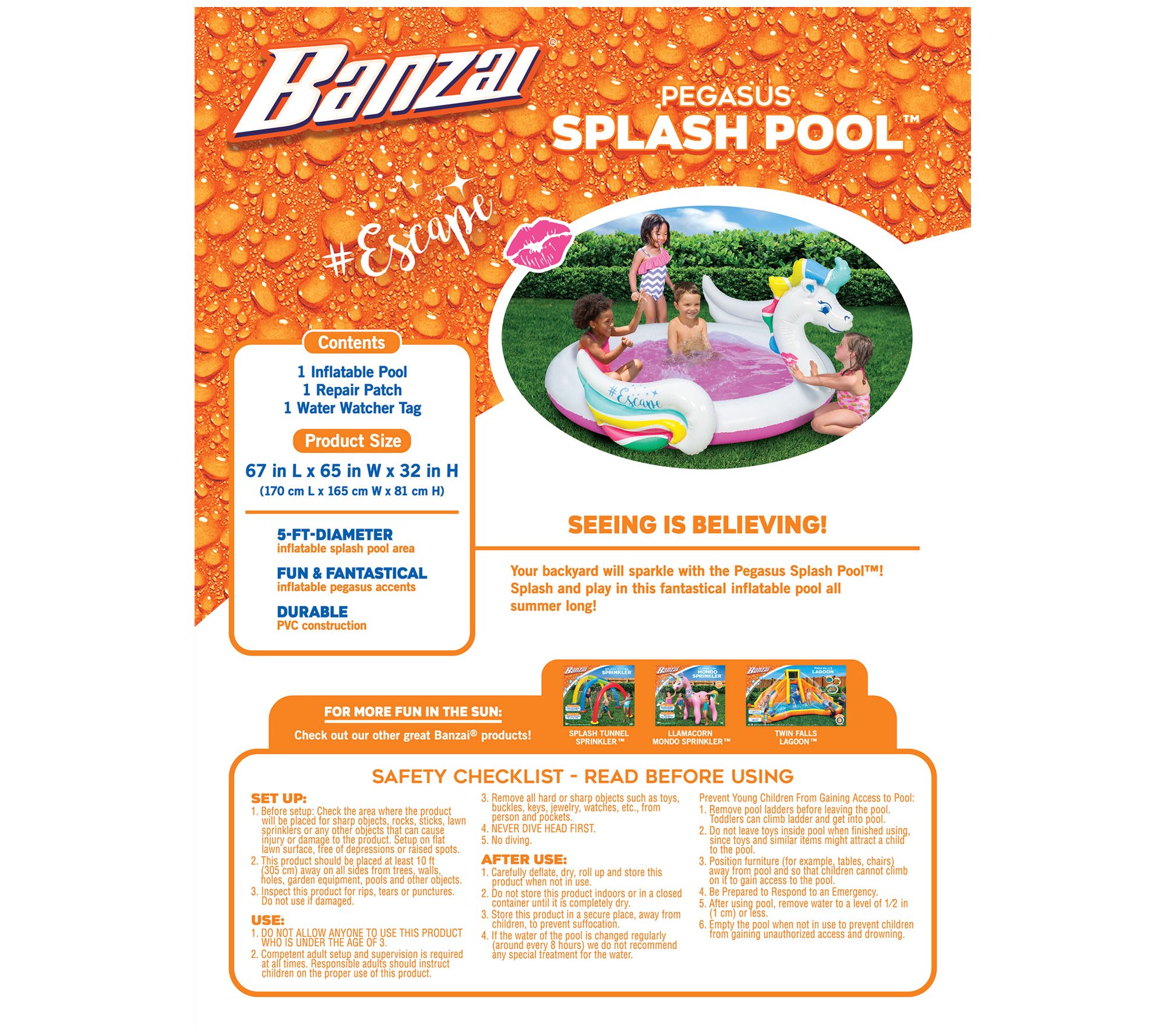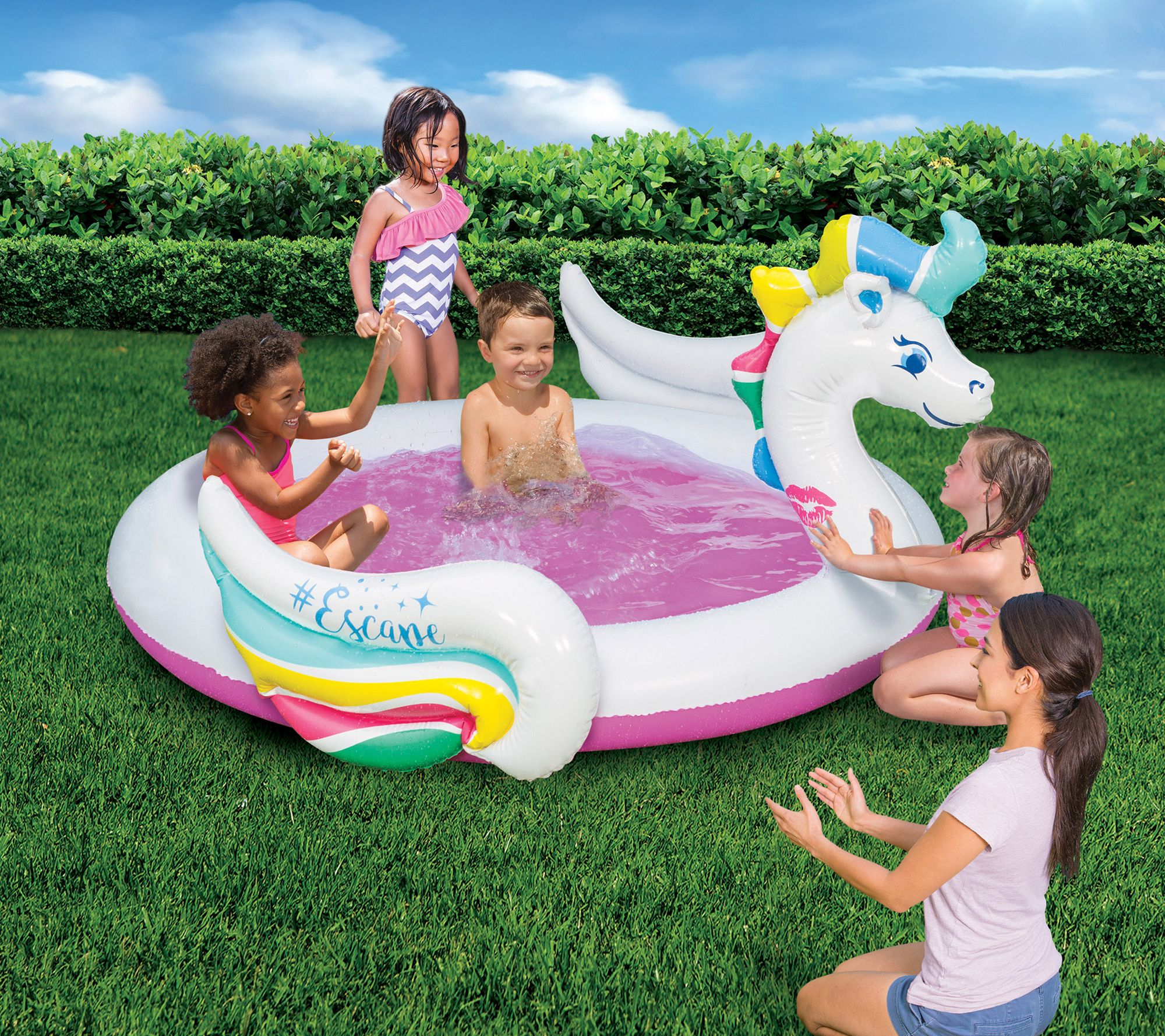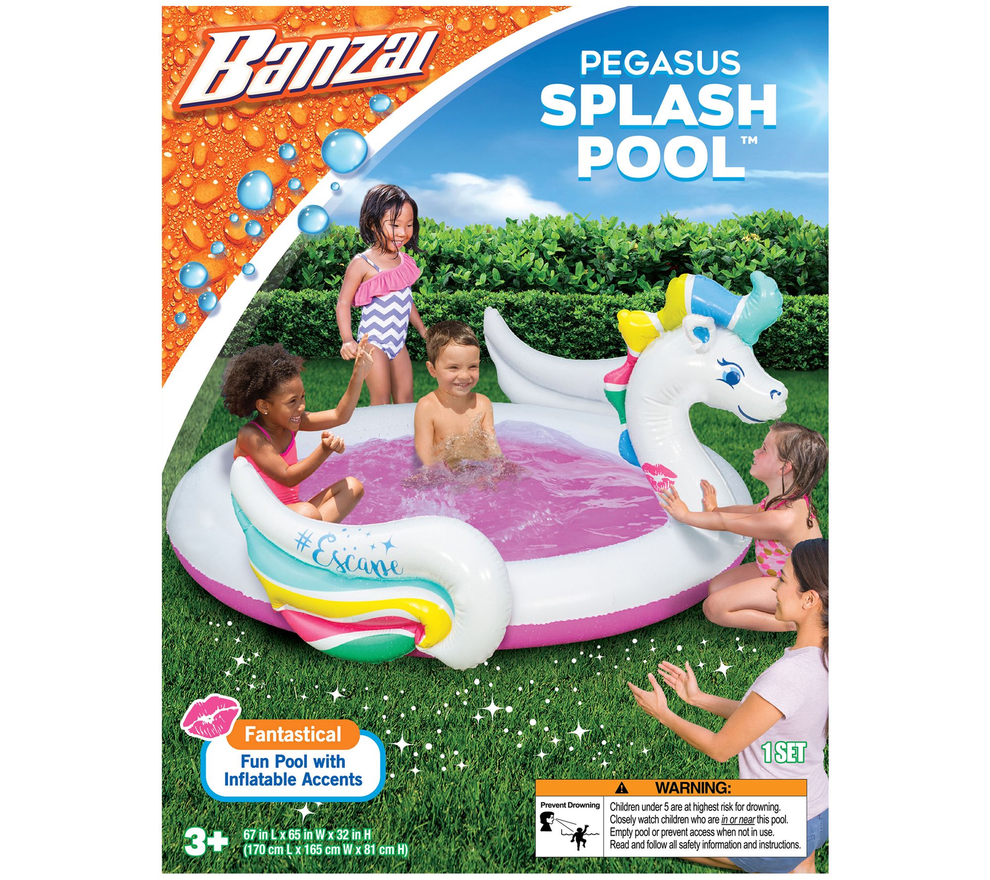Water play is even more magical in this Pegasus Splash Pool. It's conveniently inflatable and features a mystical design to make summertime fantastic. From Banzai.