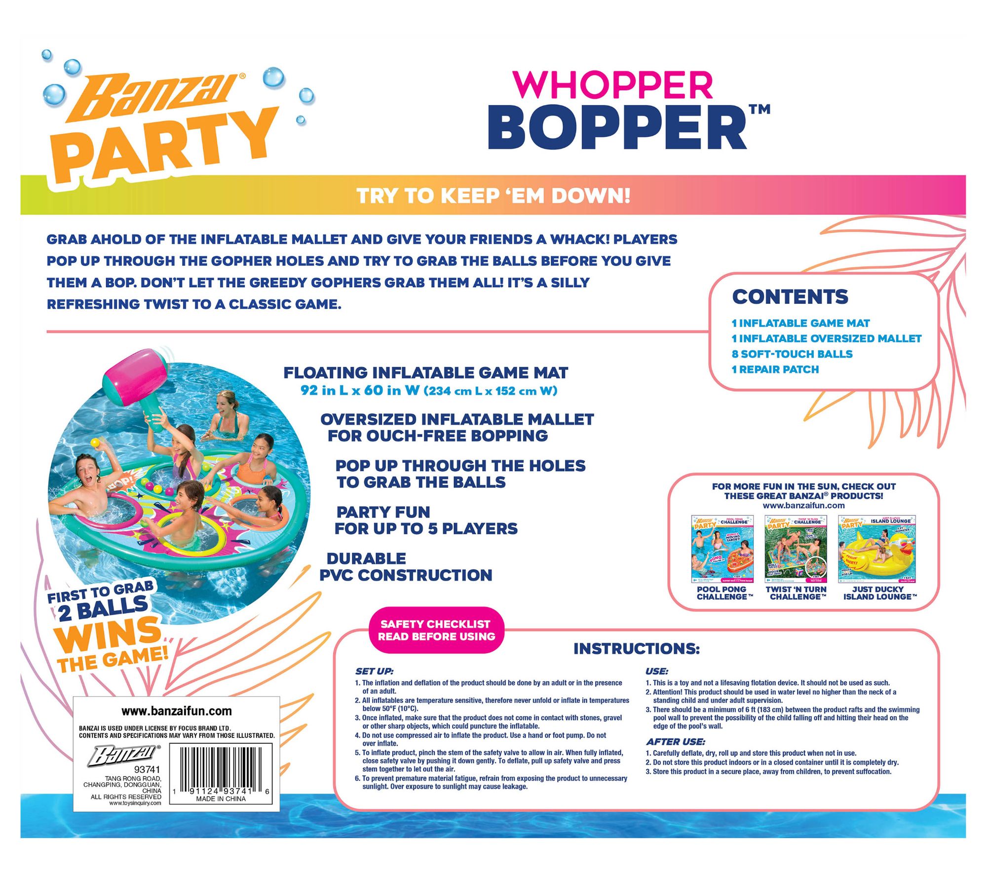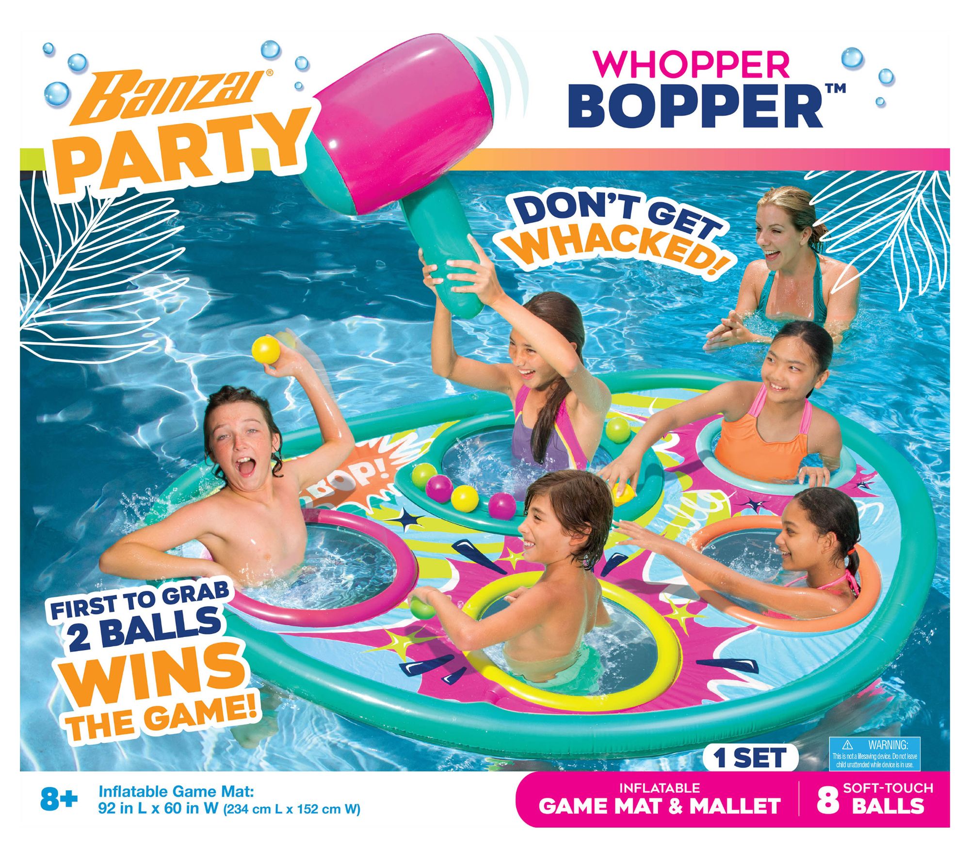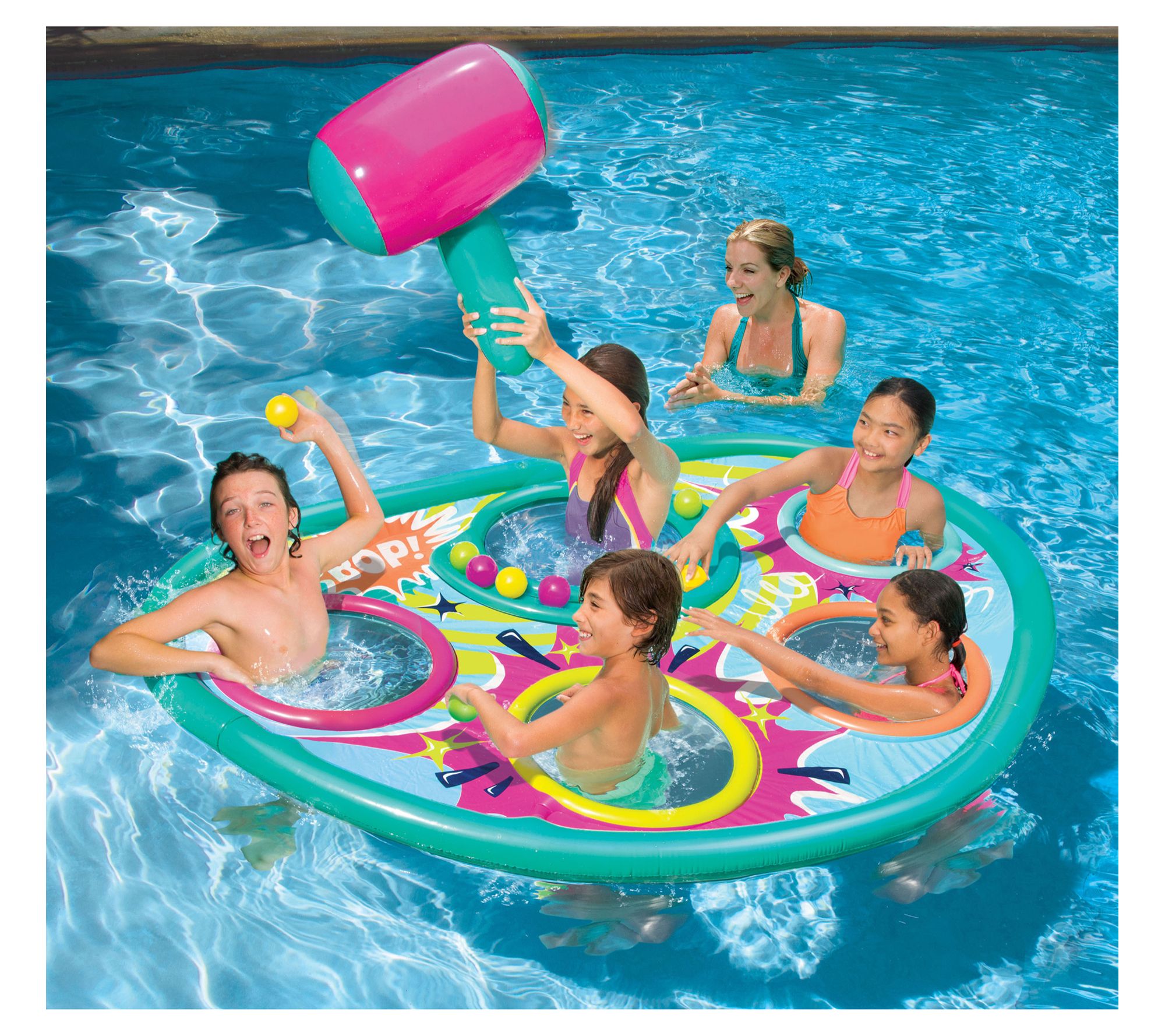 Everyone's favorite arcade game makes an even bigger splash in the pool! With the Whopper Bopper pool float game, players pop up through the gopher holes and try to grab the balls before getting bopped with an inflatable hammer. From Banzai.
