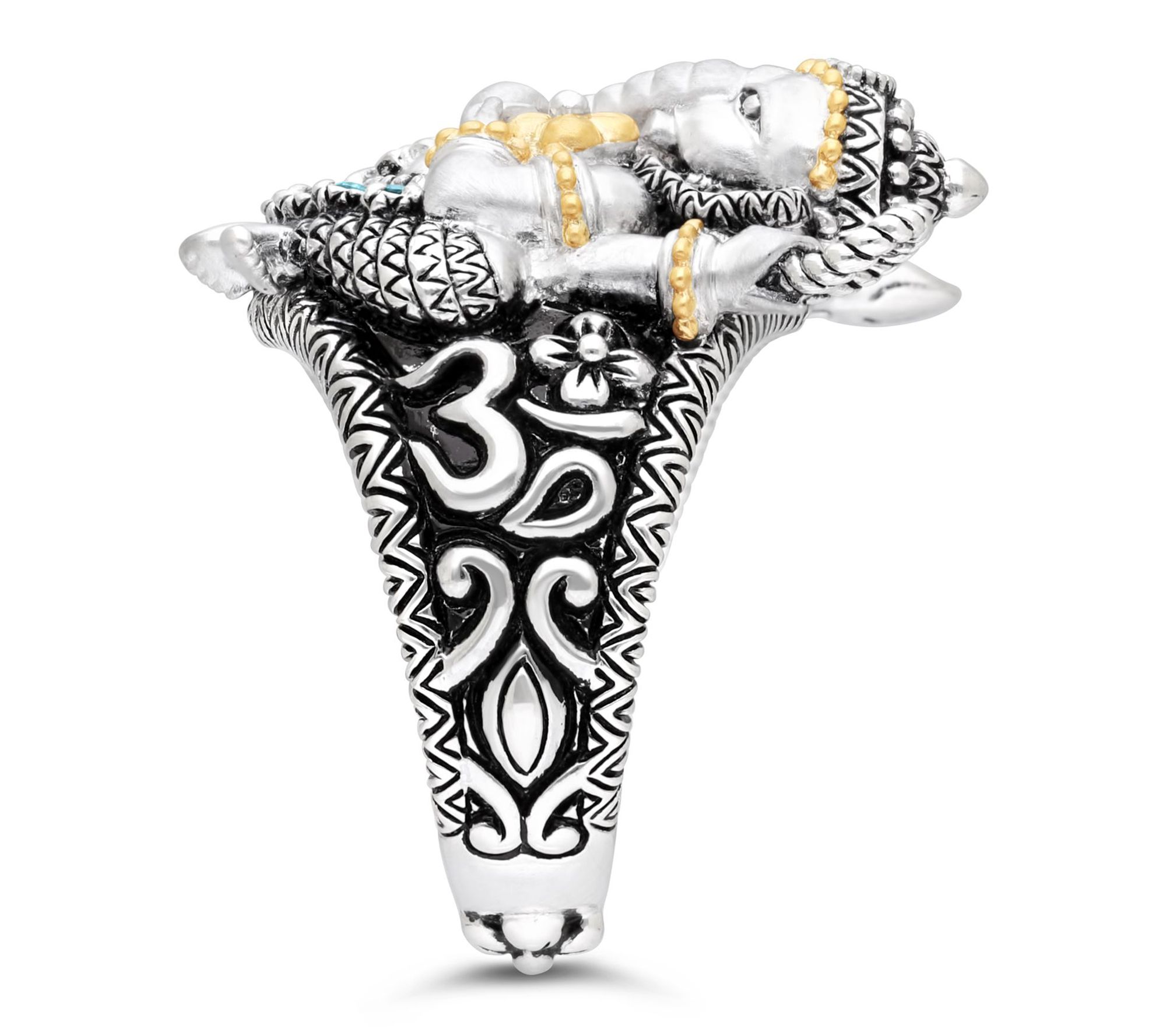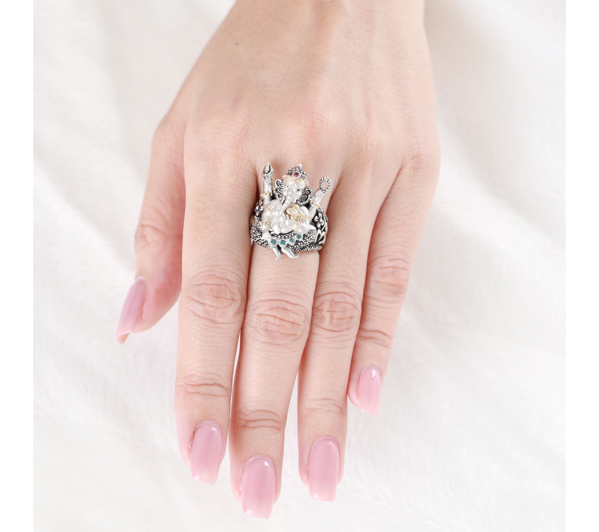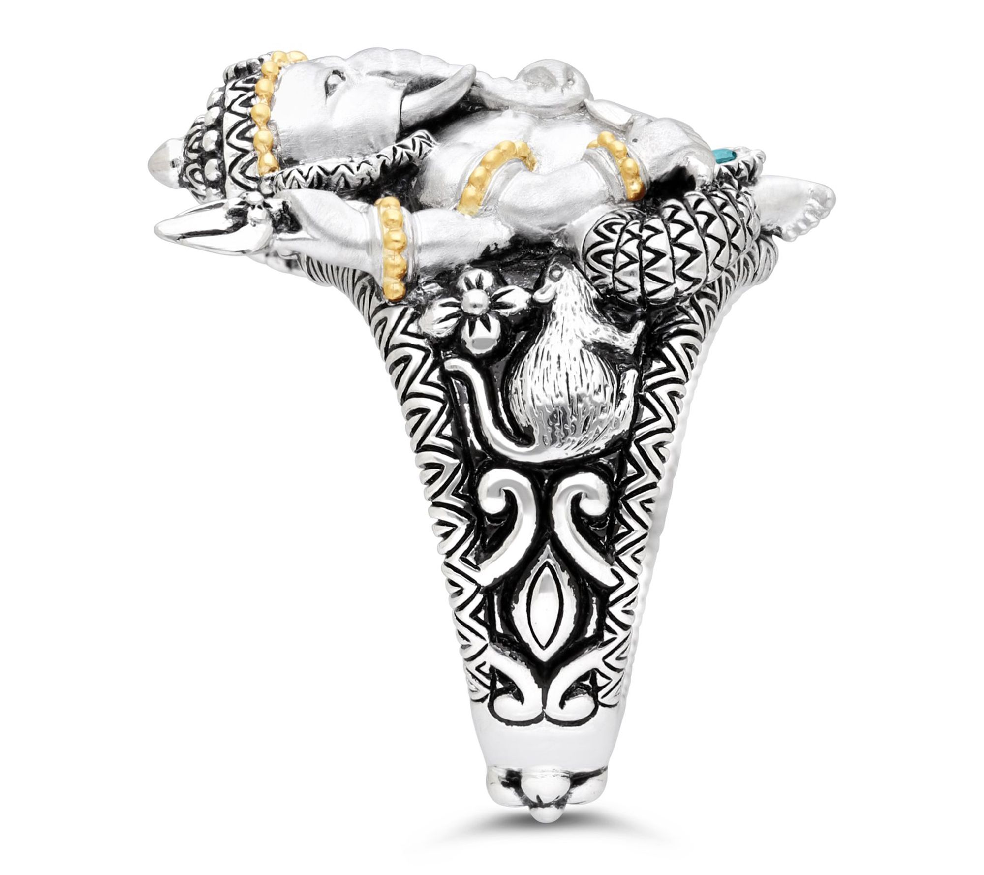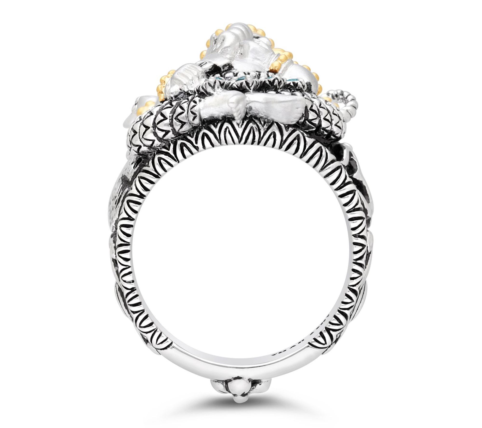 Channel wisdom and positivity with this Ganesha ring, where striking gemstones and rich 18K gold accents celebrate tradition and style. This piece makes a thoughtful gift or a meaningful addition to your own collection, beautifully blending timeless design with vibrant color to inspire confidence every time you wear it. From Barbara Bixby.