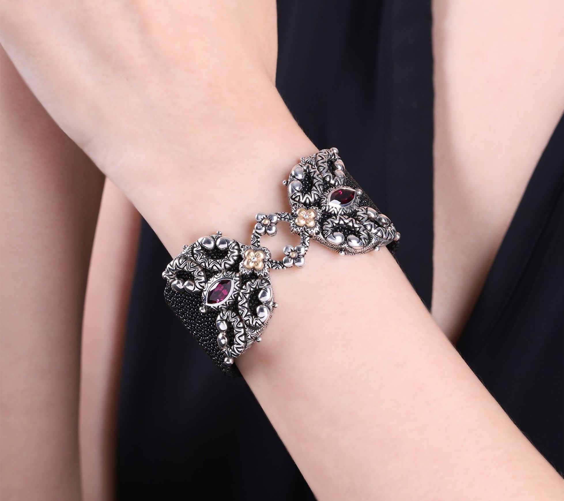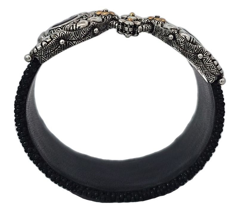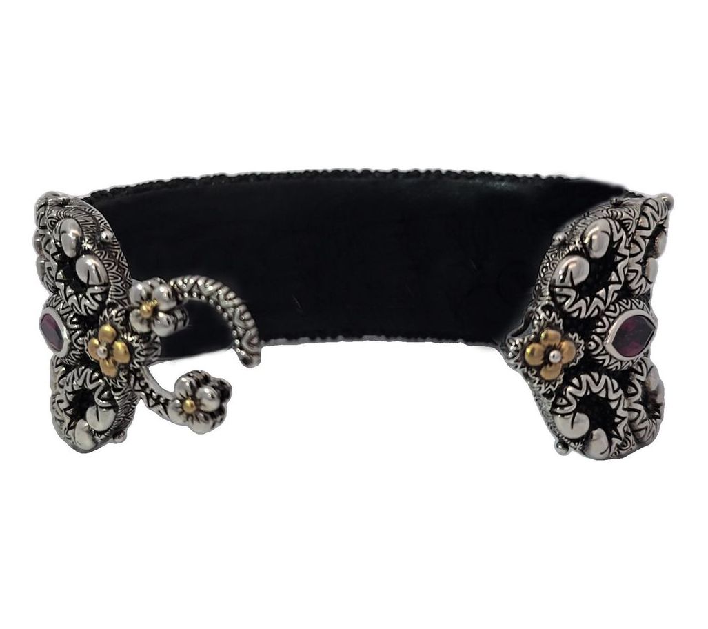 Capture the essence of sophistication with this Barbara Bixby sterling silver and 18K gold cuff. The unique piece combines rich leather with an 18K gold- and gemstone-accented design for a luxe statement. From Barbara Bixby.