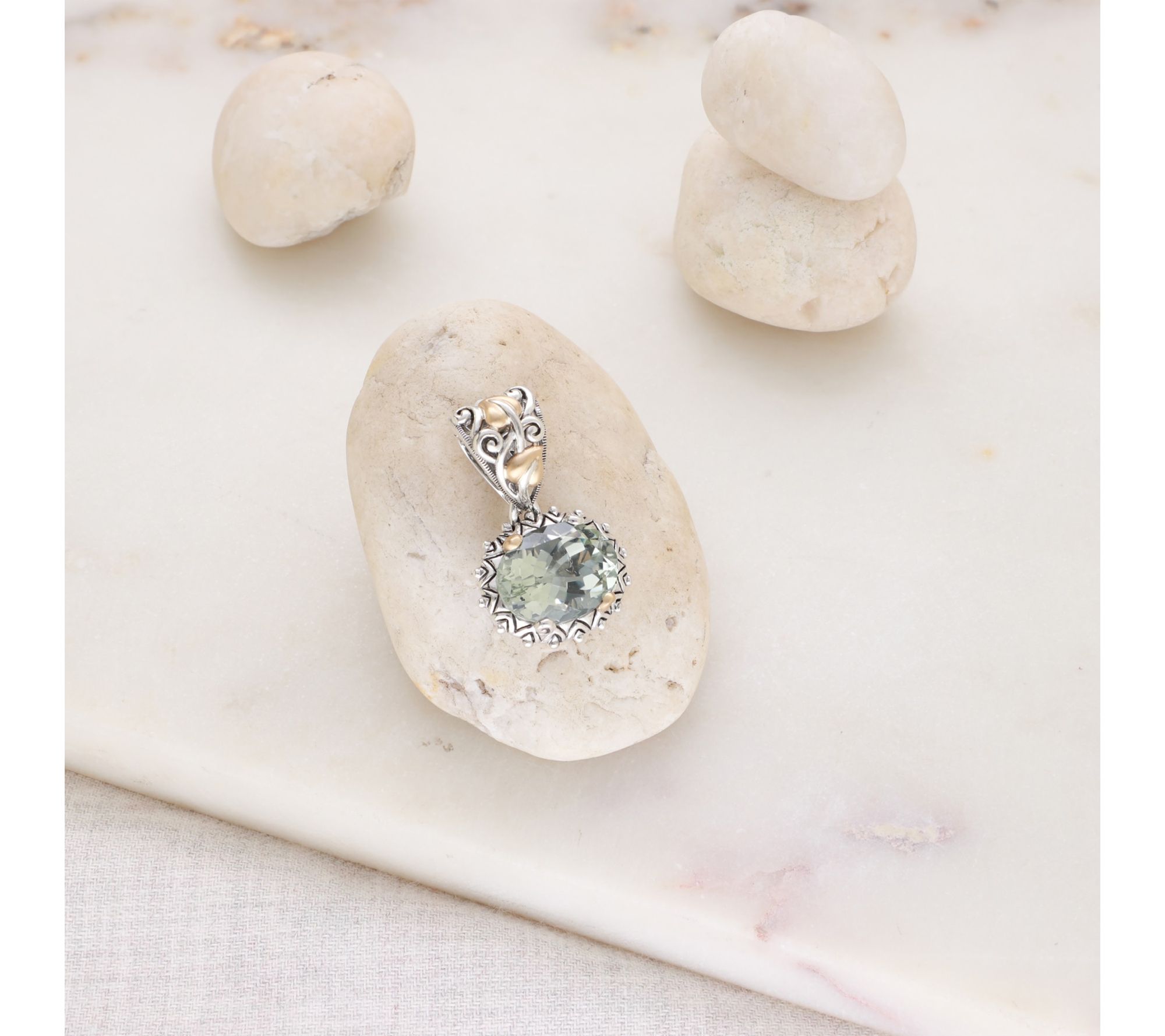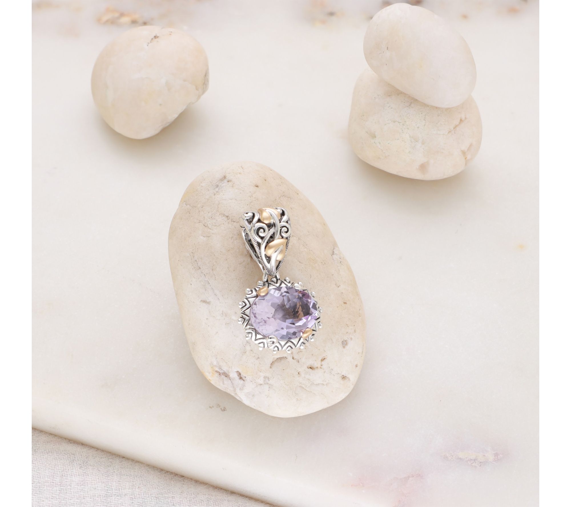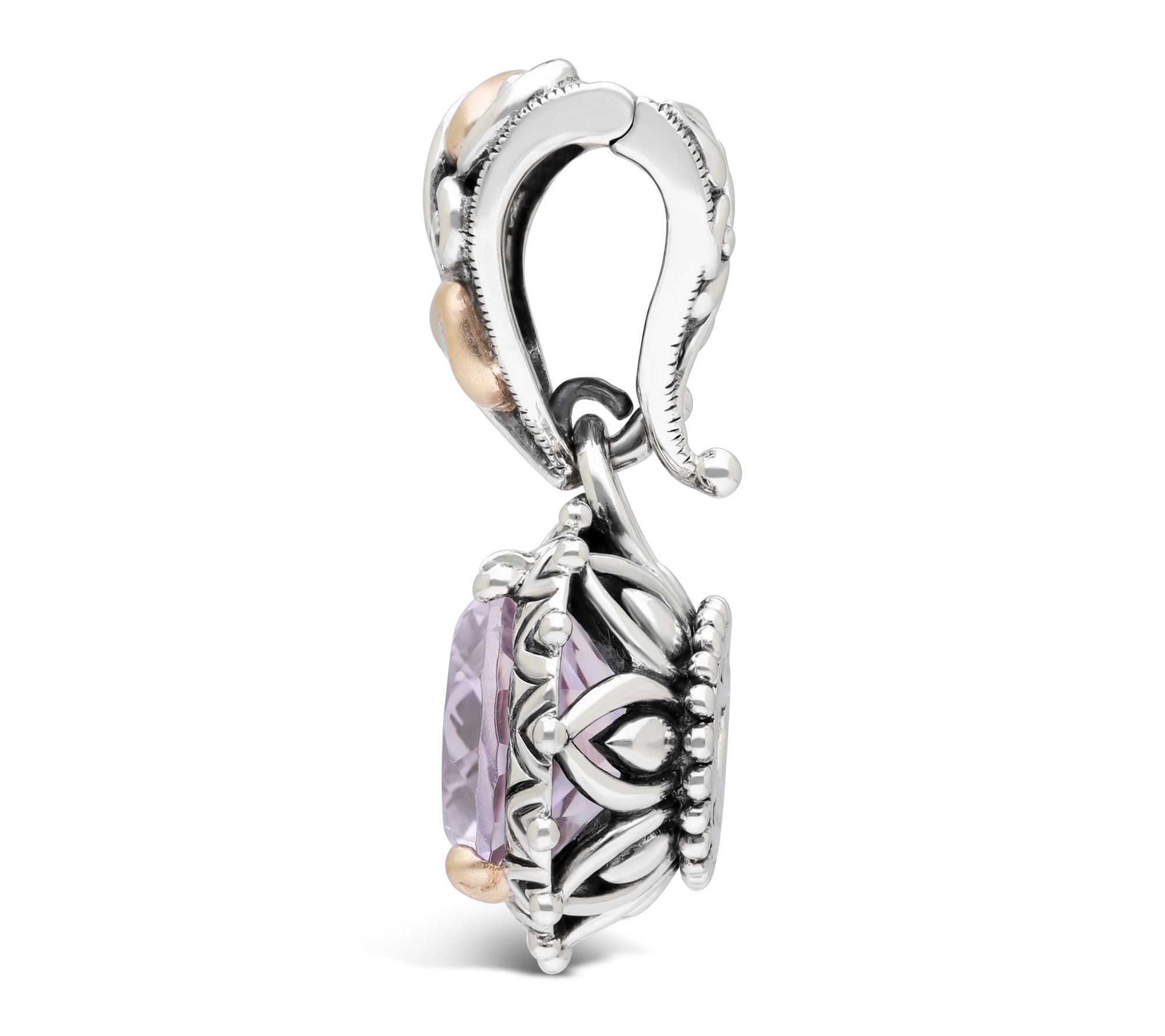 Does your chain need a change-up? This two-tone enhancer -- a finely detailed, beautifully oxidized design anchored by an oval gemstone -- puts your colorful, eclectic personality on full display. From Barbara Bixby.