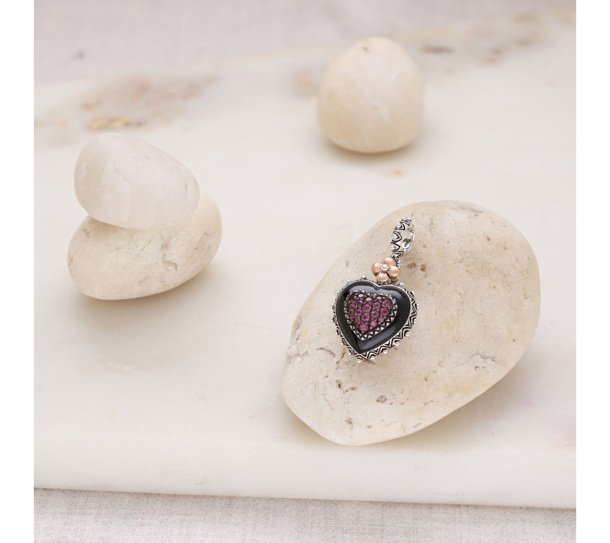 Barbara Bixby Sterling & 18K Onyx & Rhodolite Heart Enhancer