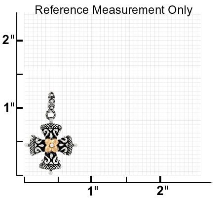 • Maltese cross design with 18K yellow gold flower at center; oxidized sterling silver zigzag and swirl motif on arms of cross