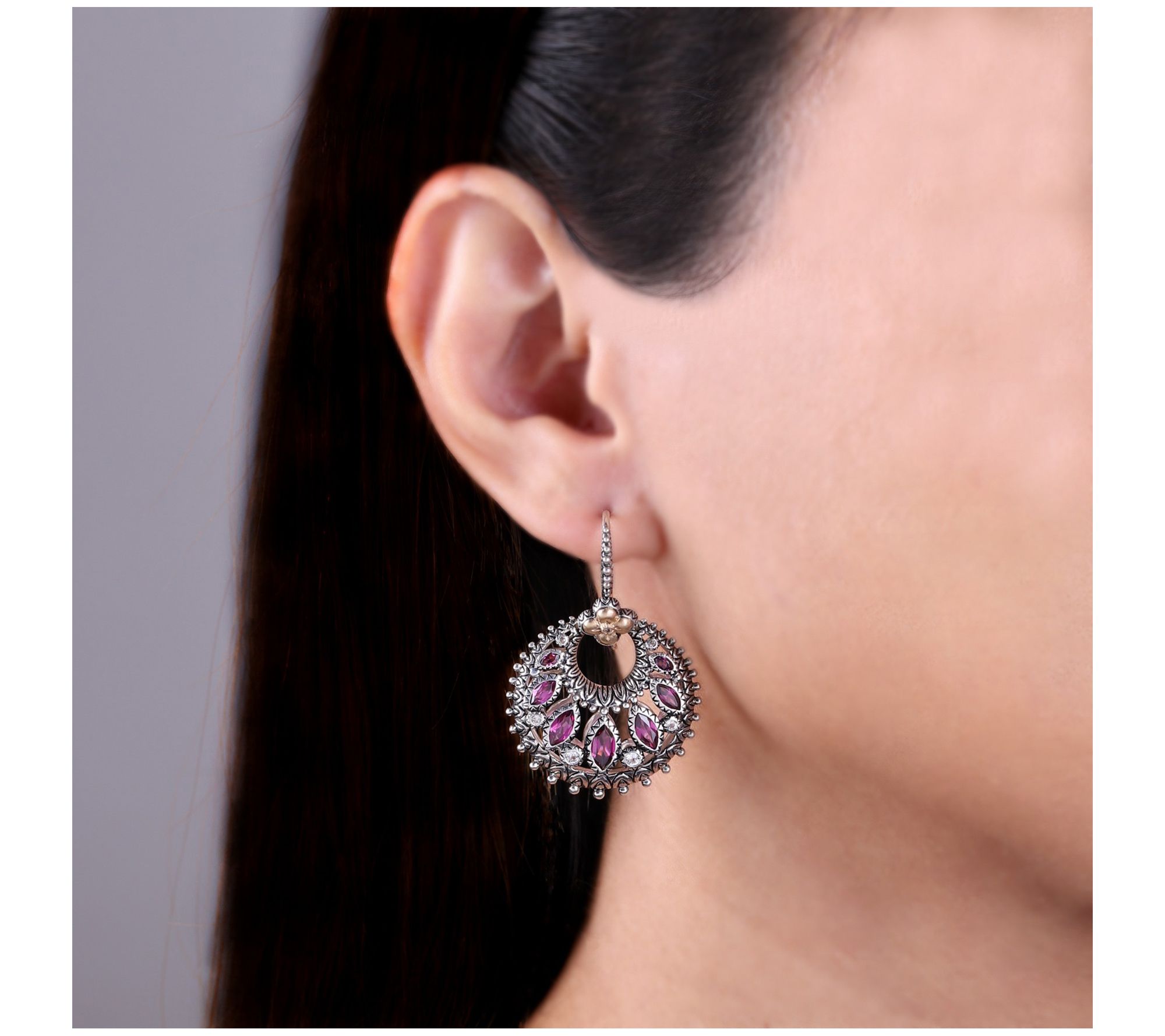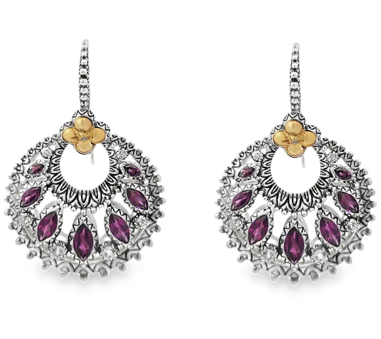 Crafted with sterling silver and adorned with rich rhodolite marquise stones that beautifully alternate with round white topaz stones, these earrings bring sophistication to any outfit. From Barbara Bixby.