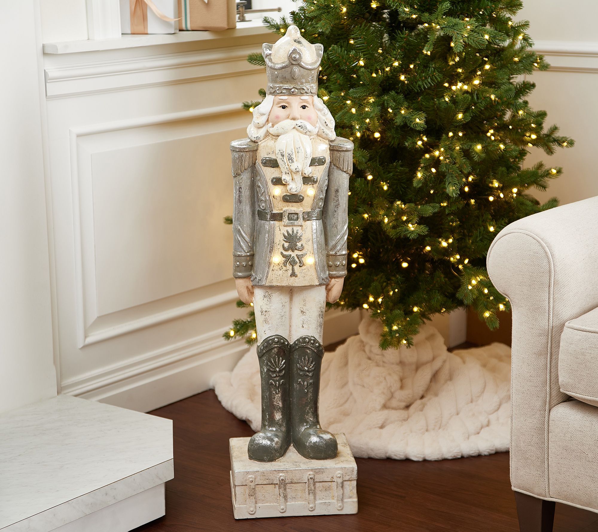 Barbara King 36" Illuminated Silver Nutcracker