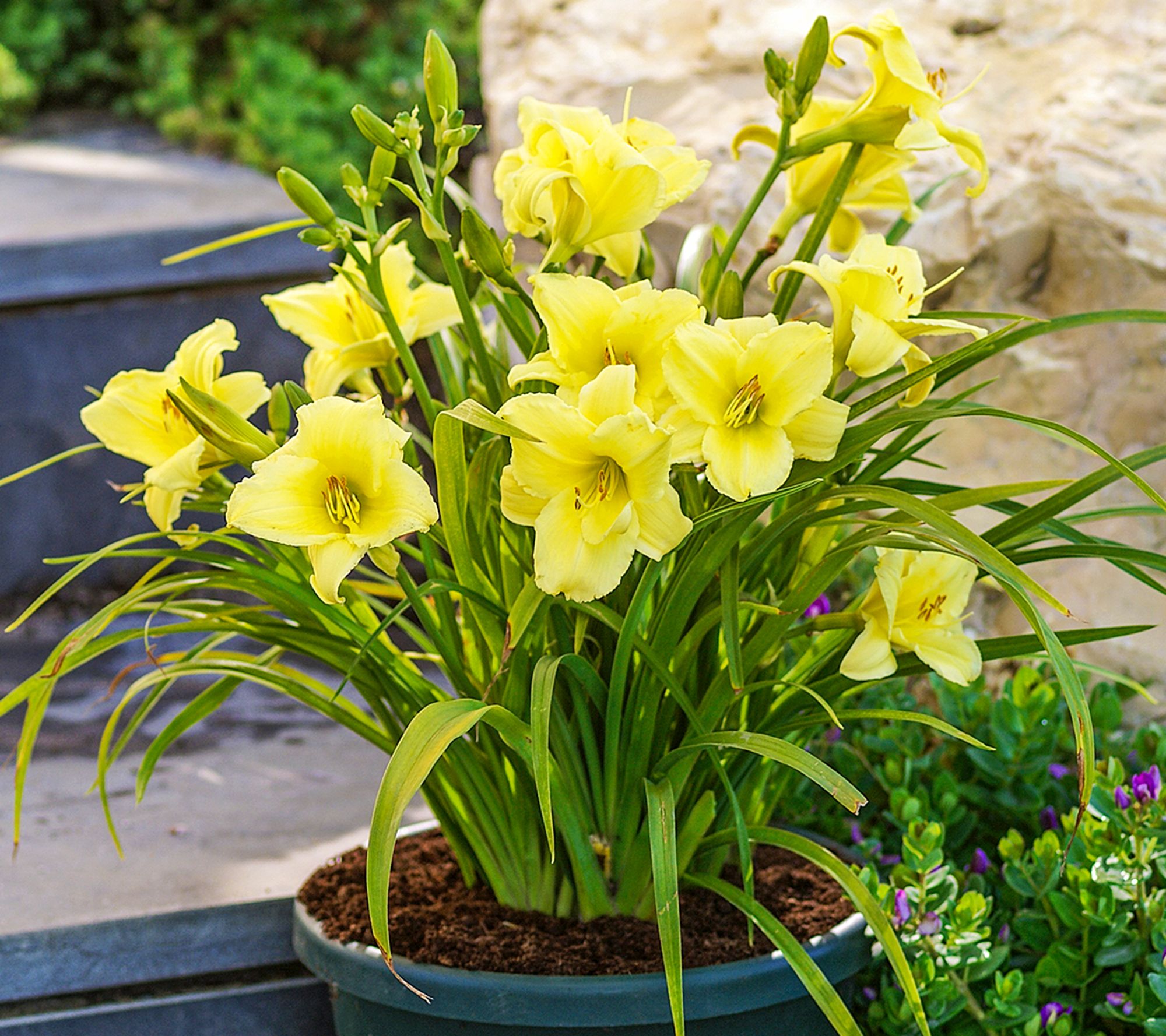 yellow flowers bloom atop green stems, providing color, beauty, and interest for an extended and prolific flowering season. From Barbara King.
