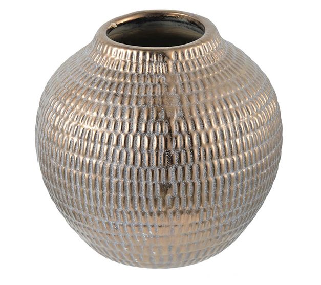 Beautifully house your favorite floral arrangements in this shimmering ceramic pot. From Barbara King.